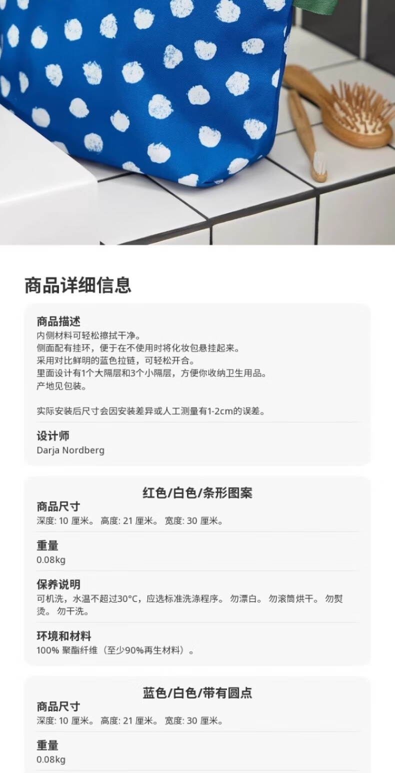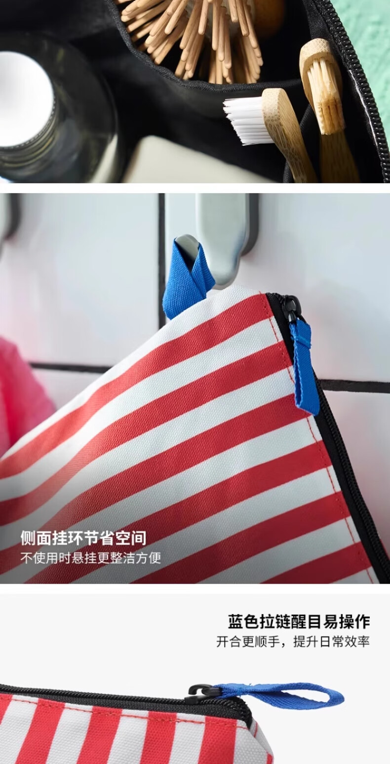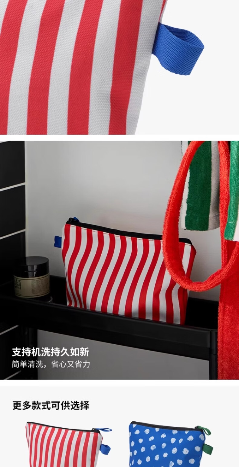 宜家(IKEA)SKOGSSALLAT思克萨拉化妆包大容量化妆收纳包 红色/白色/条形图案化妆包