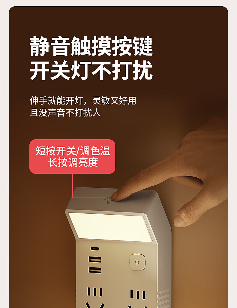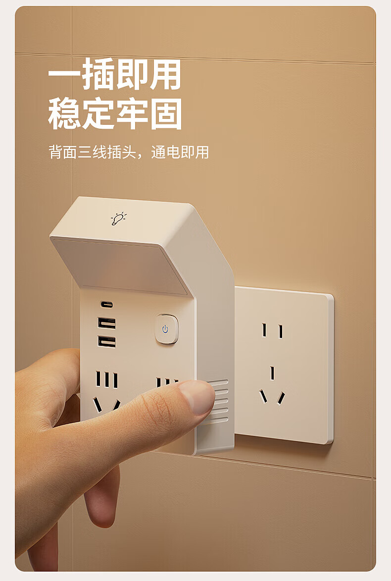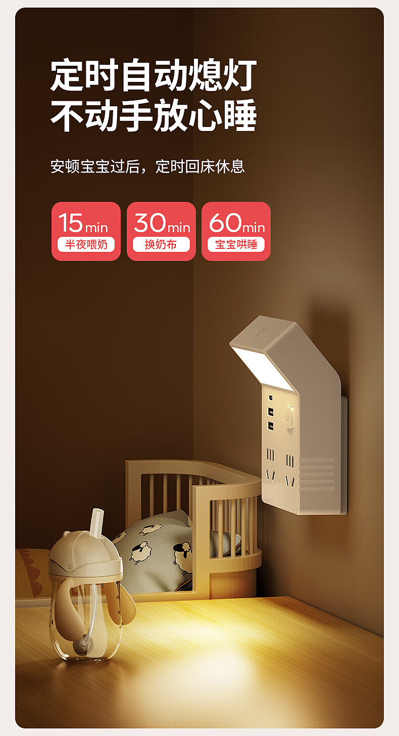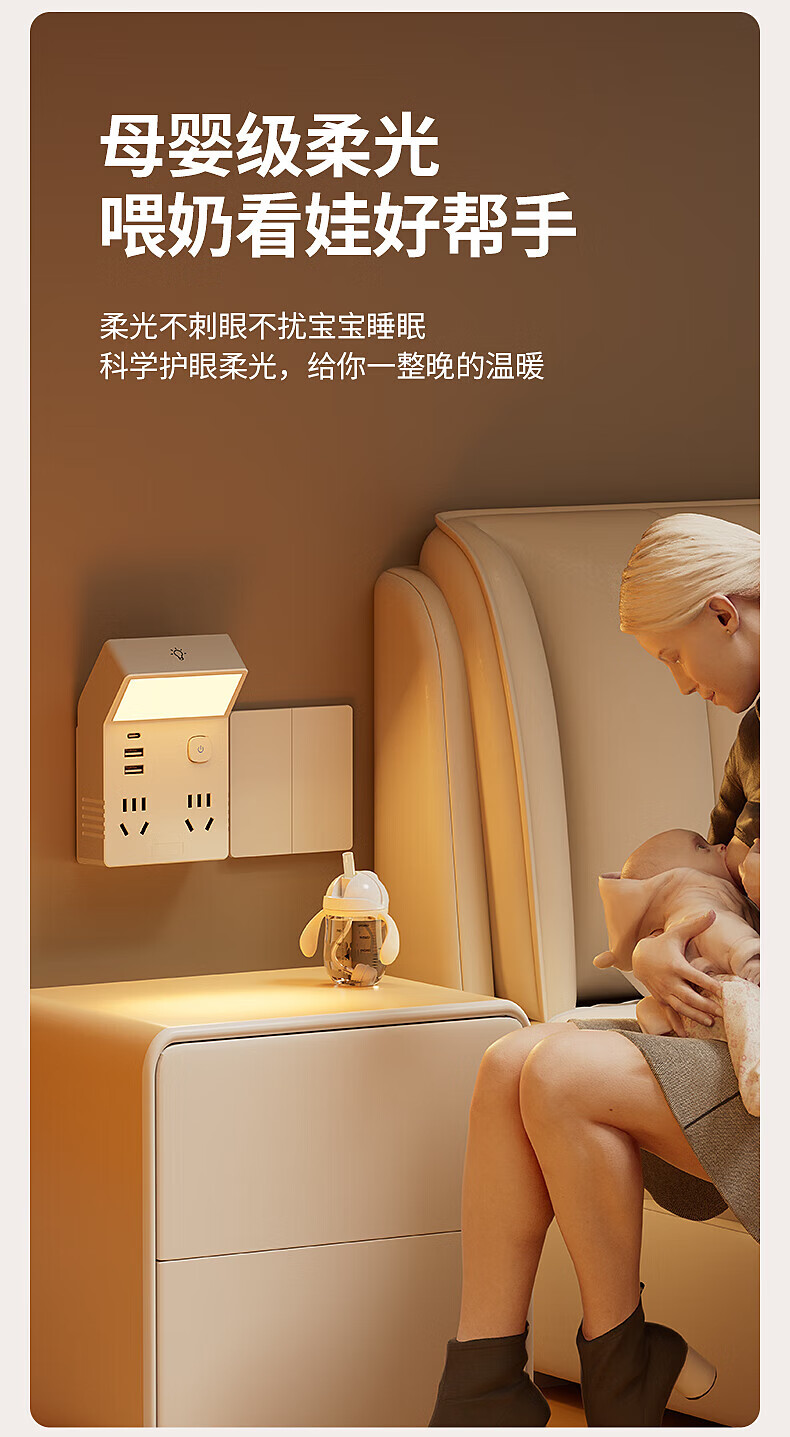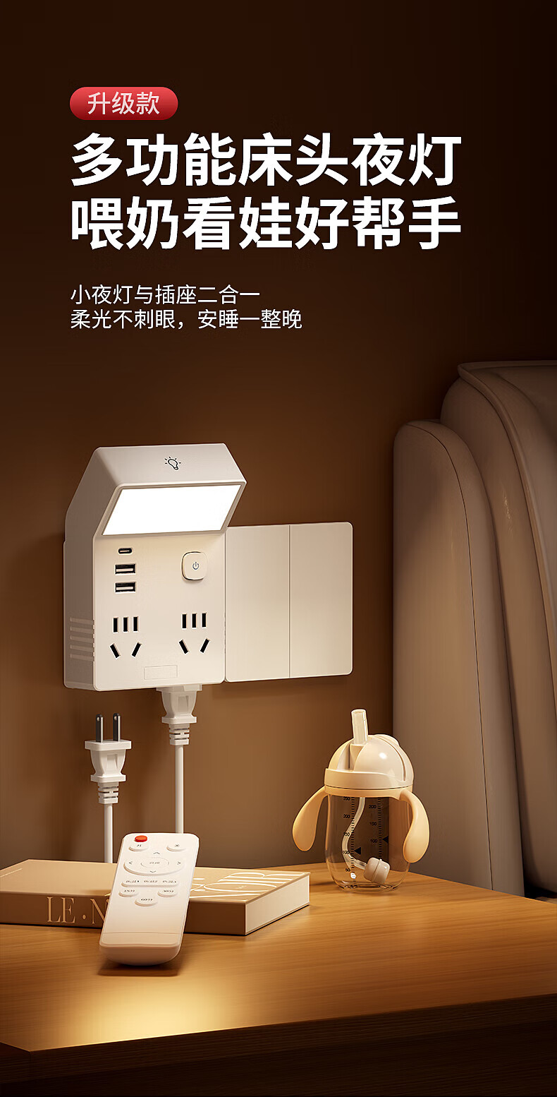 国际电工多功能小夜灯床头灯卧室睡眠灯台灯插座一体新款插电式主卧墙壁灯 灰色一转四带灯