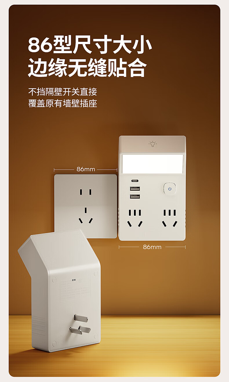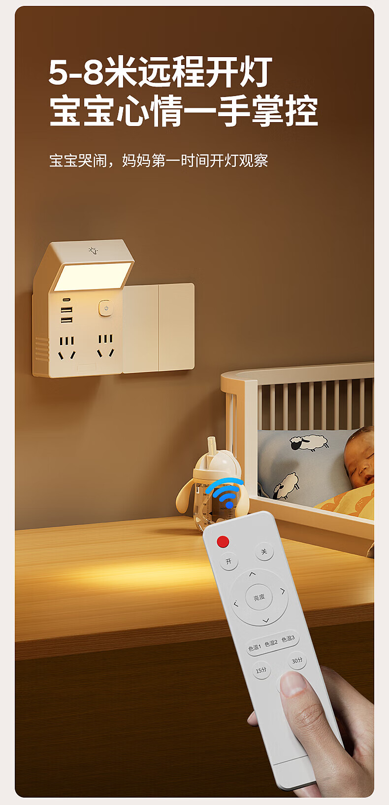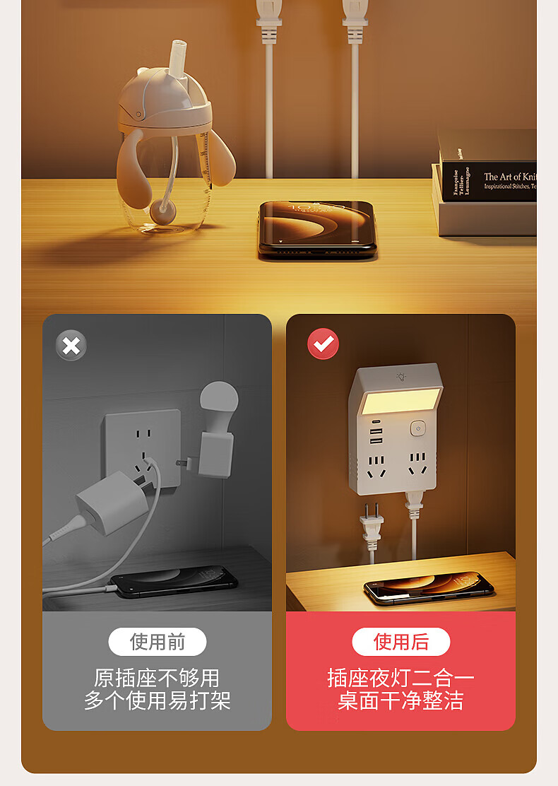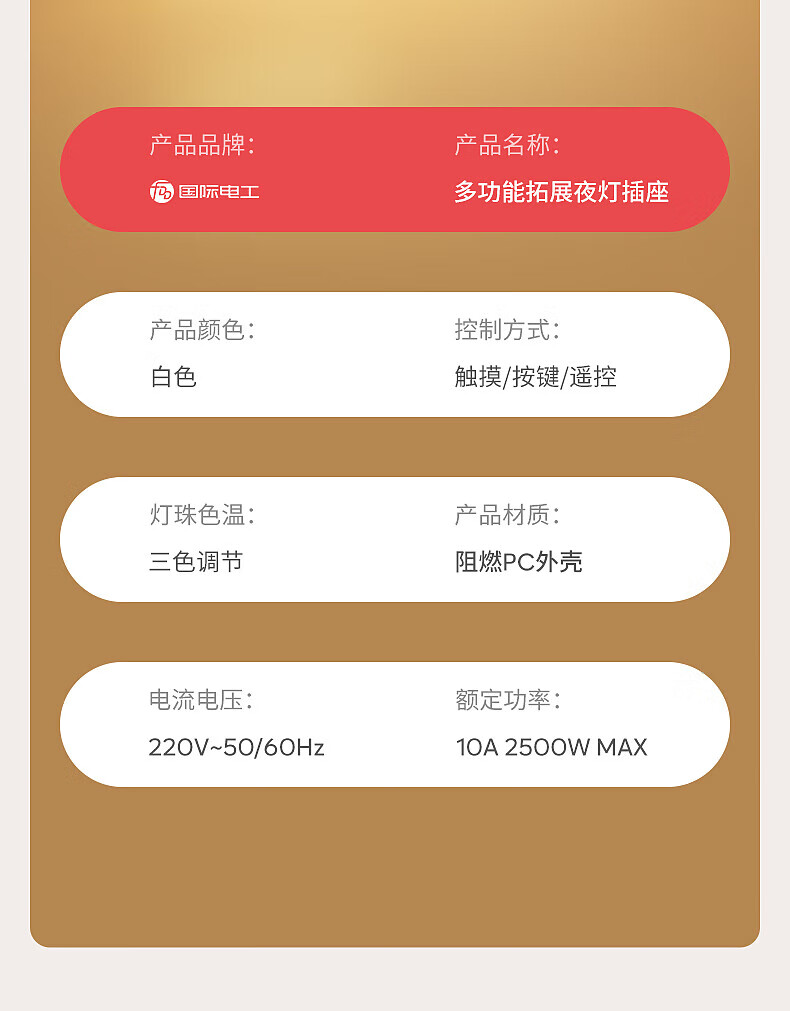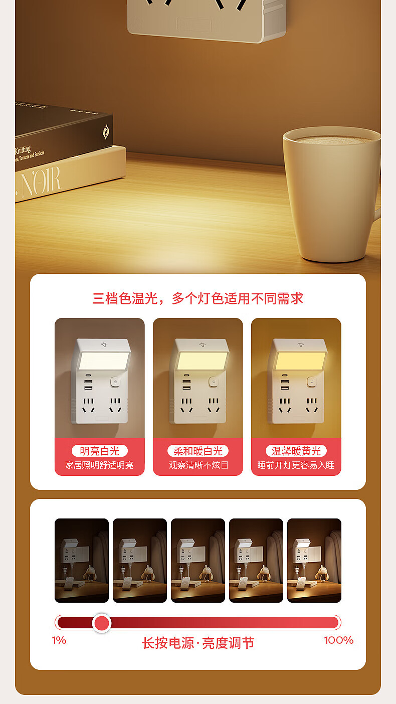 国际电工多功能小夜灯床头灯卧室睡眠灯台灯插座一体新款插电式主卧墙壁灯 灰色一转四带灯