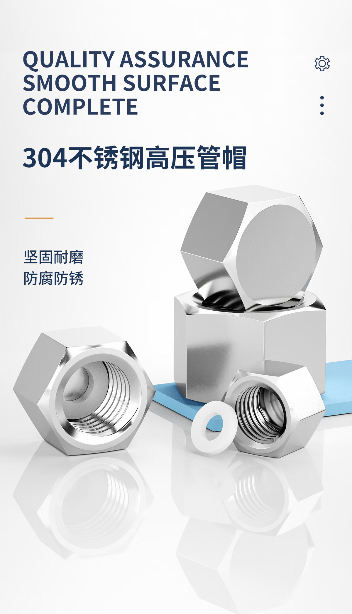 固万基(GUWANJI)304不锈钢高压管帽外六角堵帽细牙闷头管堵封头内丝堵头G管PT堵头 G1/8=1分(DN6)配密封垫(2个)