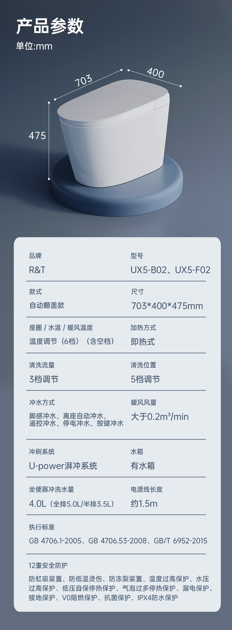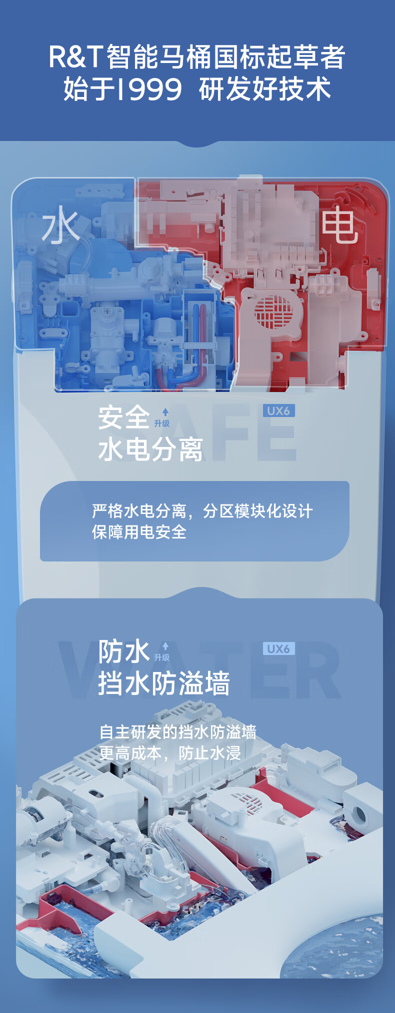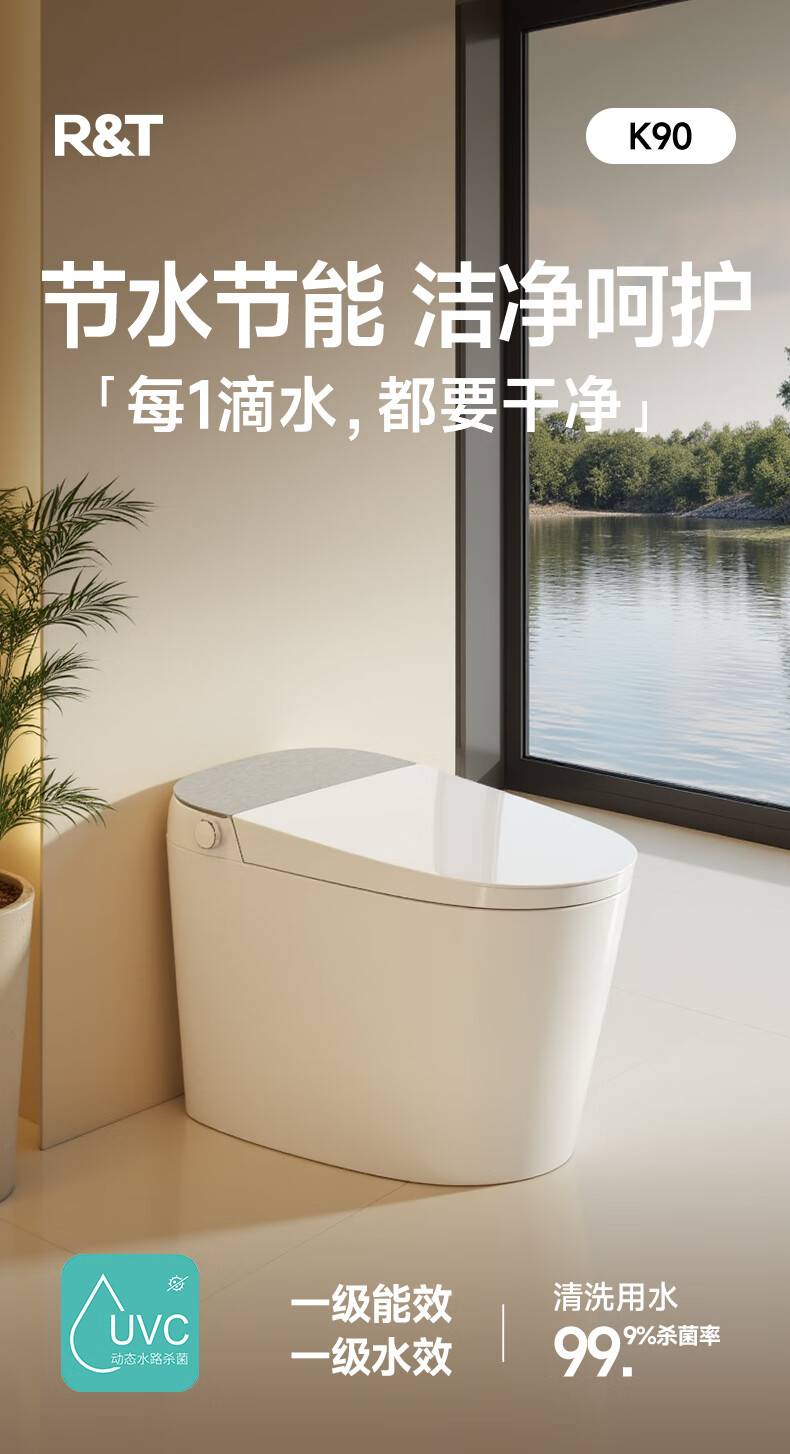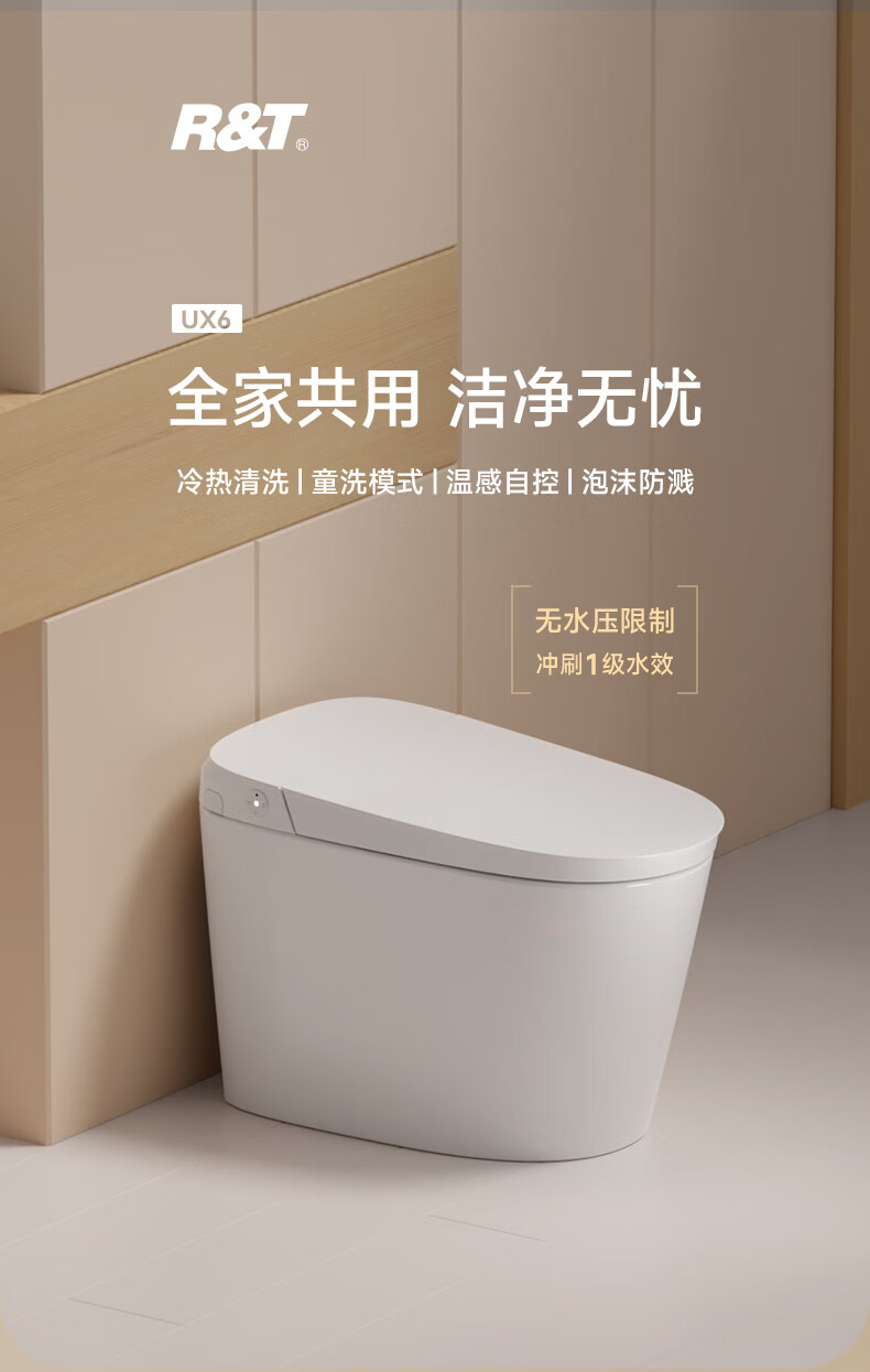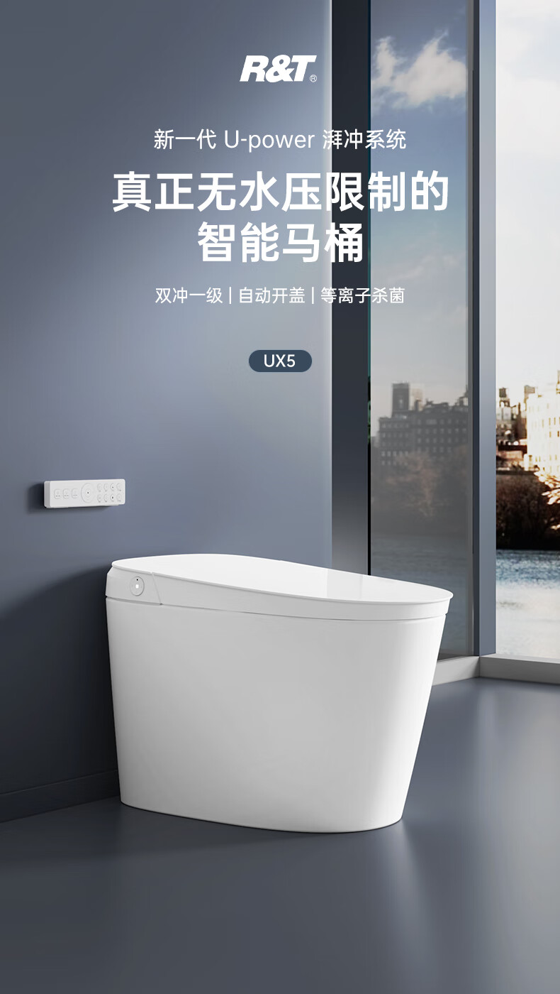 瑞尔特(R&T)自动开盖等离子杀菌无水压限制智能马桶 UX6 305/300mm