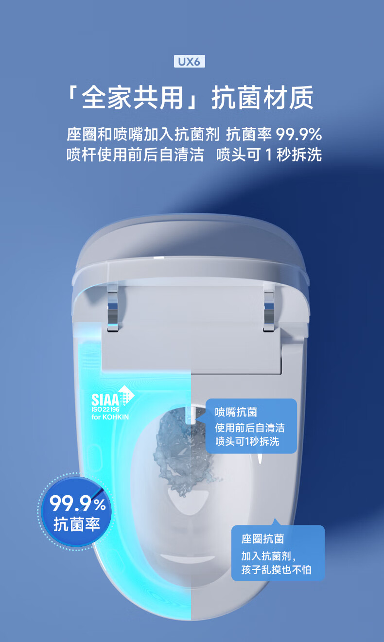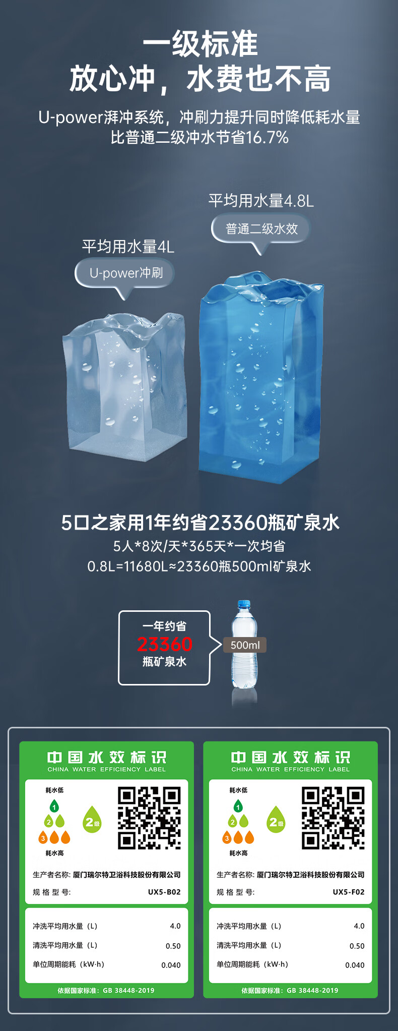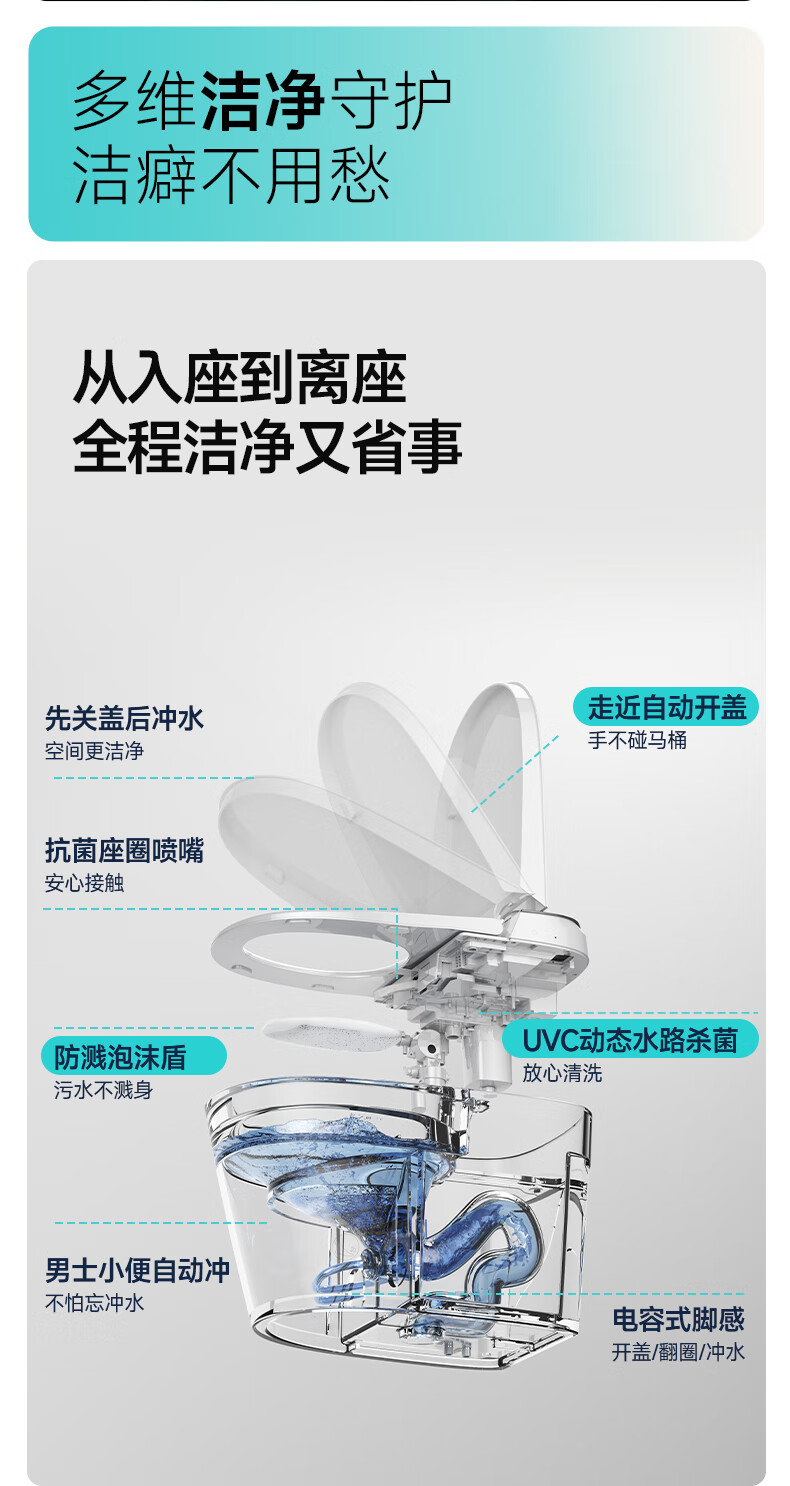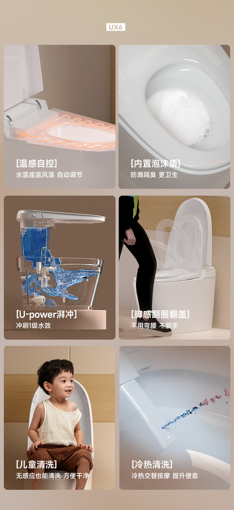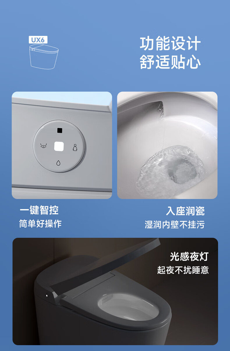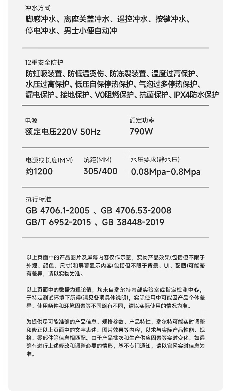 瑞尔特(R&T)自动开盖等离子杀菌无水压限制智能马桶 UX6 305/300mm