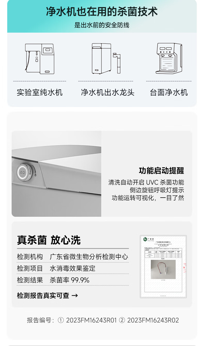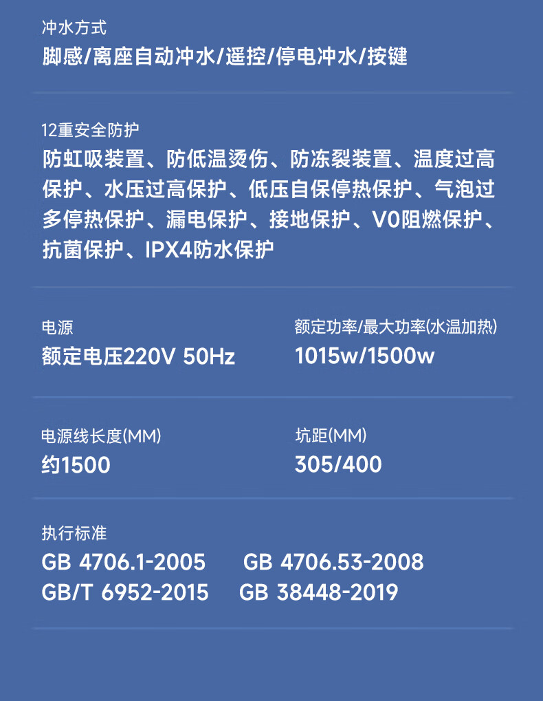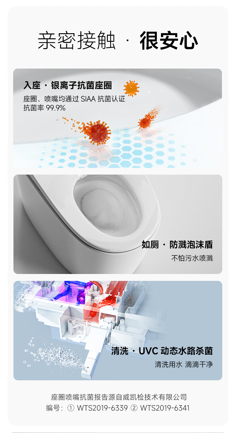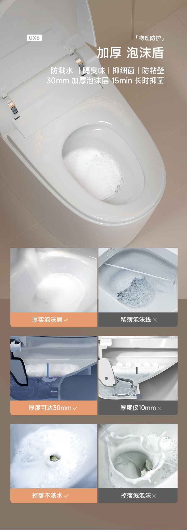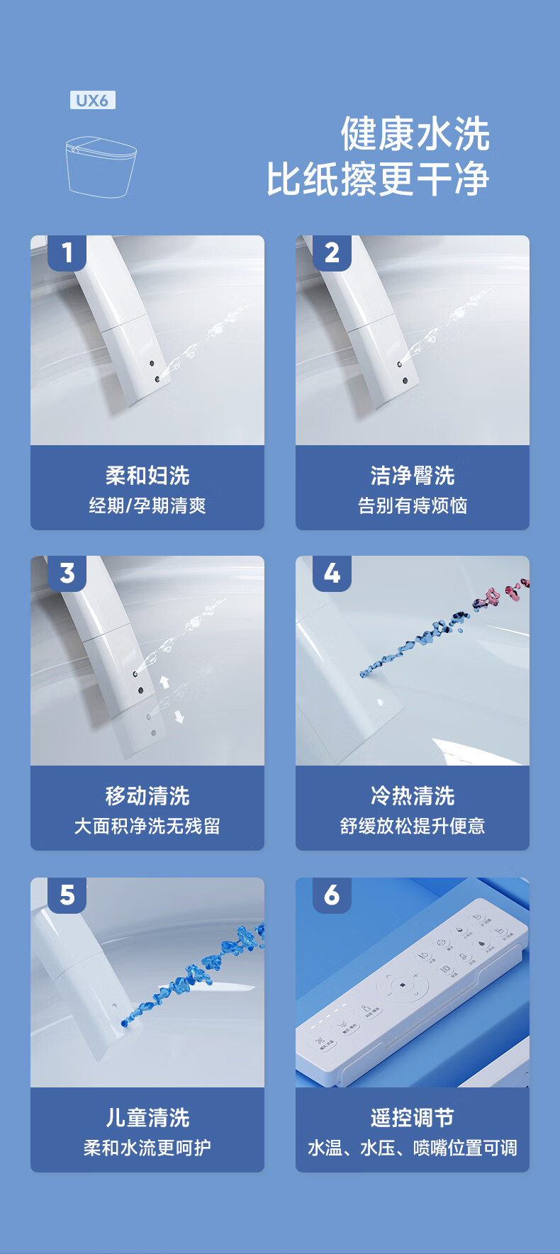 瑞尔特(R&T)自动开盖等离子杀菌无水压限制智能马桶 UX6 305/300mm