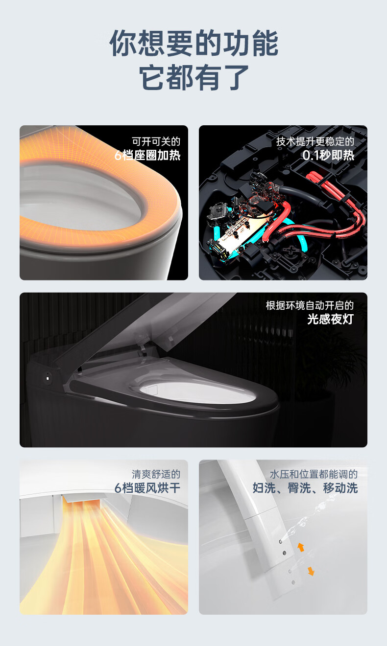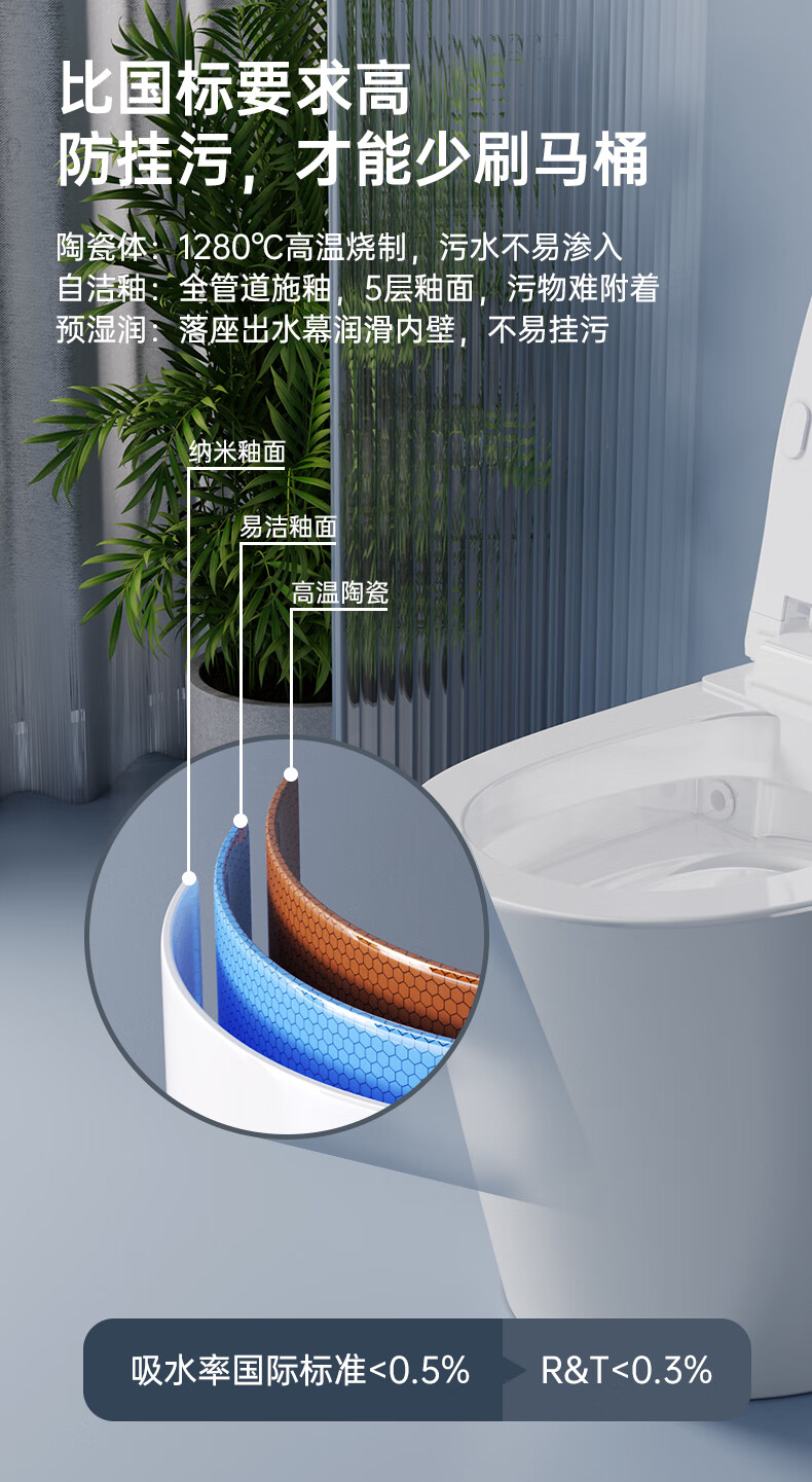 瑞尔特(R&T)智能马桶首创AI自清洁加宽U型座圈灵珑全智能马桶 灵珑L6【首创AI自清洁+净菌防护科技】 305/300mm