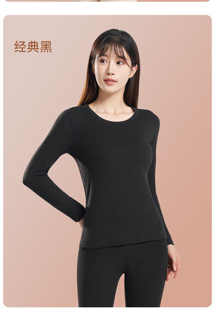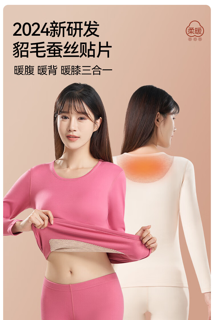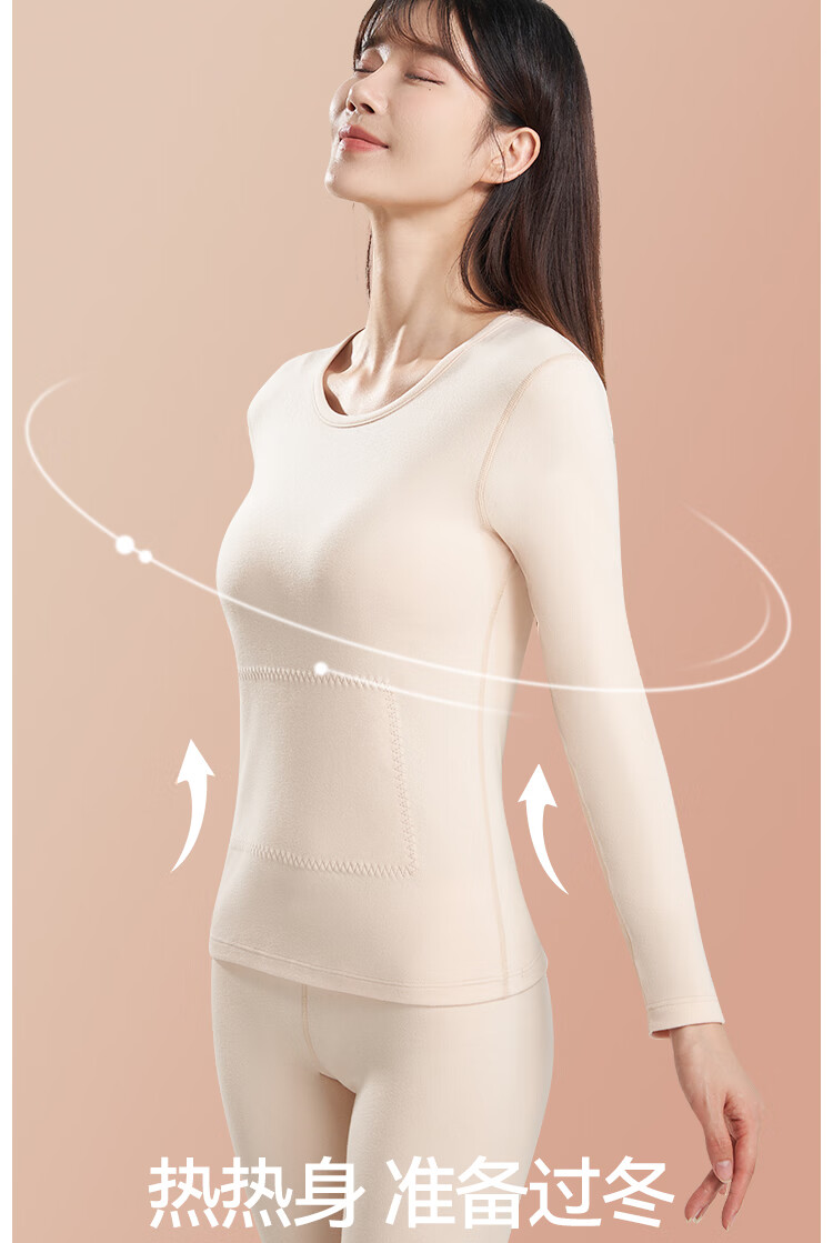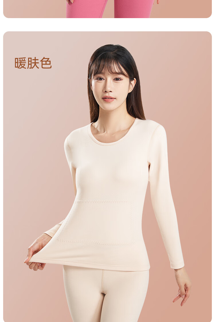 鸭鸭女士蚕丝貂毛背心25新款高弹发热防寒舒适保暖衣保暖裤打底套装 暖肤色 L 建议【100-120斤】