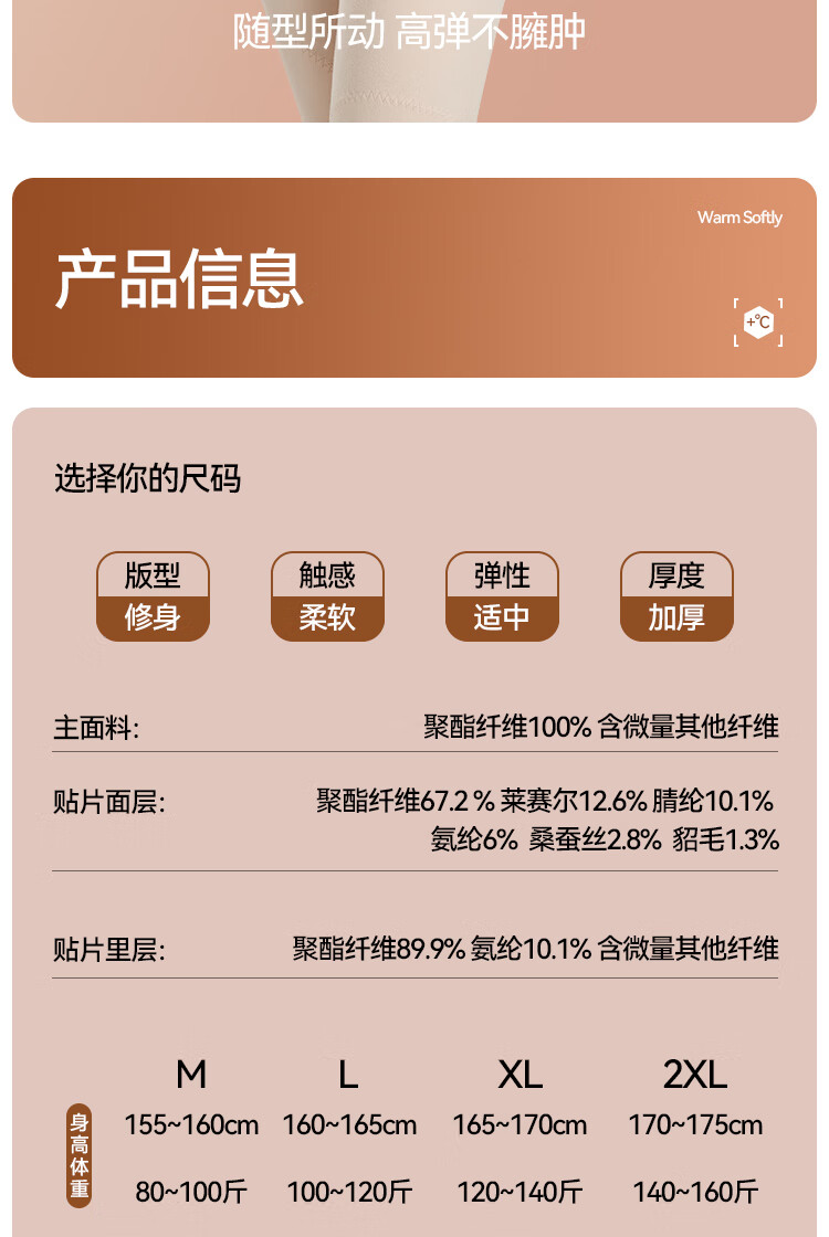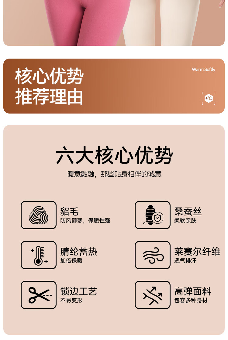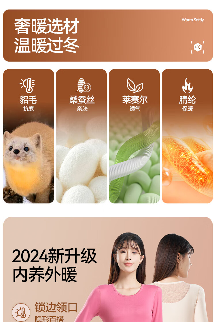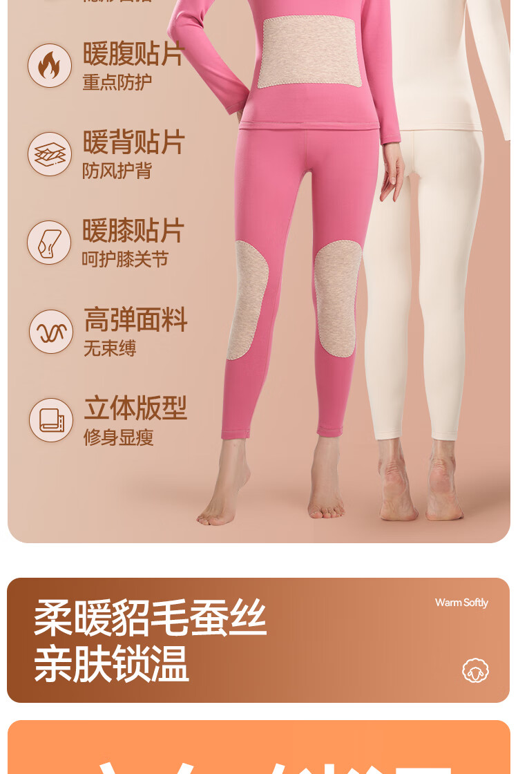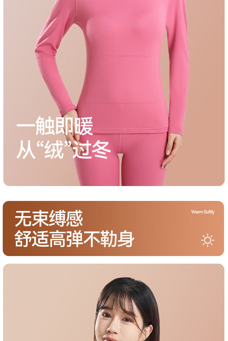 鸭鸭女士蚕丝貂毛背心25新款高弹发热防寒舒适保暖衣保暖裤打底套装 暖肤色 L 建议【100-120斤】