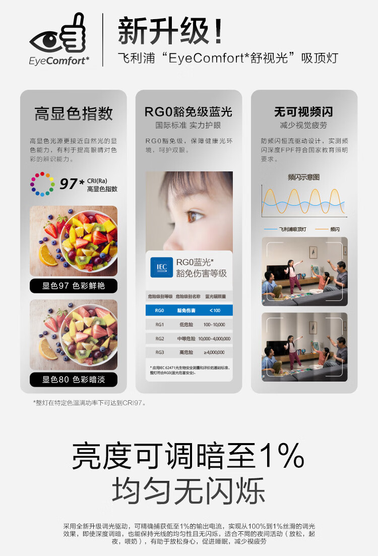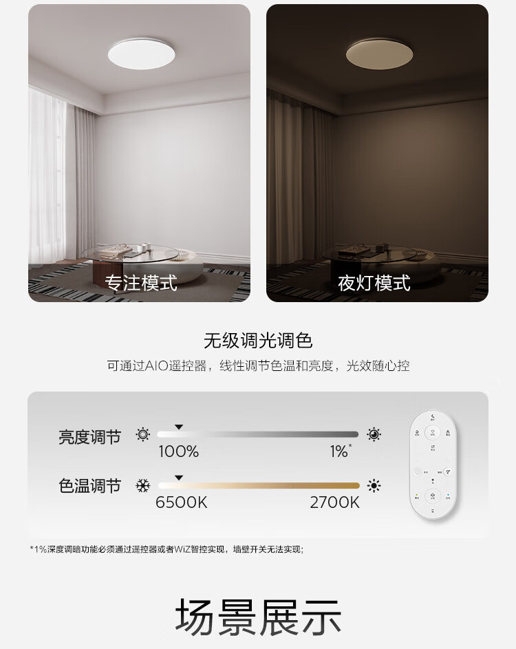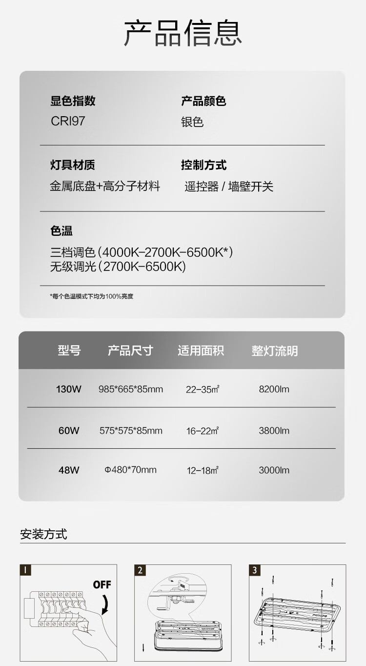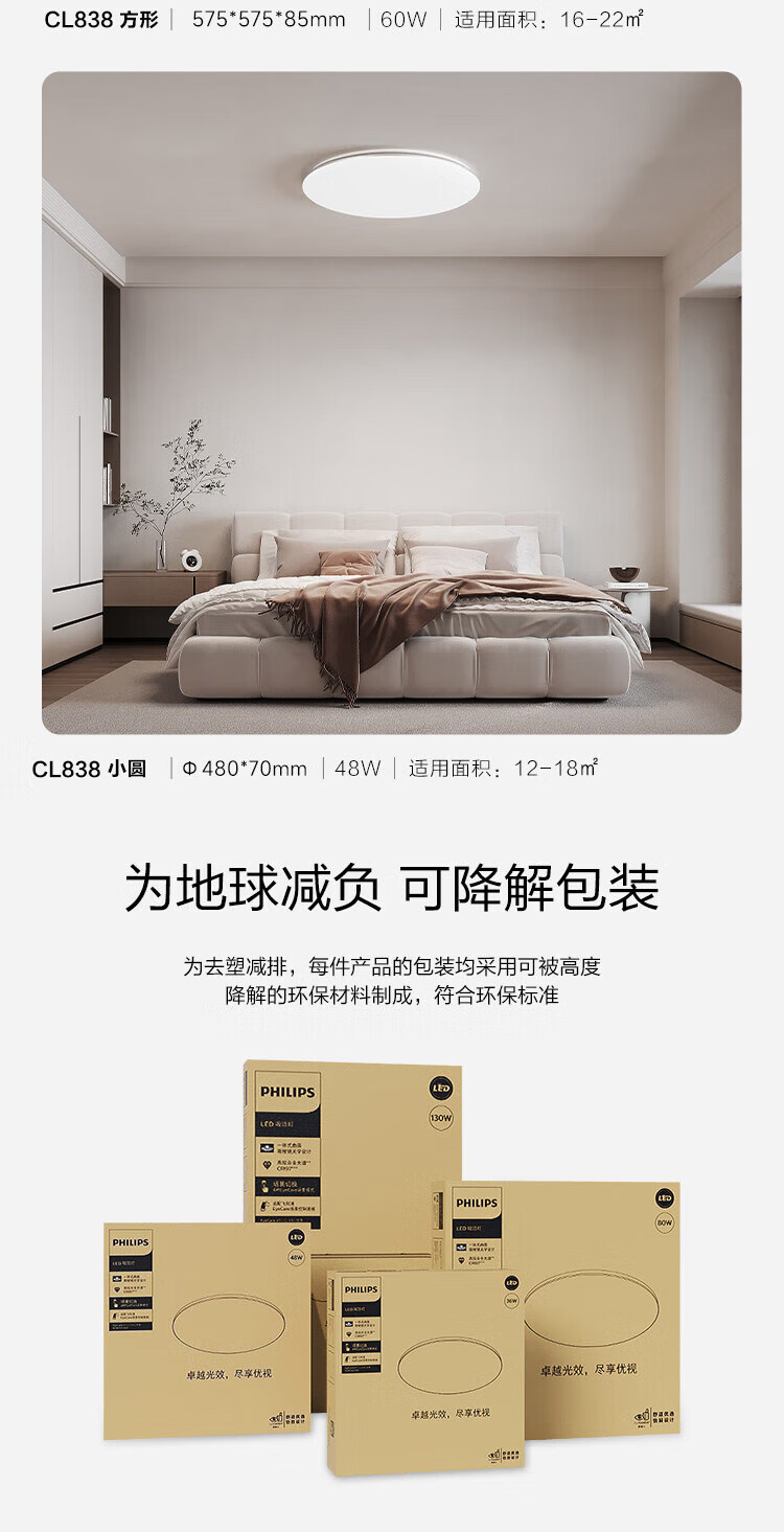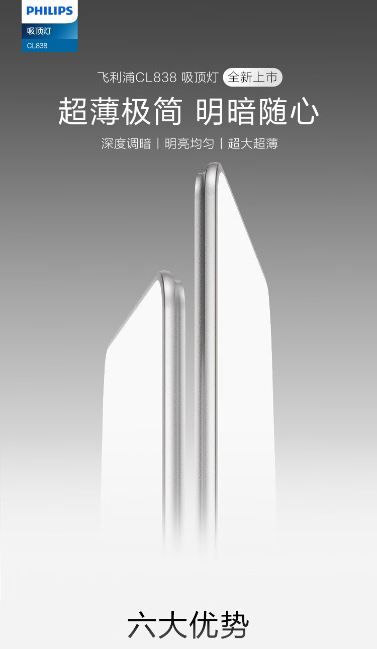 飞利浦(PHILIPS)全光谱护眼客厅卧室吸顶灯超大超薄简约灯具60W含遥控器[包安装]