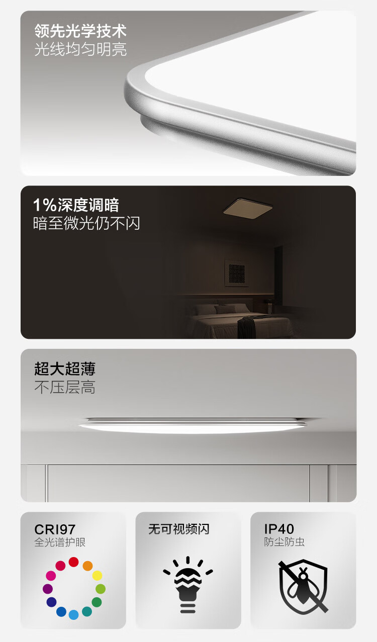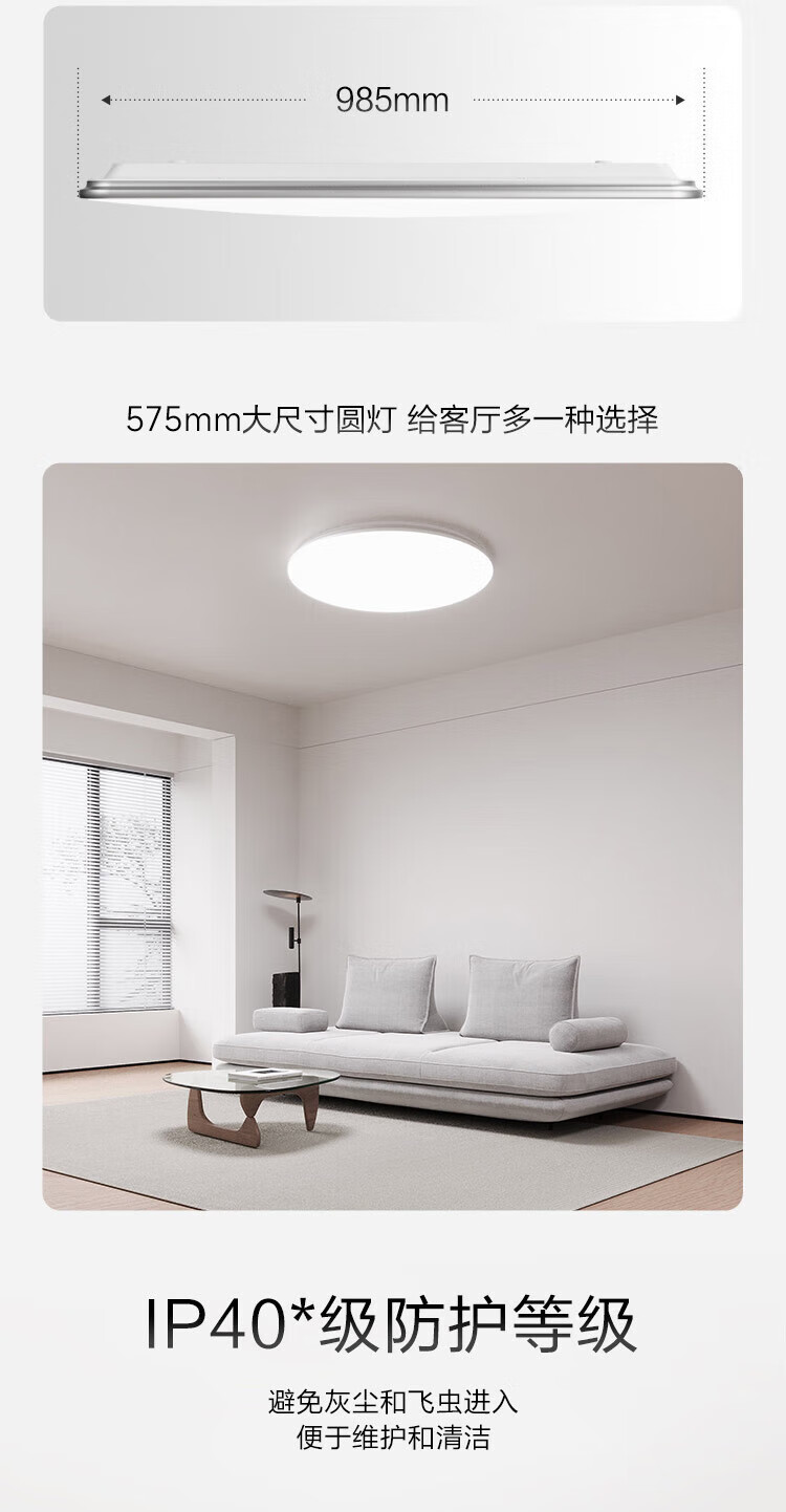 三雄极光led吸顶灯全光谱护眼客厅灯餐厅灯防蓝光书房灯具 128W 30㎡内适用 6800lm P3智控·接入米家app