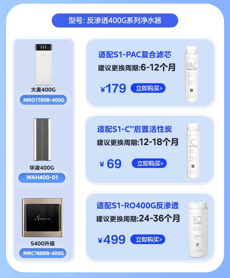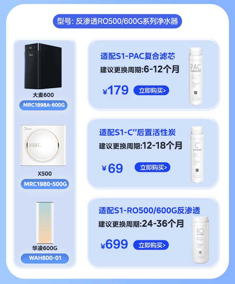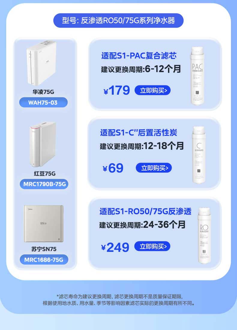 美的净水器滤芯适用金豆MRC1790B-75G、华凌75Gwah75-03MRO1790A-50GMRC1686-75G-S1系列 PAC复合滤芯-更换周期6-12个月