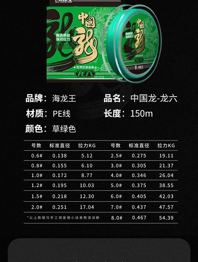 海龙王【全网热销】pe线8编龙六五卷装不涨号超强劲拉力线号标准不虚标 抛投顺滑8编pe线100米5盘【囤货装到手五百米】 0.6#