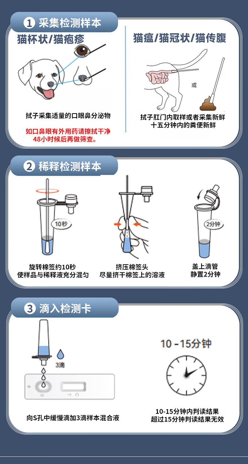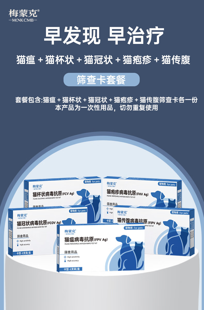 猫瘟五项检测试纸套装鼻支冠状杯状猫咪呼吸道疱疹病毒五联筛查卡 新猫到家检查专用【五联测卡】 医院同款( 高精准度99.99%)