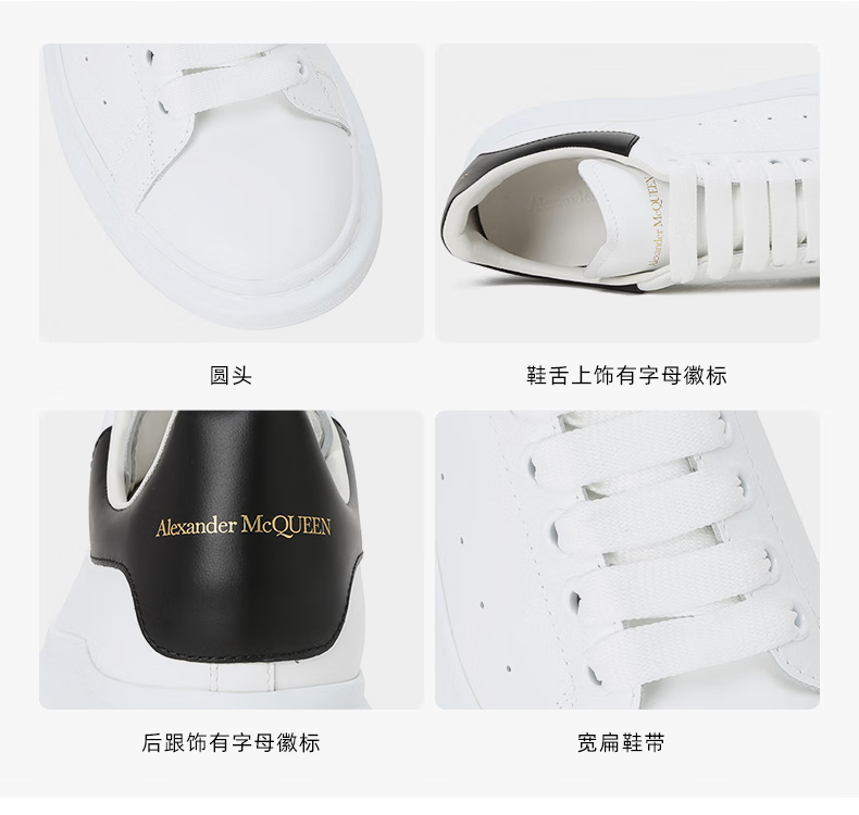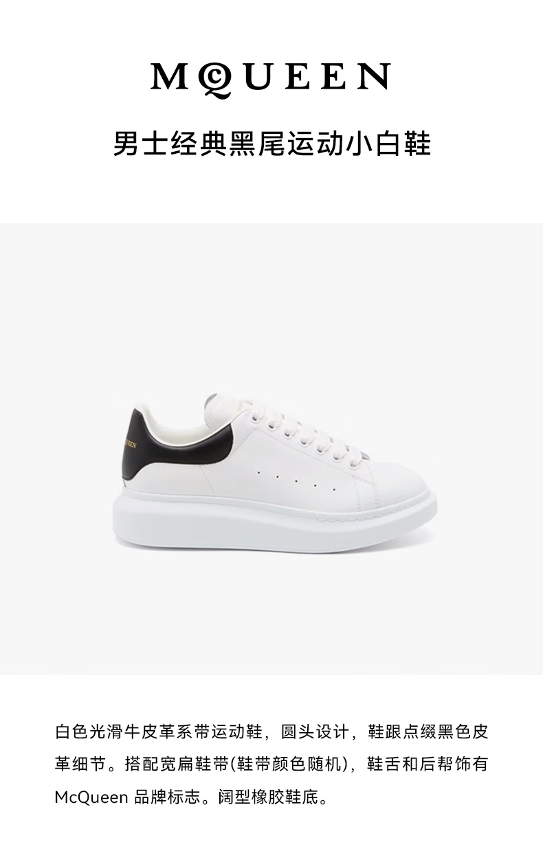 亚历山大麦昆(Alexander McQueen)厚底运动鞋男牛皮小白鞋礼物553680-WIEEN-黑尾 42