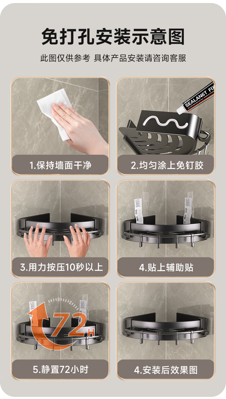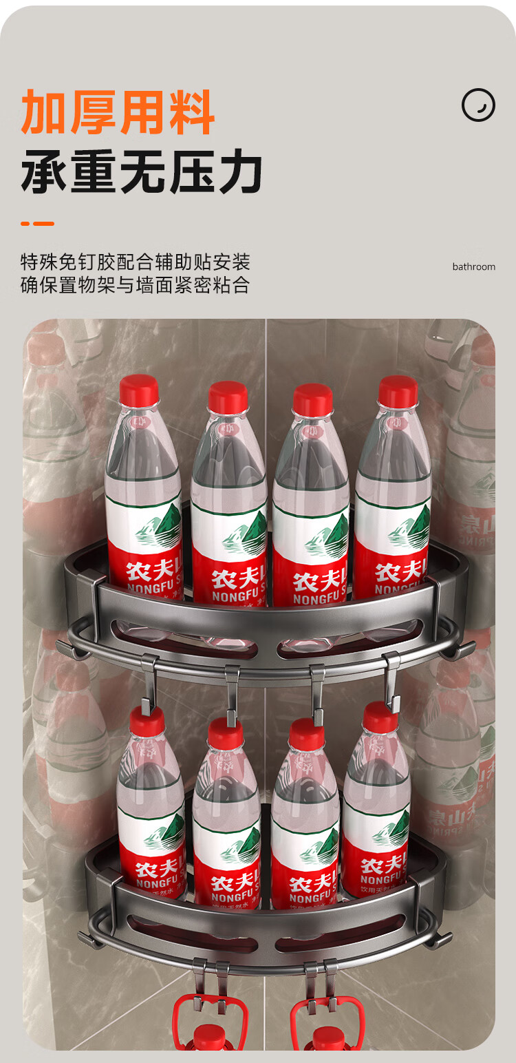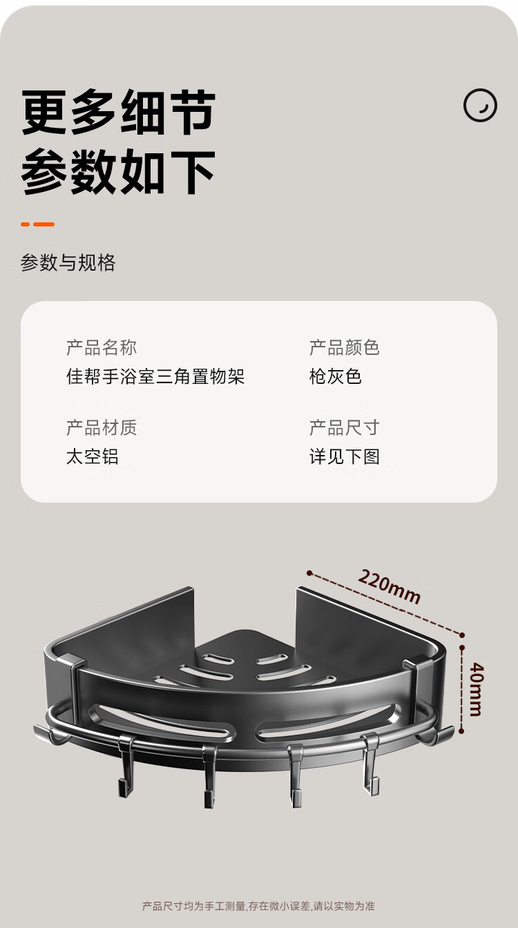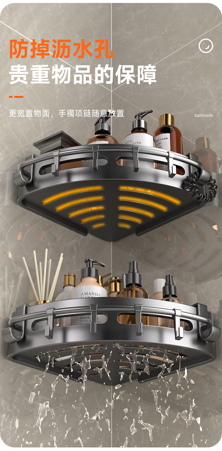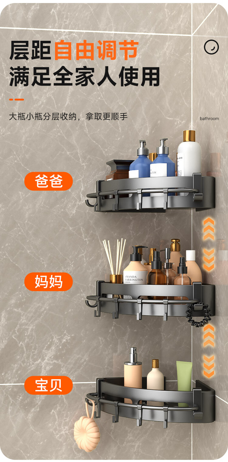 佳帮手置物架卫生间浴室用品置物架免打孔壁挂厕所洗漱台三角收纳架带杆