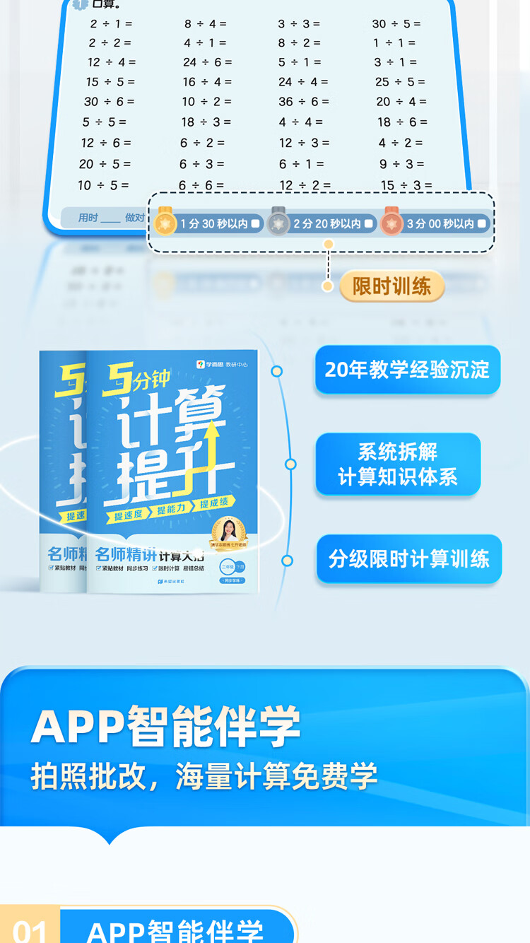 学而思 《5分钟计算提升》计算大招 提升能力 分层训练 提升速度 小学生一二三四五六年级 计算练习专项-WXE 5分钟计算提升 一年级下