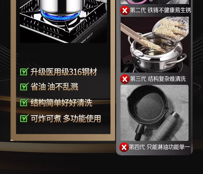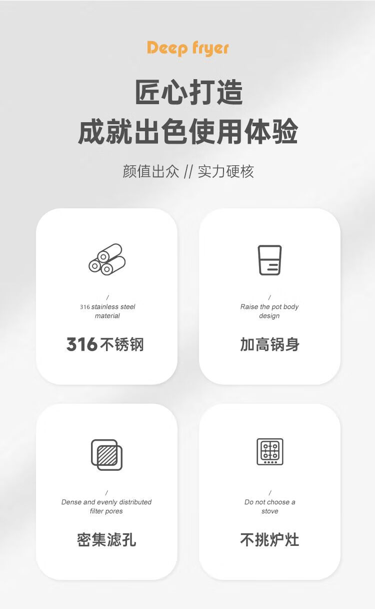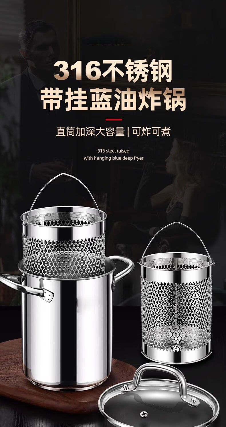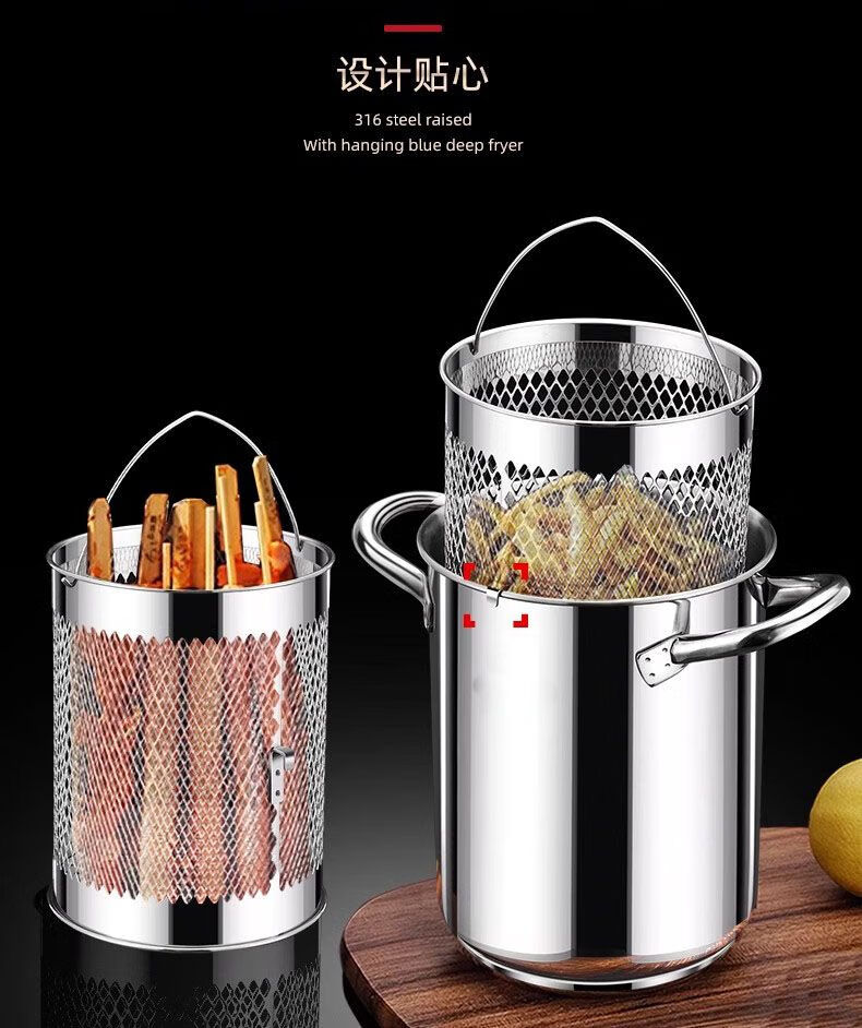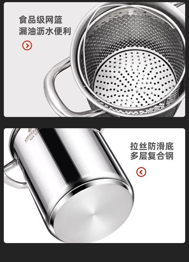 金汤银饺316不锈钢双耳油锅直筒家用炸鸡薯条省油小锅 油泼面 油炸锅 双耳炸锅+沥油篮 16.5cm 3L