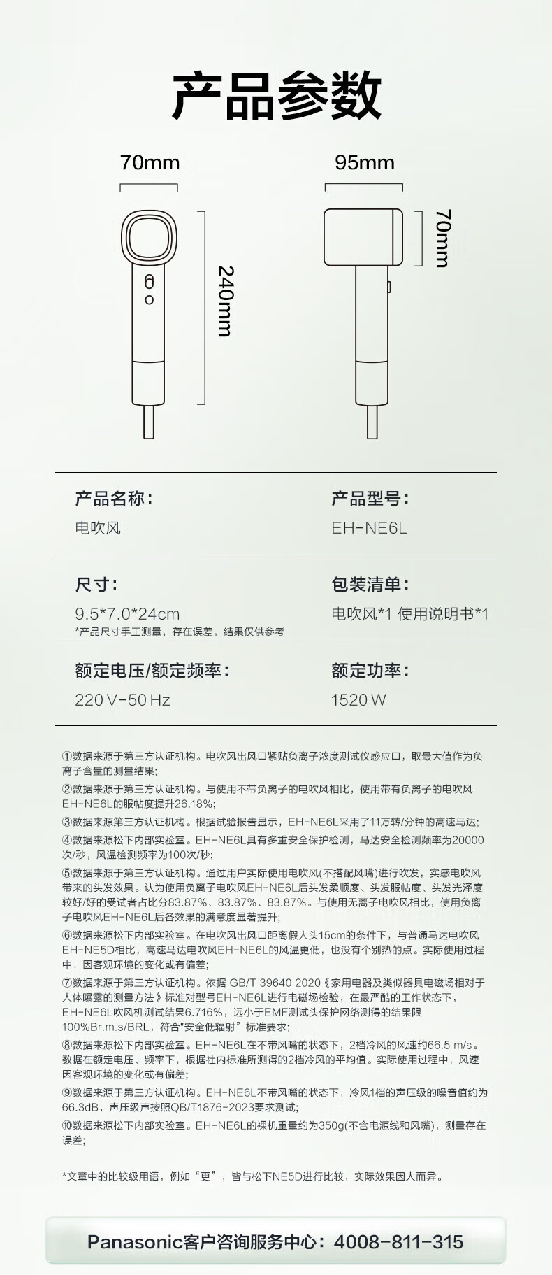 松下(Panasonic)【国家补贴】小森林电吹风机家用高速大功率速干负离子护发学生吹风筒送女友生日圣诞节礼物NE6L 紫色【亿级负离子顺发】