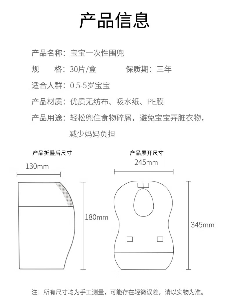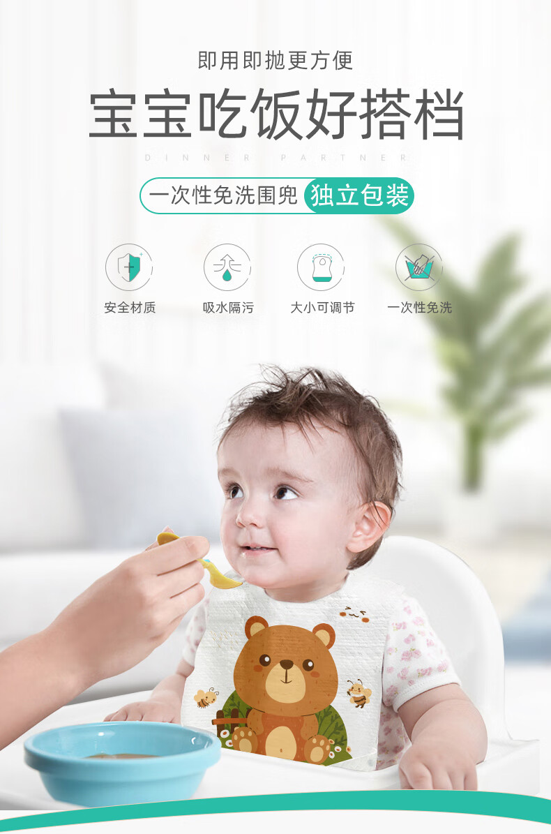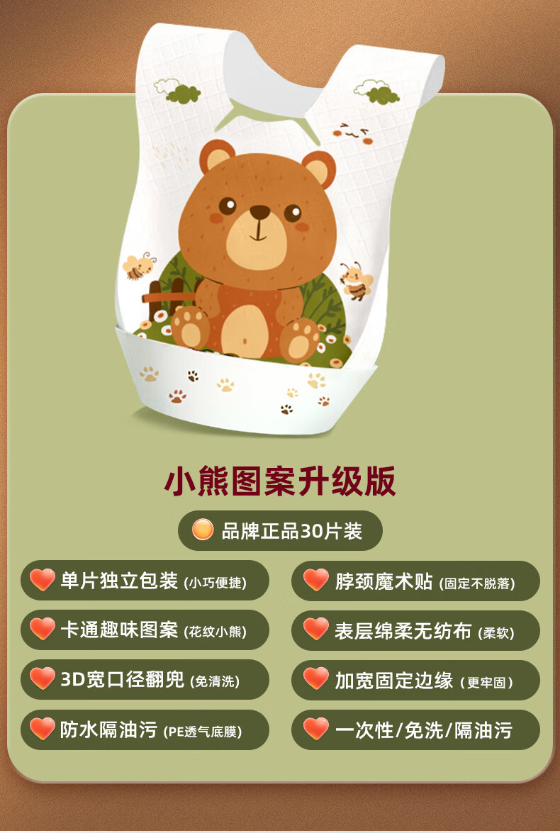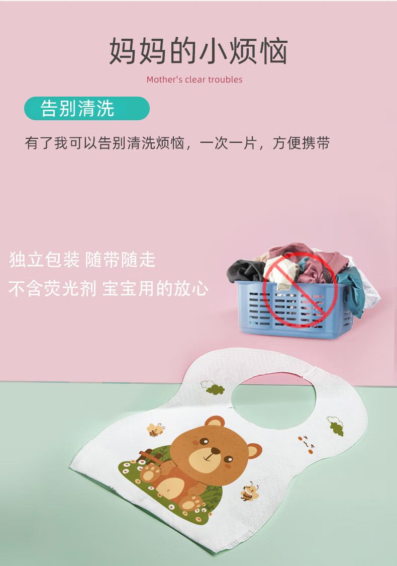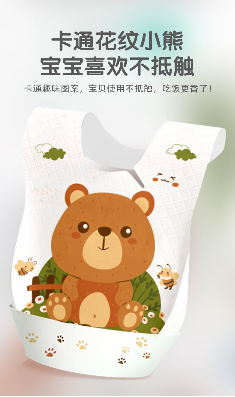 好伊贝(HOY BELL)婴儿一次性围兜60片宝宝围嘴口水巾免洗饭兜独立包装