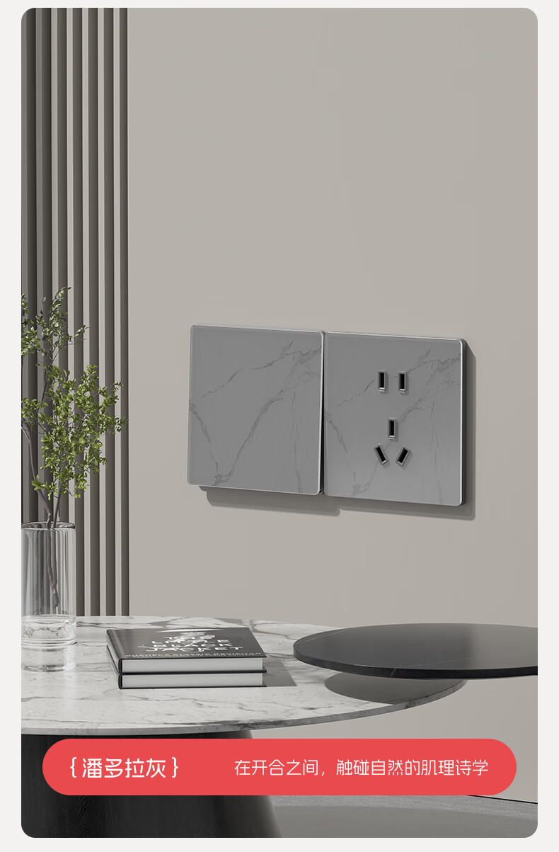 国际电工86型大理石纹钢化玻璃五孔插座超薄暗装家用开关插座一开双控面板 一开单控 开关