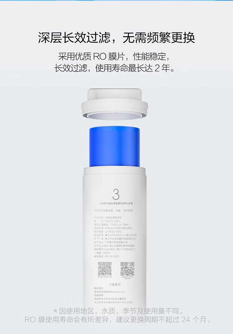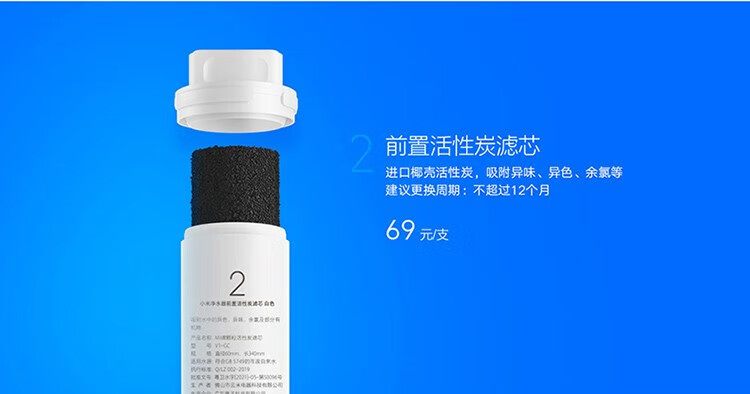 小米(MI)净水器滤芯家用净水机滤芯PP棉前后置活性炭过滤 RO反渗透滤芯适用于600G厨下式/400G 【2号】前置活性炭滤芯适用400G/600G