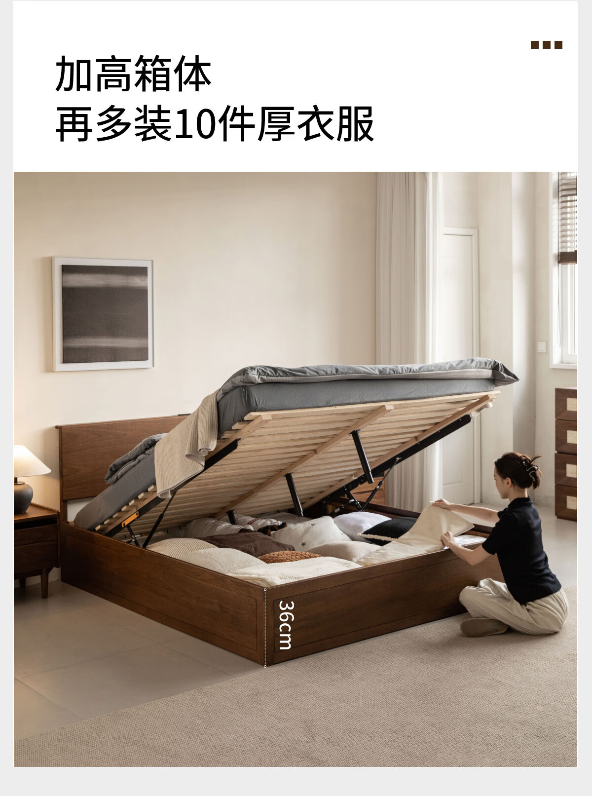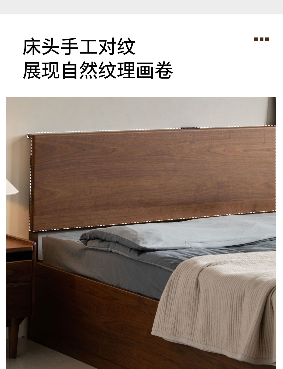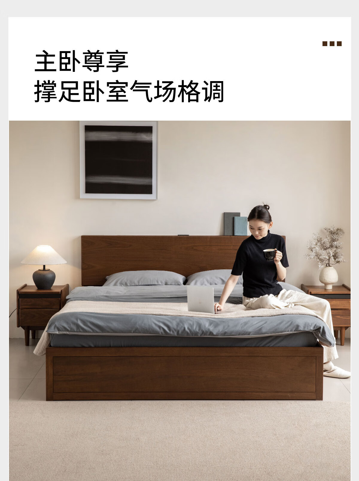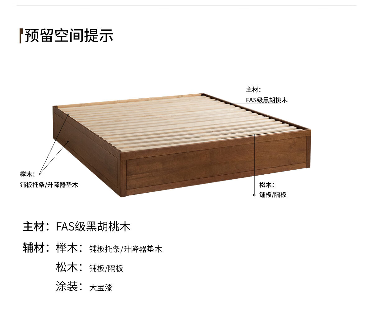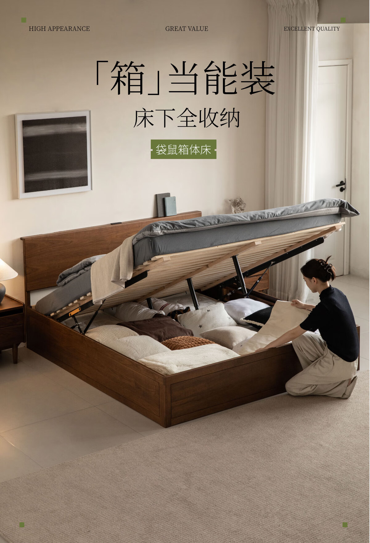 续写家具榻榻米床无床头黑胡桃木小户型储物1.8米双人实木箱体床 袋鼠箱体床小样
