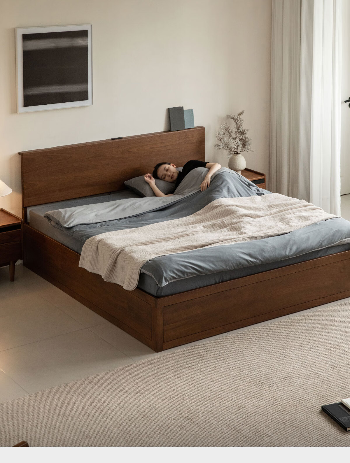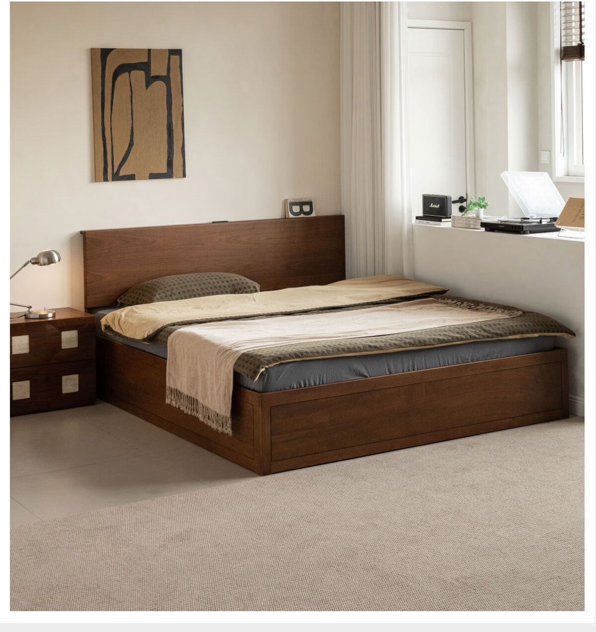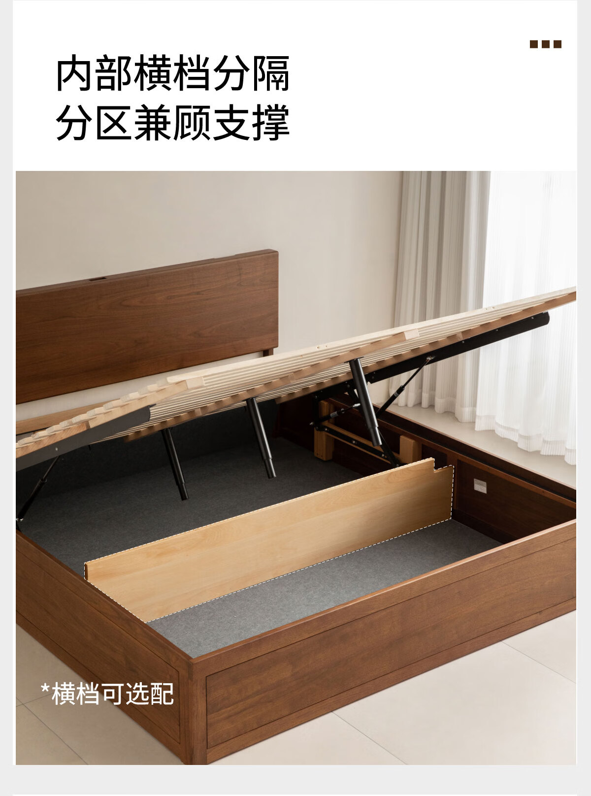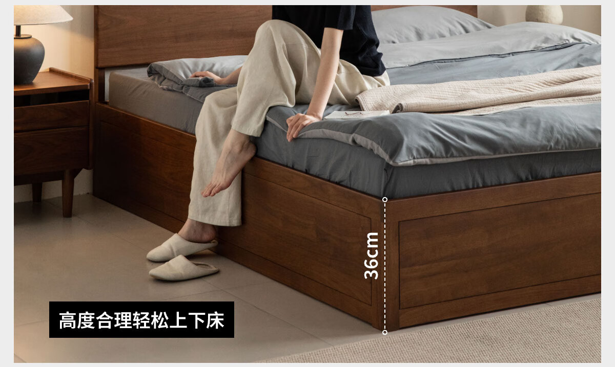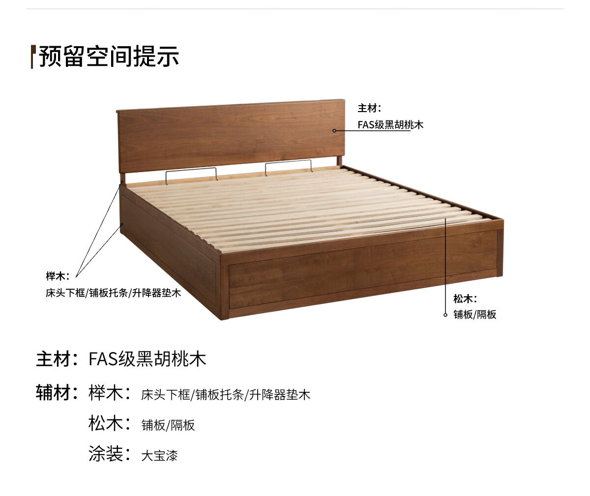 续写家具榻榻米床无床头黑胡桃木小户型储物1.8米双人实木箱体床 袋鼠箱体床小样