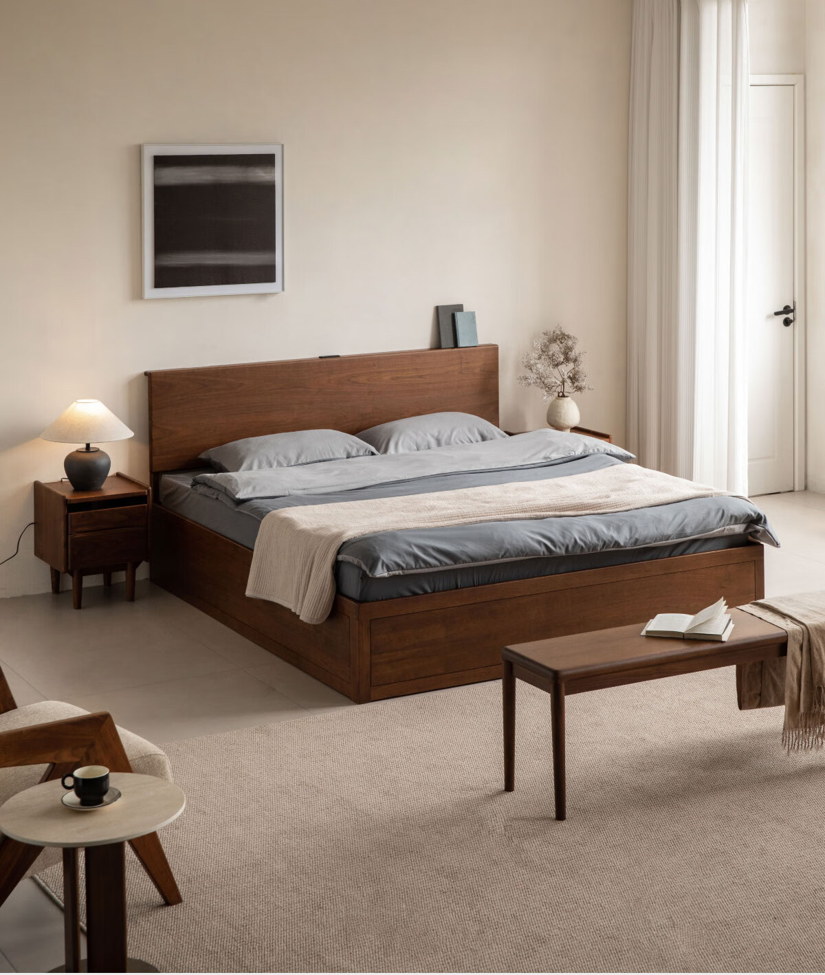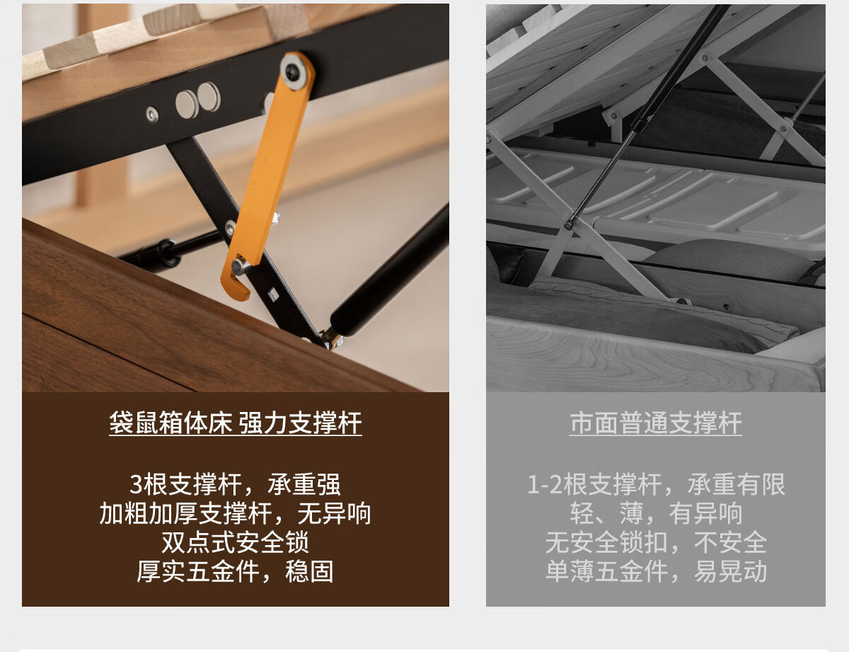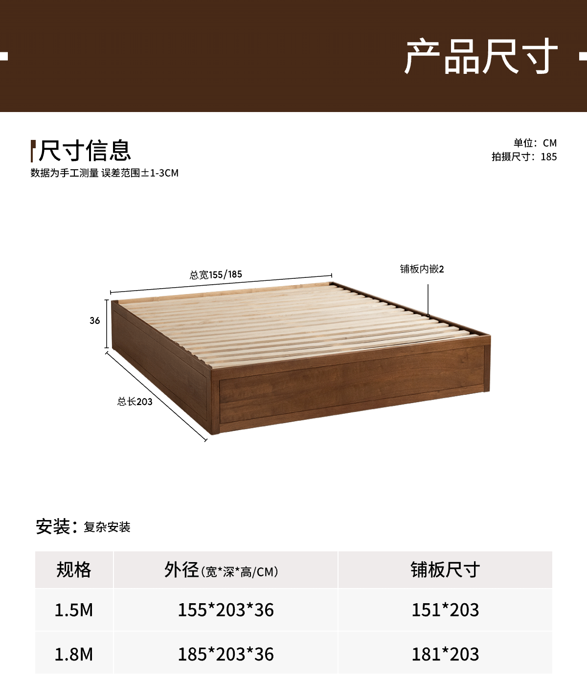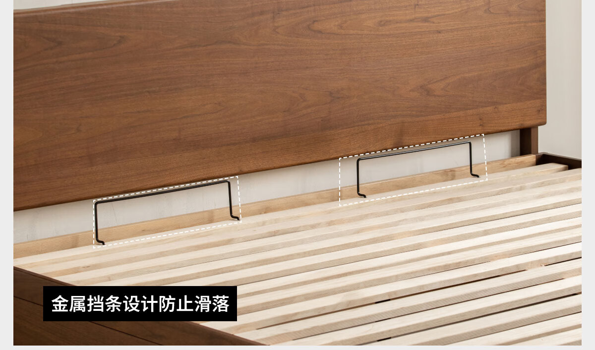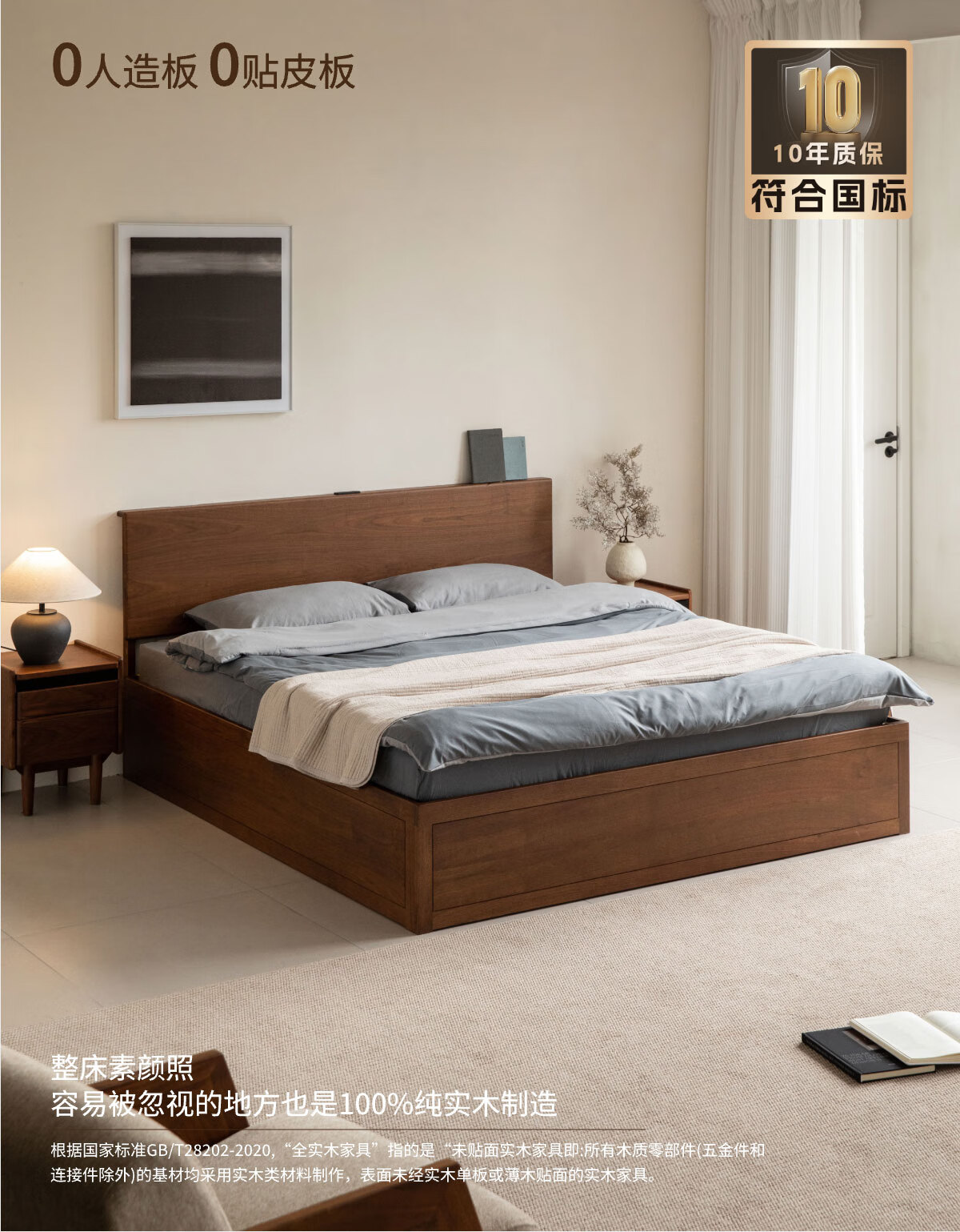 续写家具榻榻米床无床头黑胡桃木小户型储物1.8米双人实木箱体床 袋鼠箱体床小样
