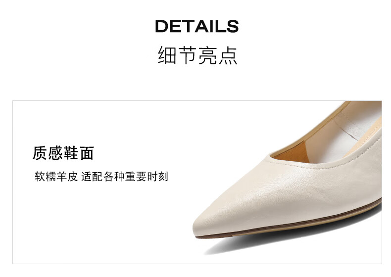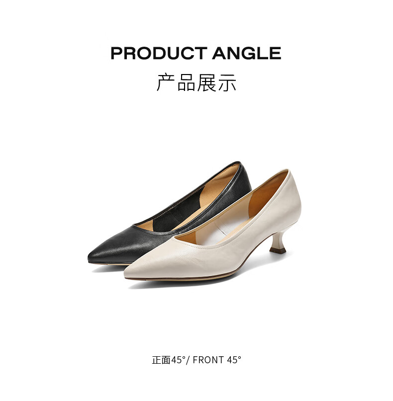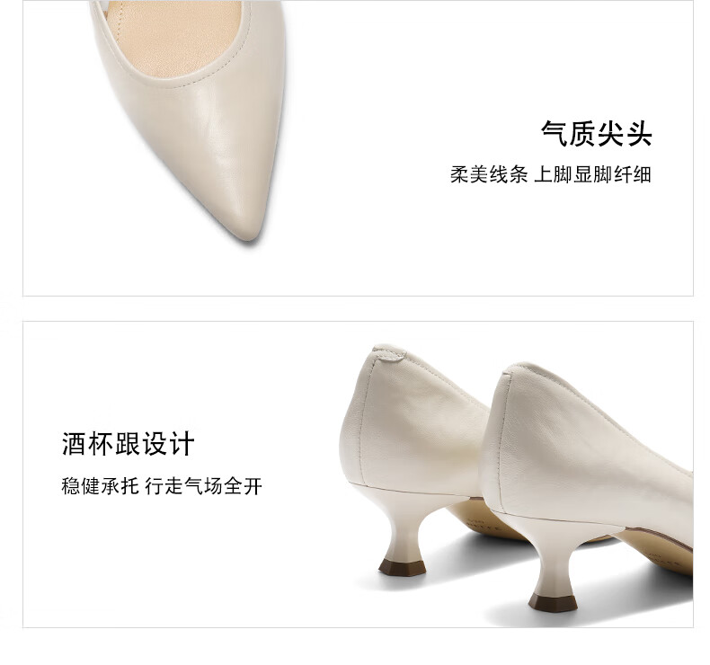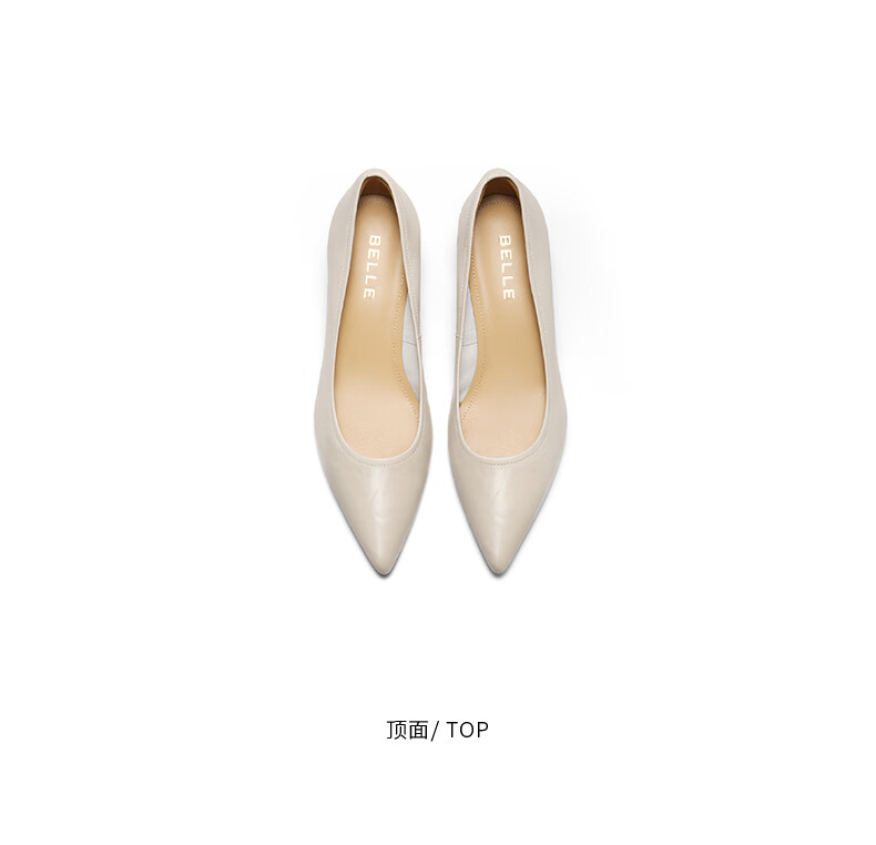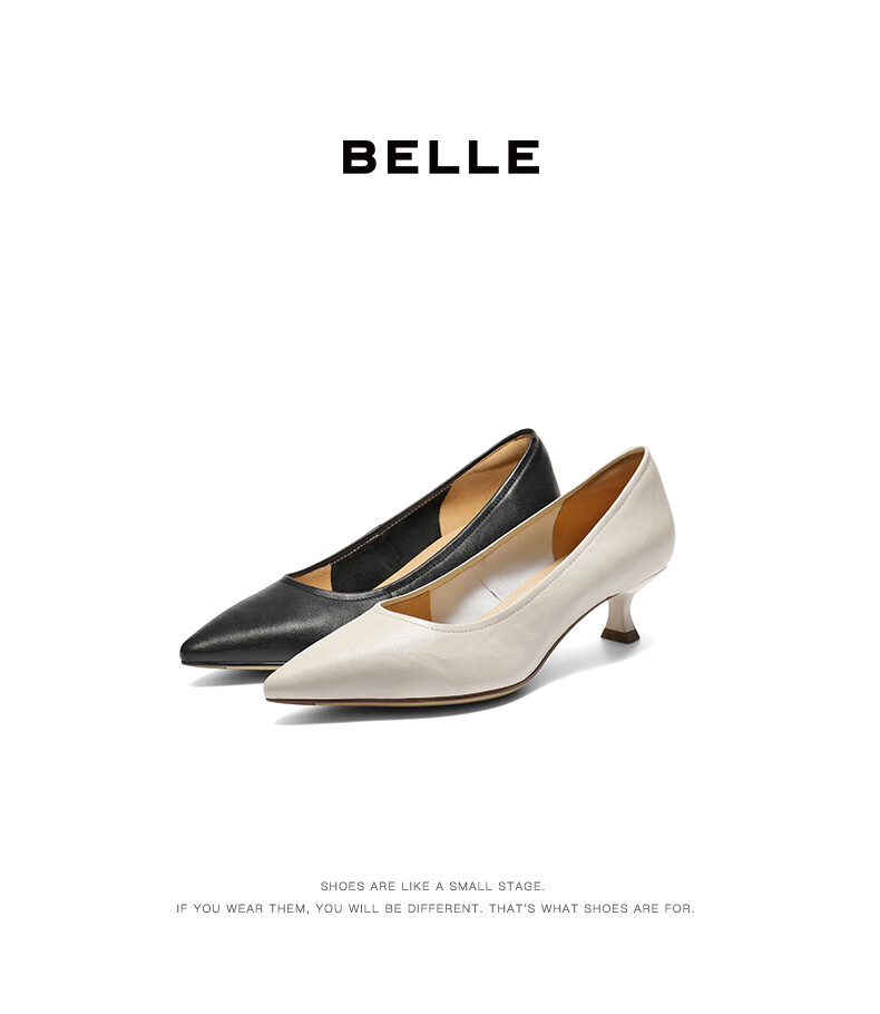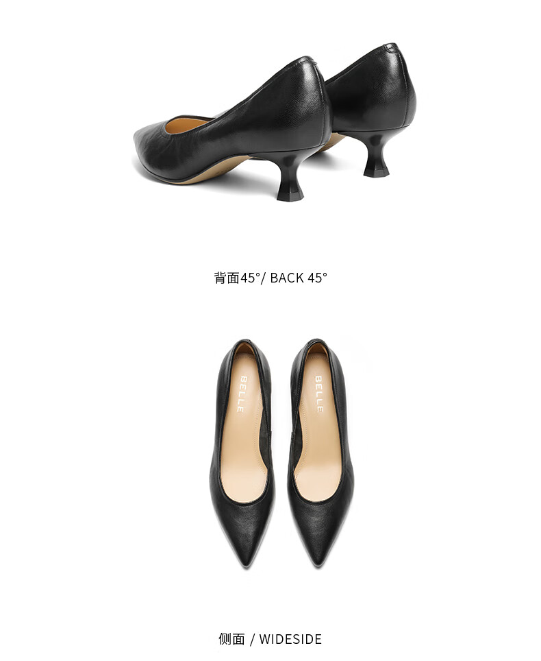 百丽(Belle)羊皮简约优雅单鞋女2025秋新商场同款细跟通勤单鞋BFH01CQ5预售 黑色 38