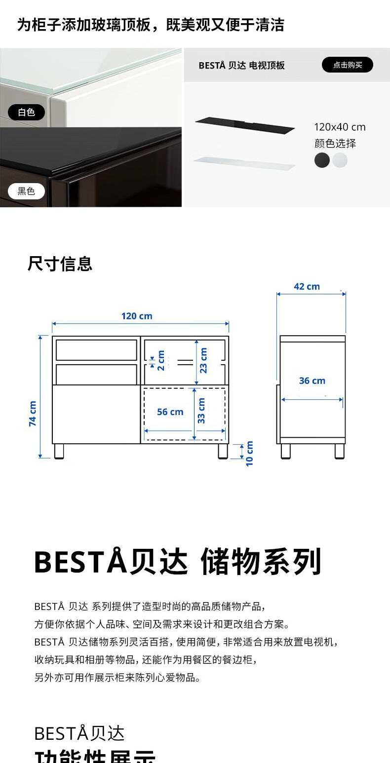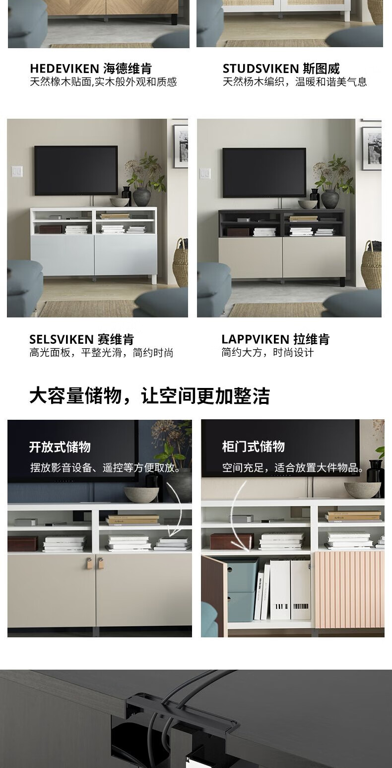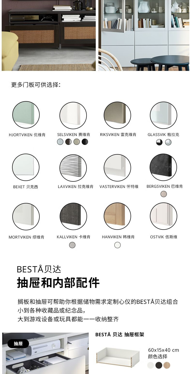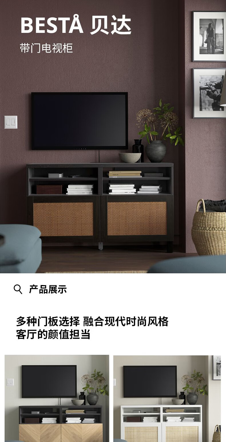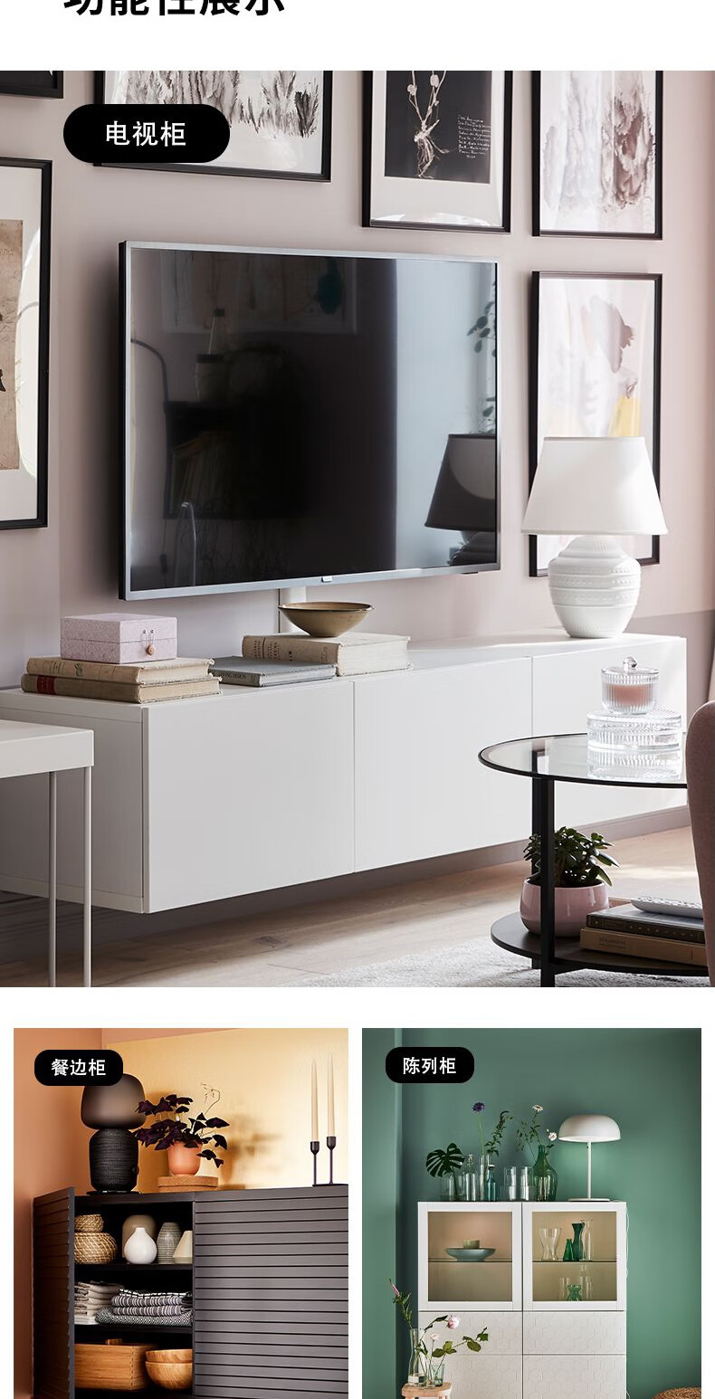 宜家(IKEA)【新品】BESTA贝达带门电视柜收纳储物柜一体简约小户型 白色/塞维肯 高光白