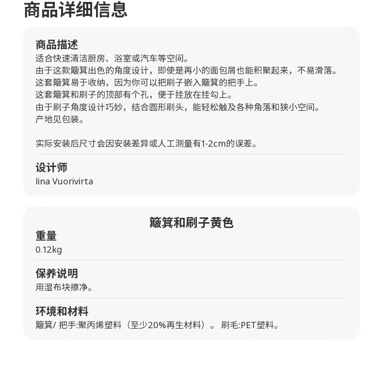 宜家(IKEA)顺手买一件PEPPRIG 佩普里格 簸箕和刷子 黄色 簸箕和刷子黄色