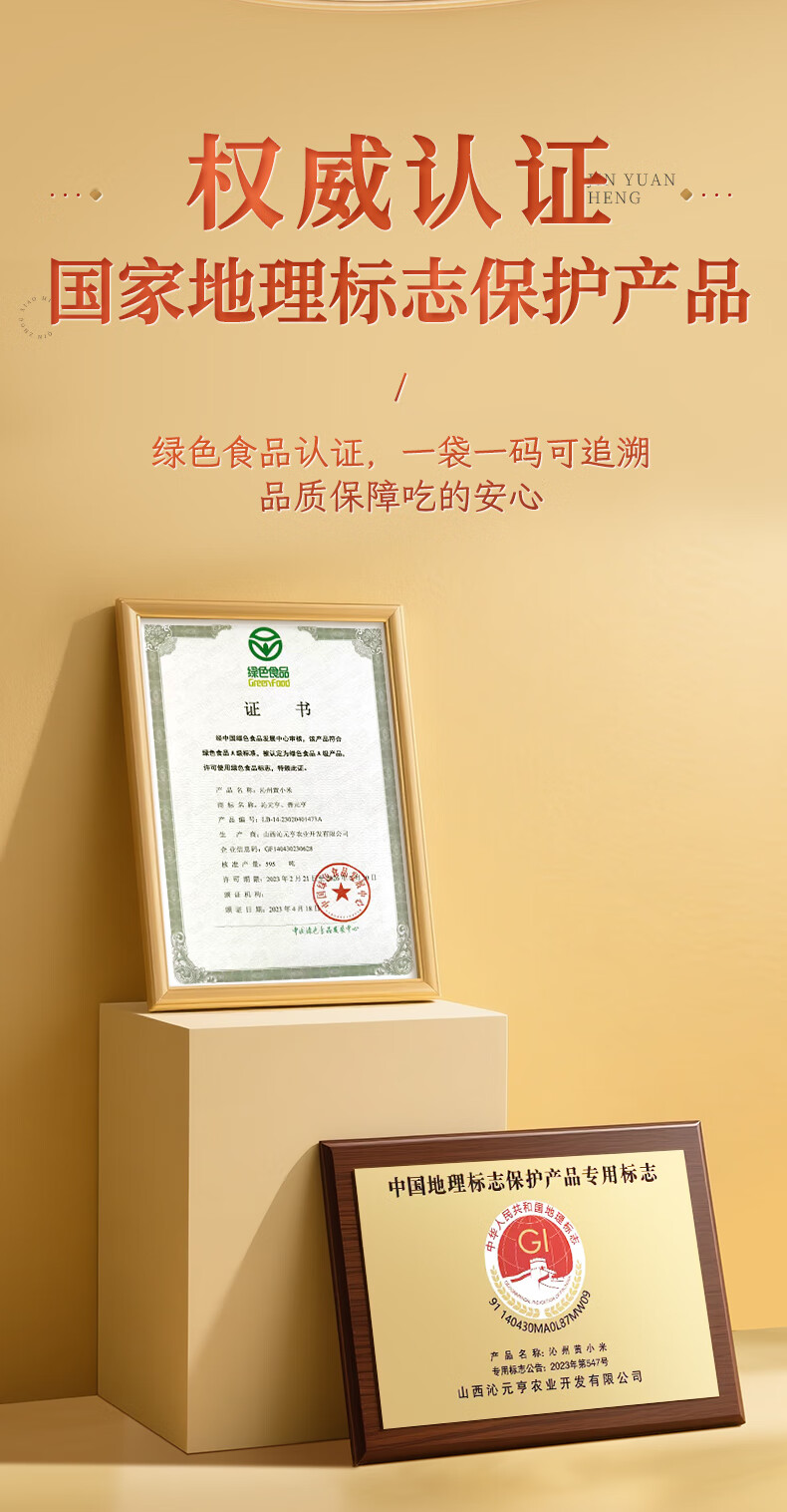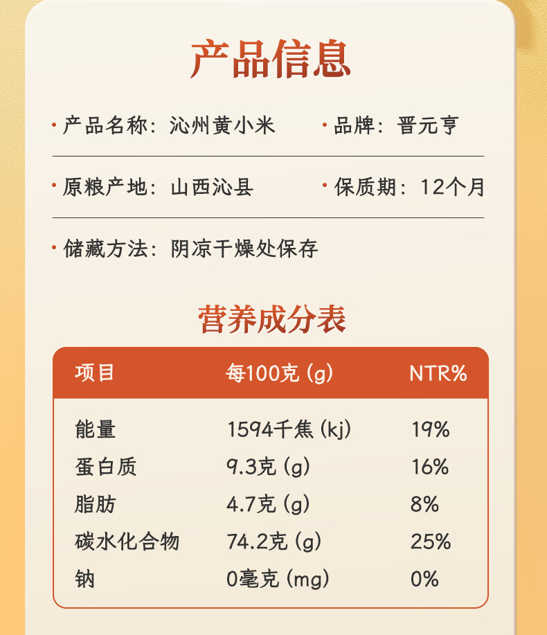 晋元亨沁州黄小米粗粮小米粥山西特产小米杂粮 山西黄小米礼盒五谷杂粮 甄选1.5kg(500g*3包)