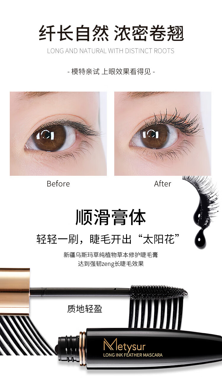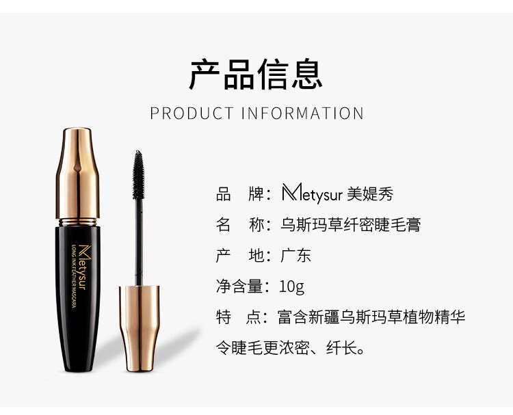 美媞秀(Metysur)新疆乌斯玛草本睫毛膏防水不晕染持久浓密纤长卷翘4d睫毛膏彩妆 纤密睫毛膏*2