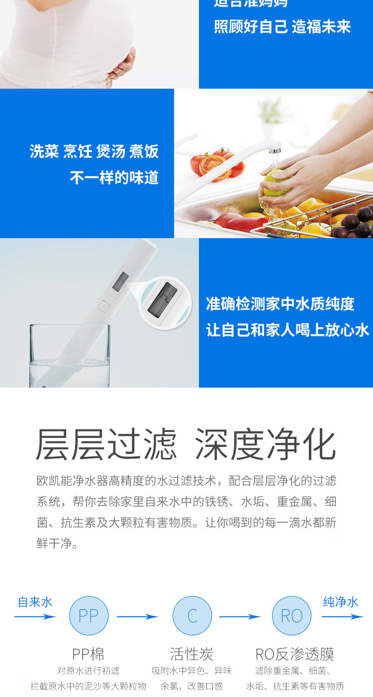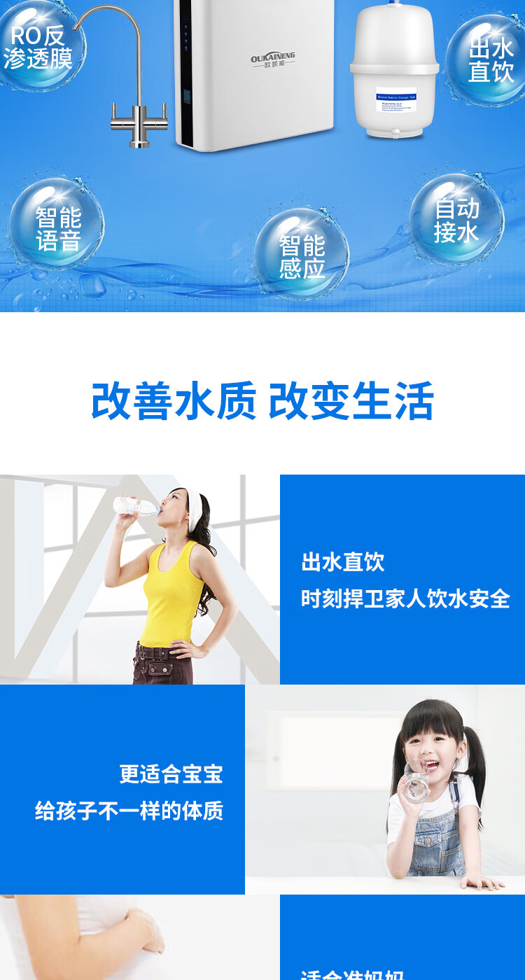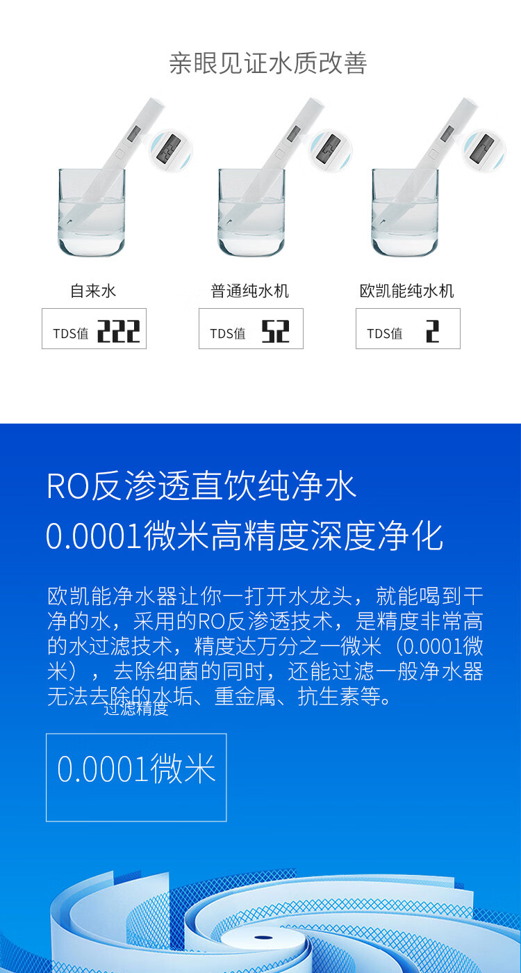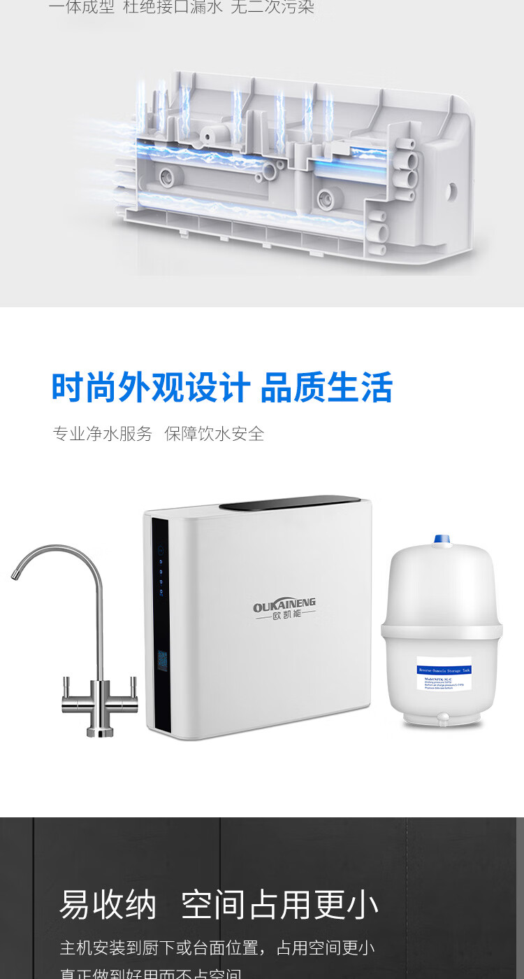 欧凯能净水器家用直饮机厨下自来水过滤器全屋净水联网智能家用厨房RO反渗透纯水机华迈M3小扁豆净水机 套餐2(详询客服)