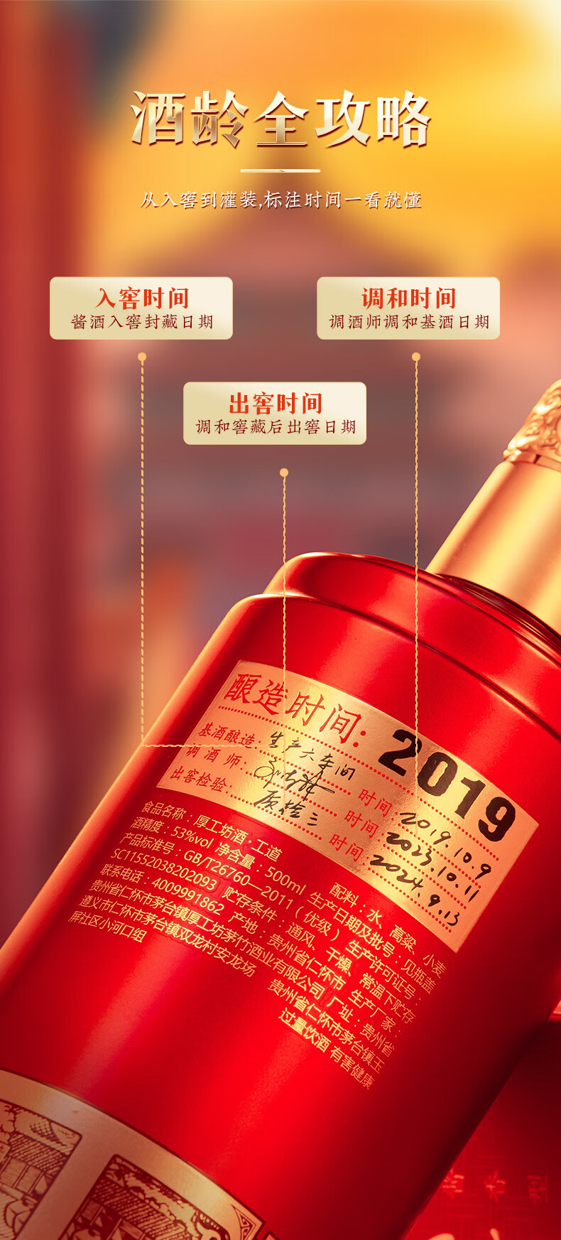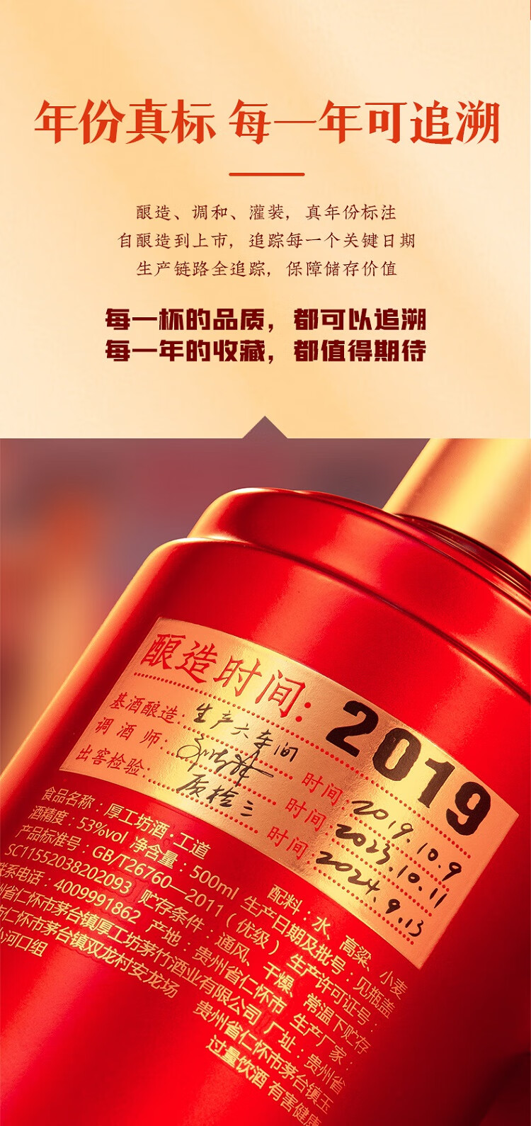 厚工坊【超级十八5.8折限时优惠】53度酱香型白酒 纯粮食坤沙酒 53度 500mL 18瓶 热销口粮酒组合