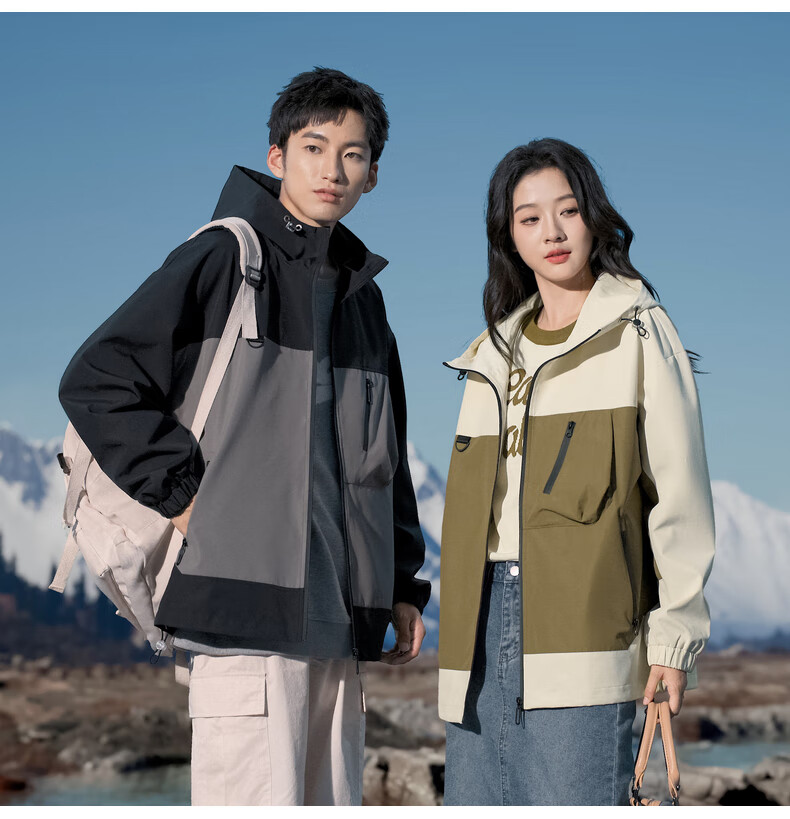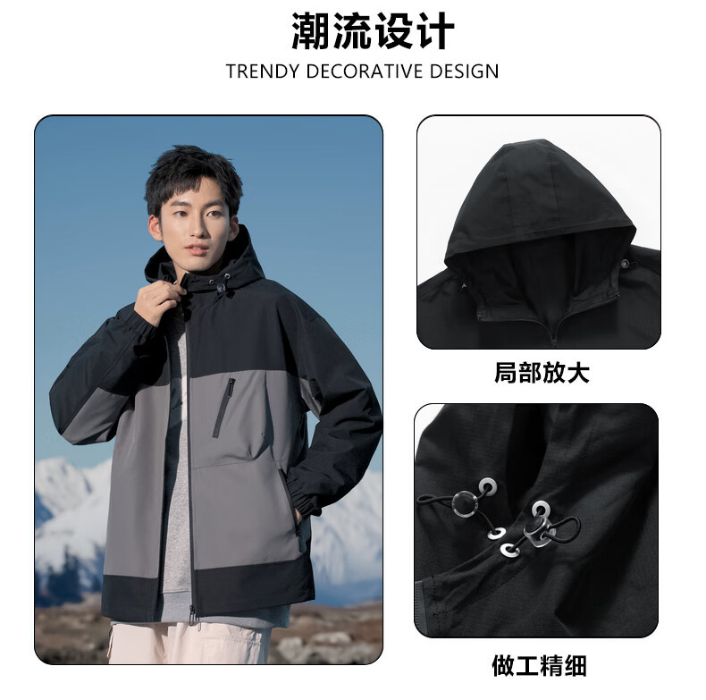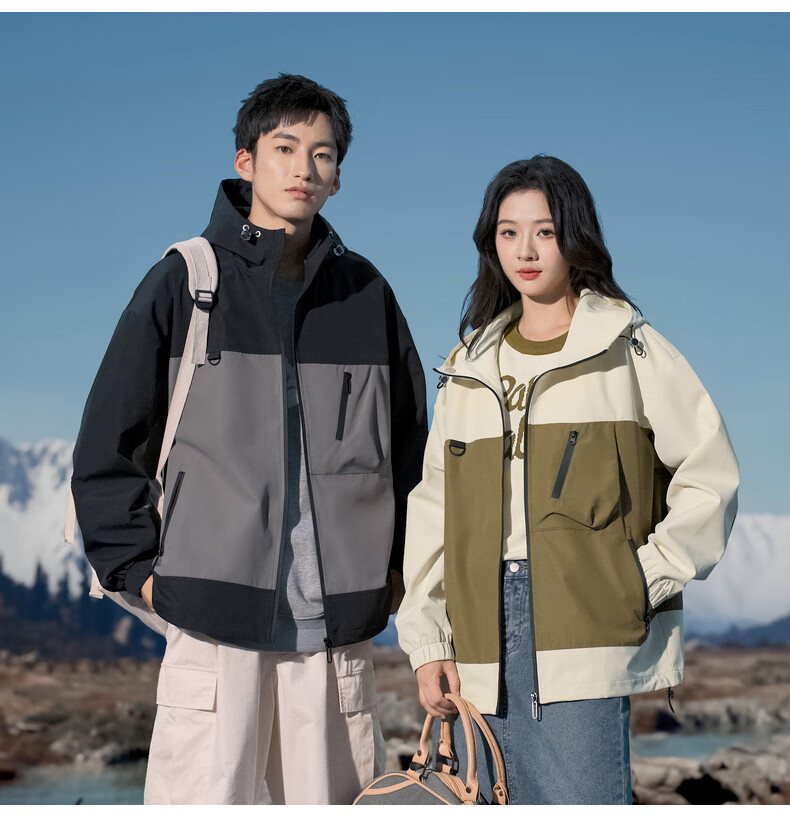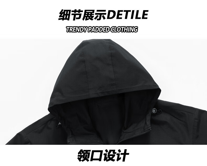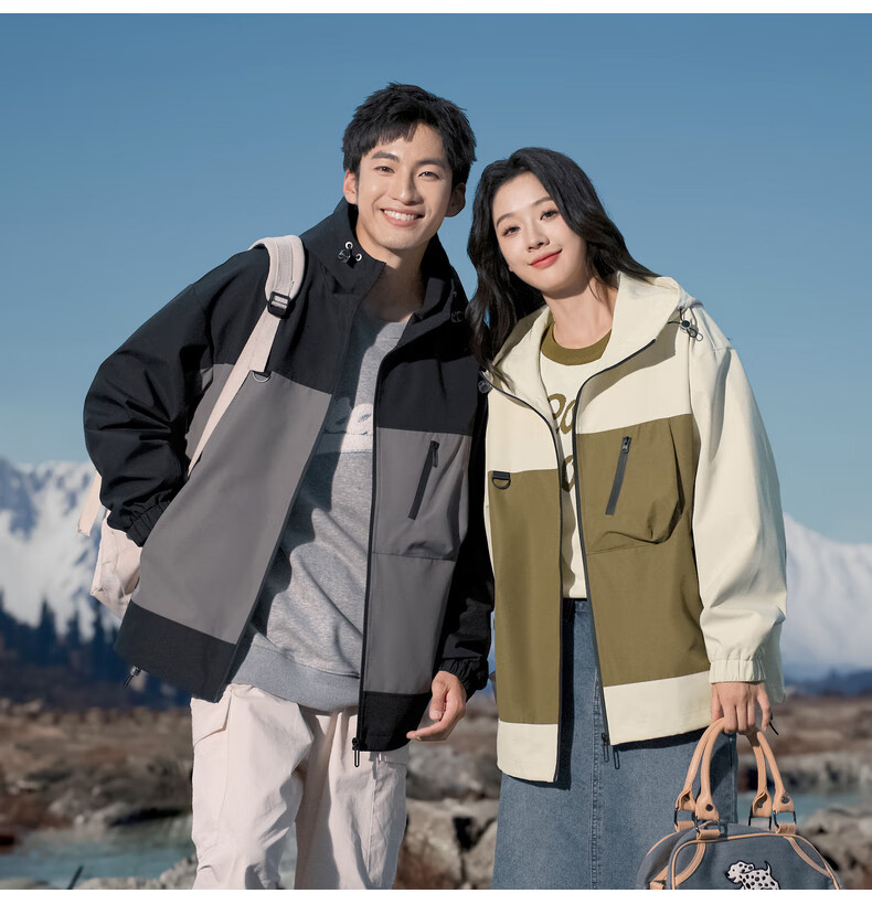 拉夏贝尔(La Chapelle)春秋季新款男女装休闲时尚情侣同款拼色连帽夹克短外套上衣风衣 黑色 L