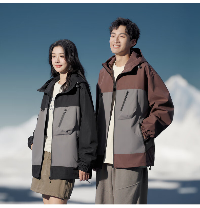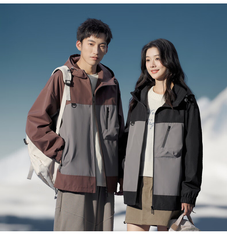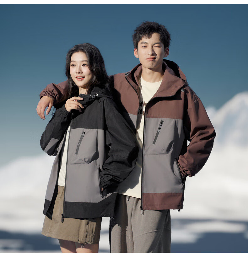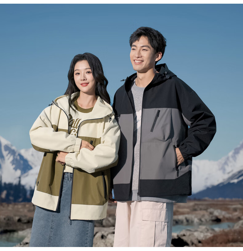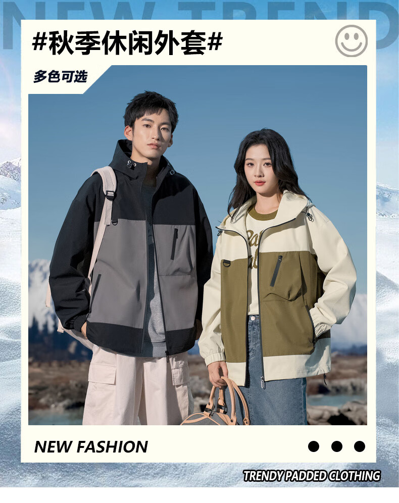 拉夏贝尔(La Chapelle)春秋季新款男女装休闲时尚情侣同款拼色连帽夹克短外套上衣风衣 黑色 L