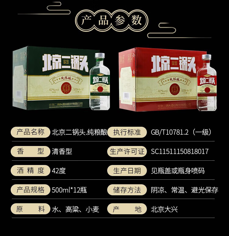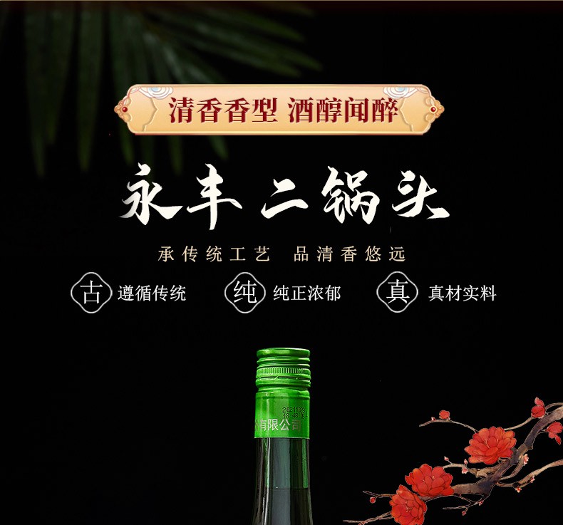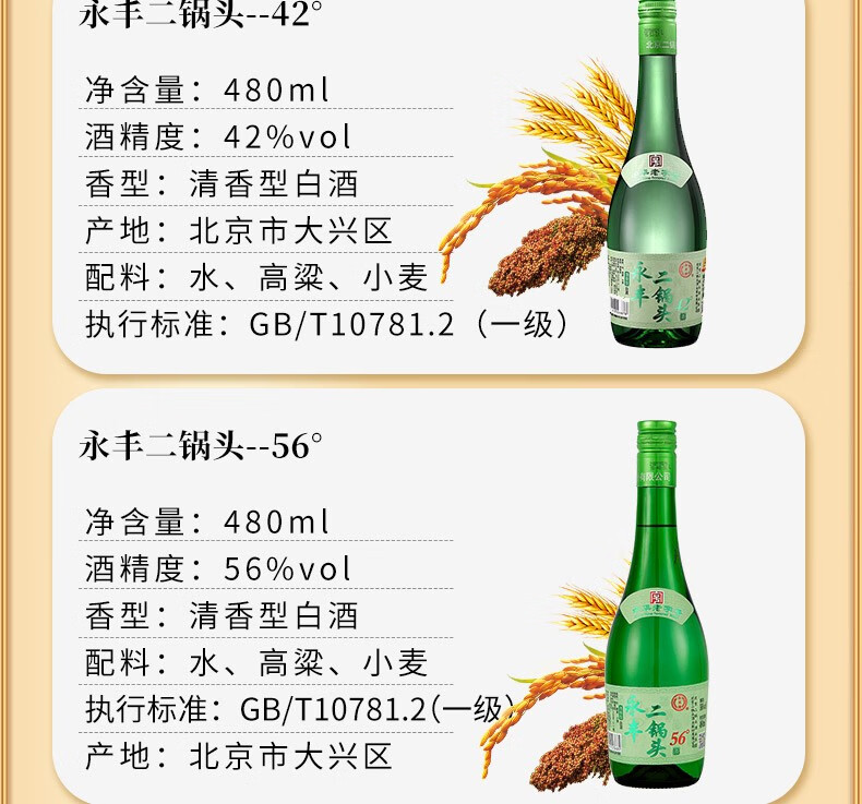 永丰牌北京二锅头 纯粮食酿造白酒 口粮酒 整箱 42度 500mL 12瓶 纯粮酿