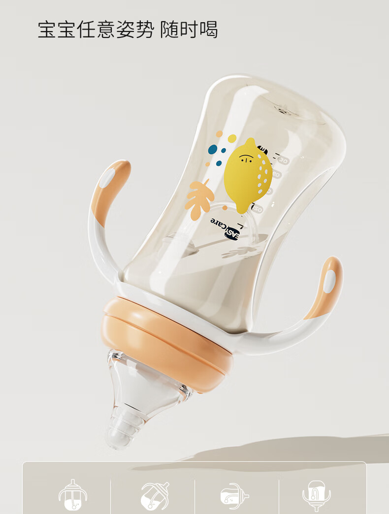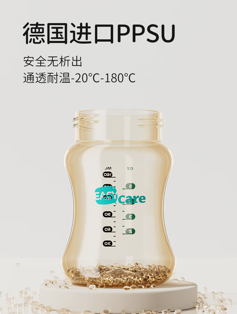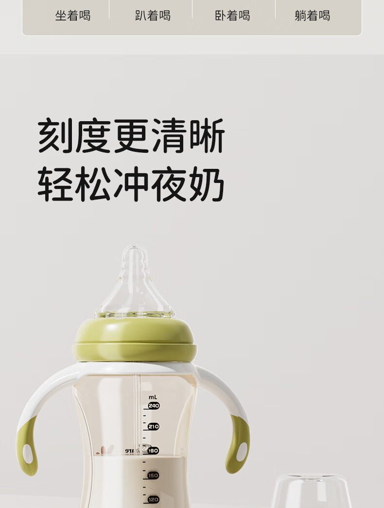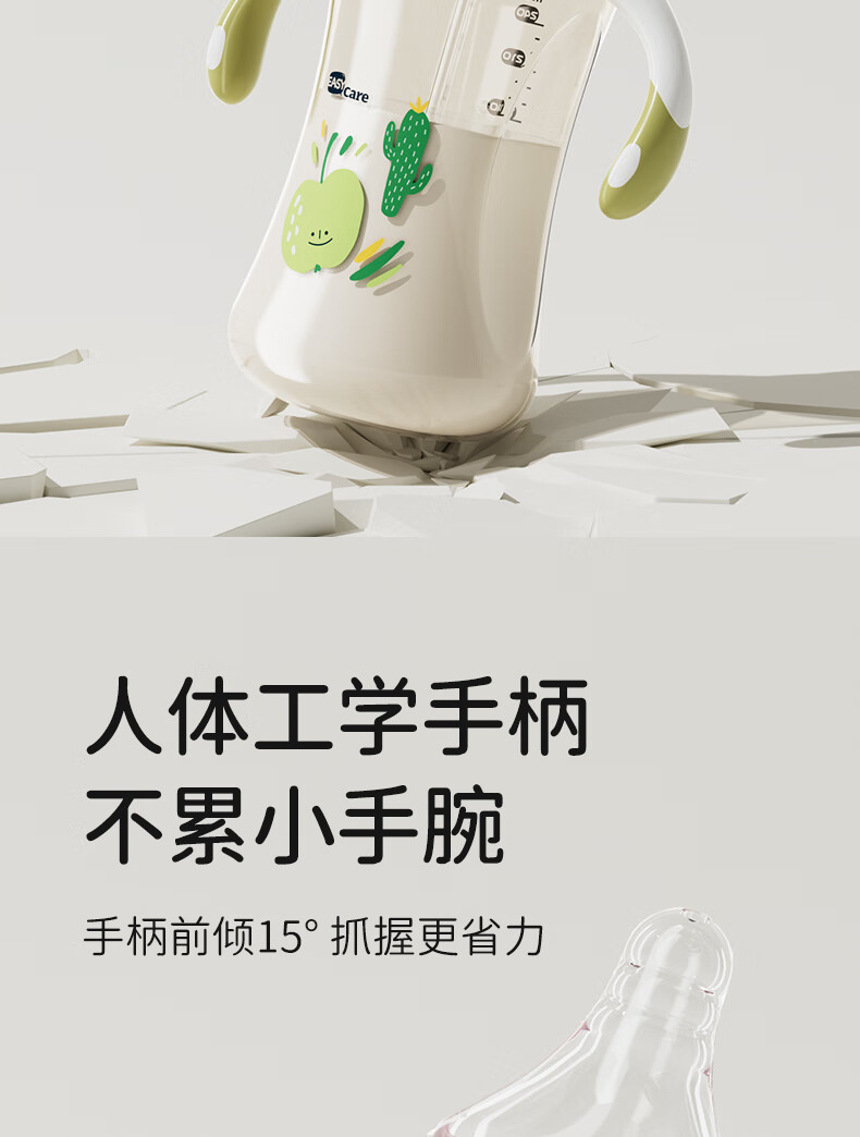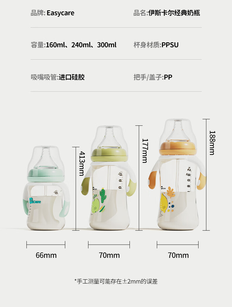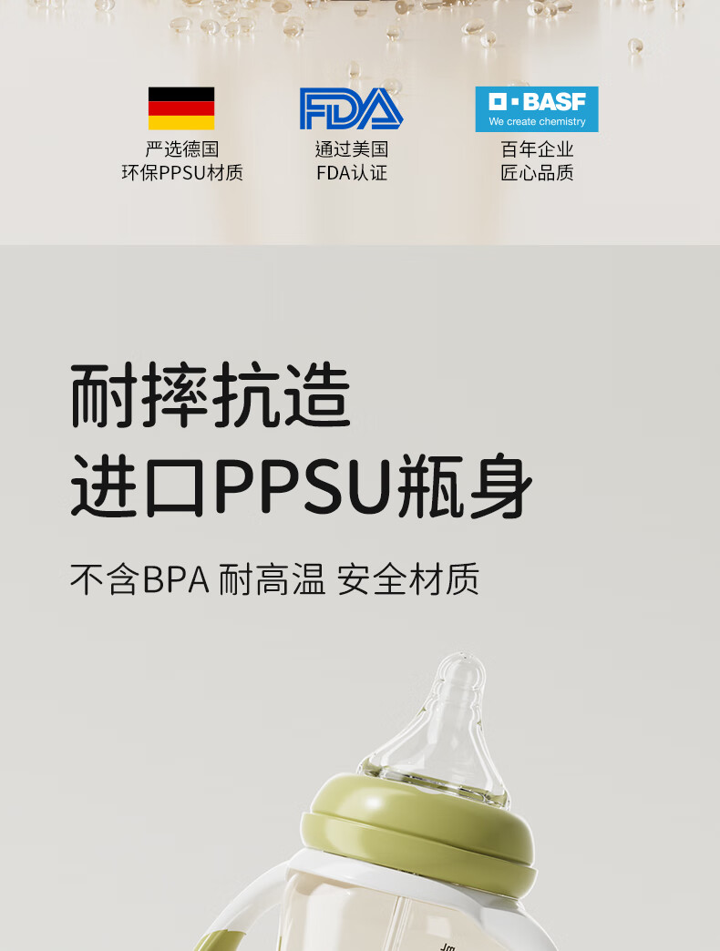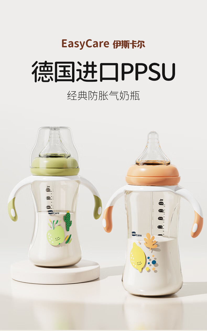 伊斯卡尔(EASYCare)宽口径奶瓶 吸管防摔奶瓶 婴儿宝宝PPSU奶瓶学饮杯手柄重力球吸管 艾草绿 300ml 12月+ 【V号奶嘴】