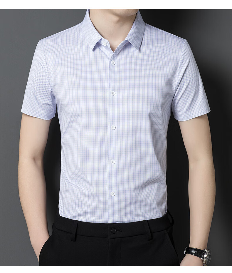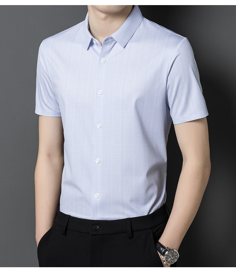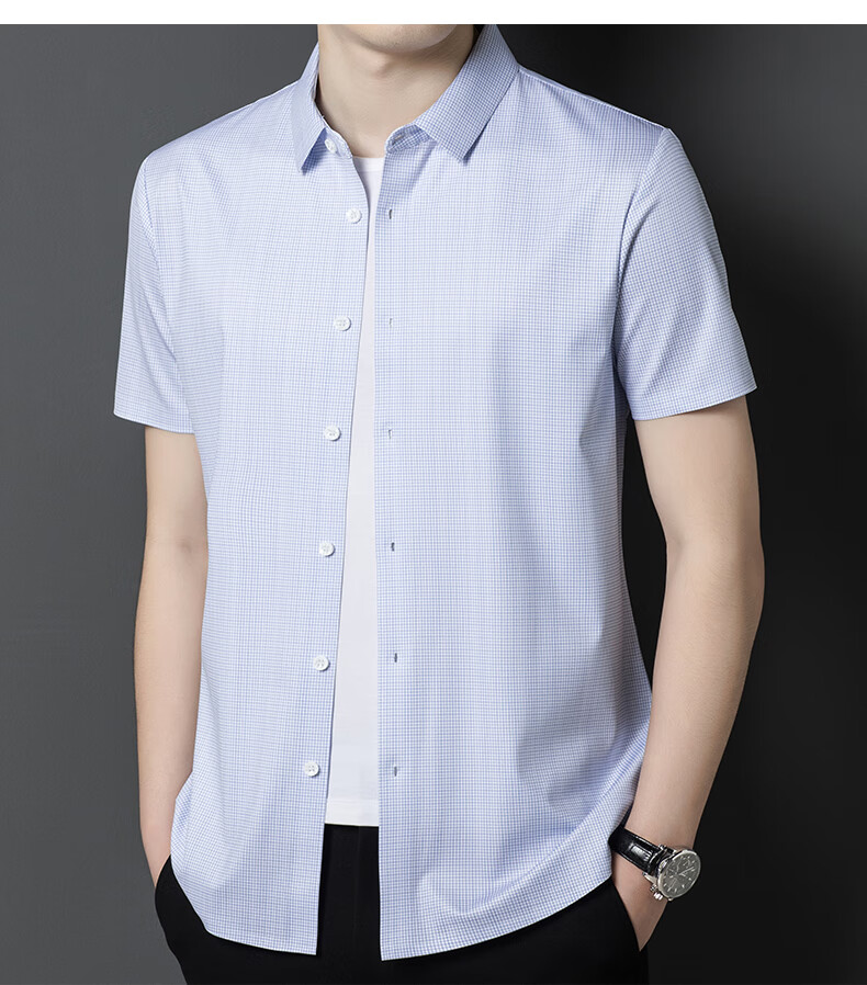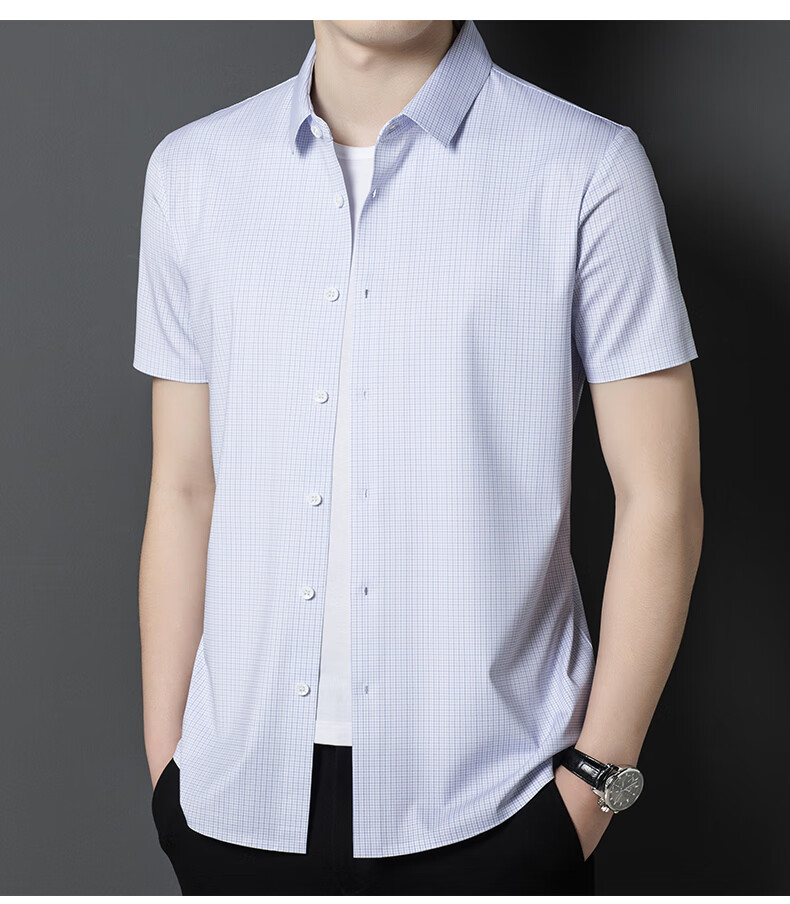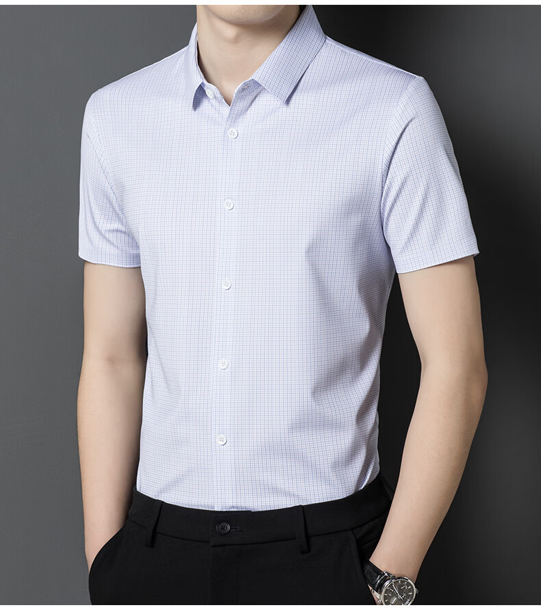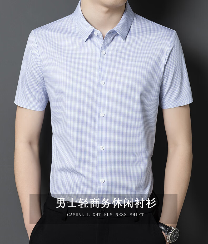 利郎桑蚕丝短袖衬衫男士夏季休闲中年爸爸装免烫格子衬衣薄寸衫 2571黑色 4XL 190 (建议185斤-205斤)