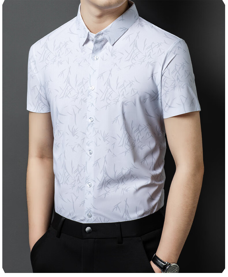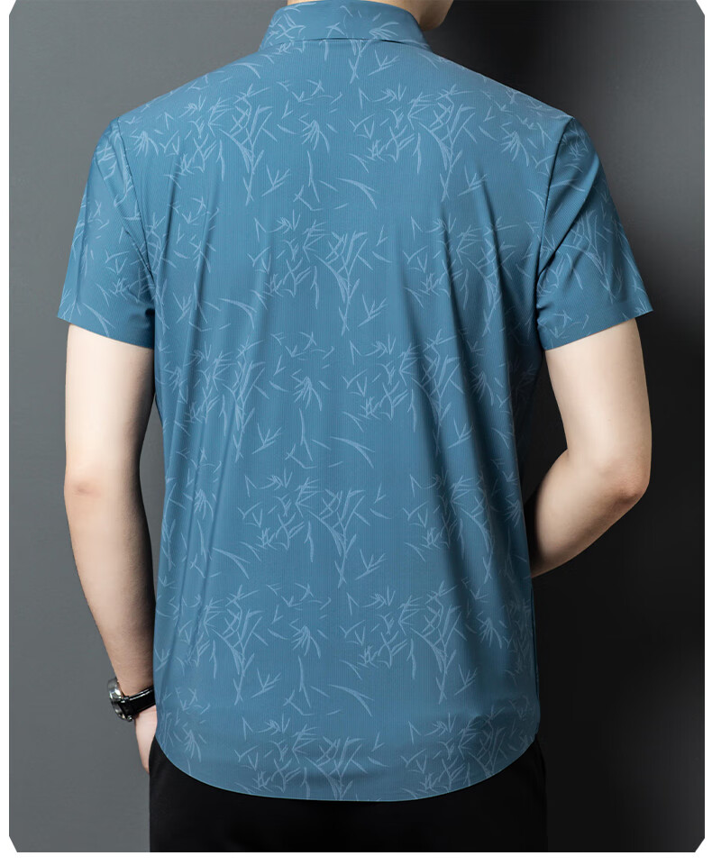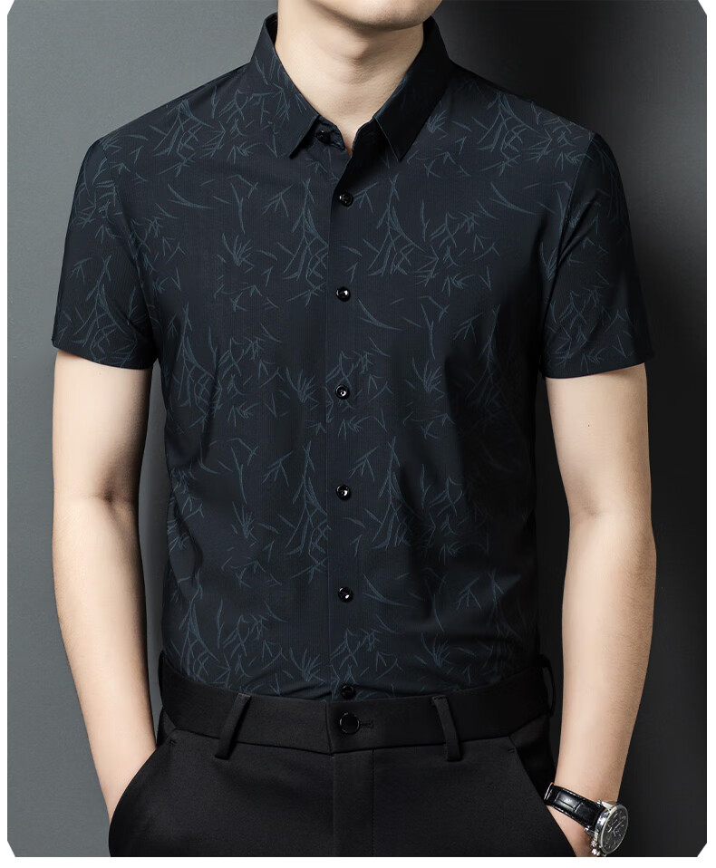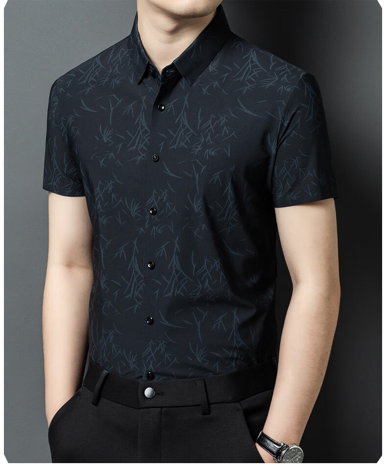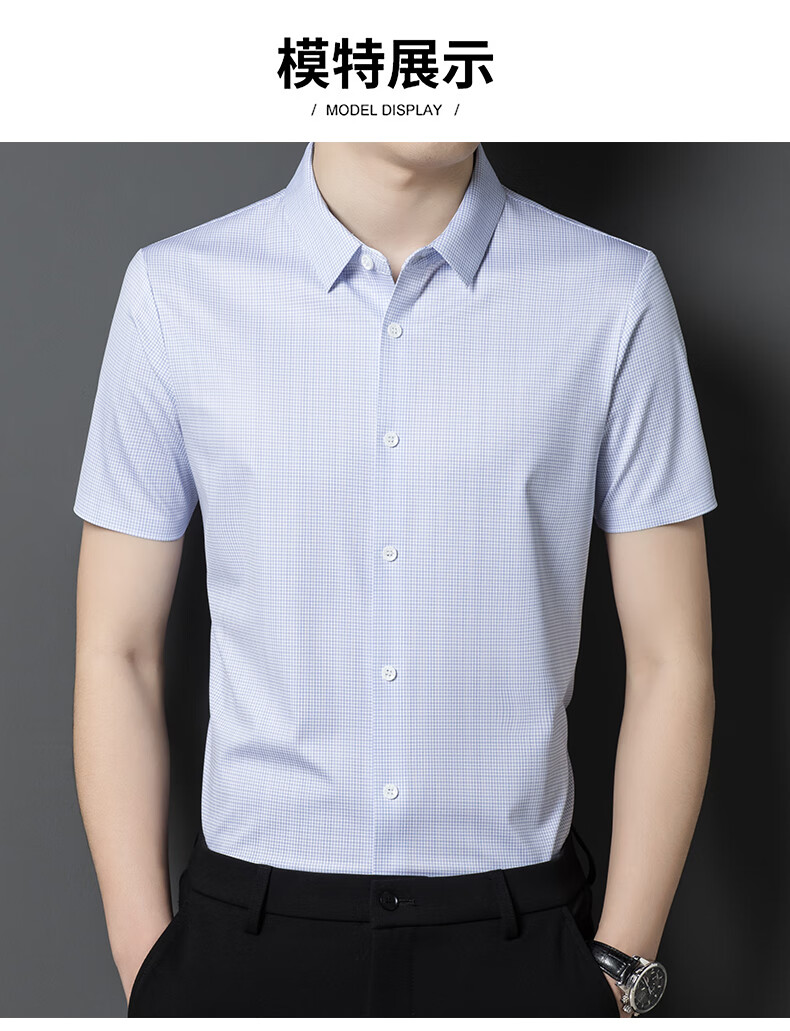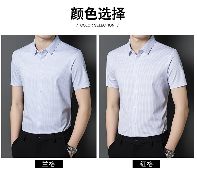 利郎桑蚕丝短袖衬衫男士夏季休闲中年爸爸装免烫格子衬衣薄寸衫 2571黑色 4XL 190 (建议185斤-205斤)