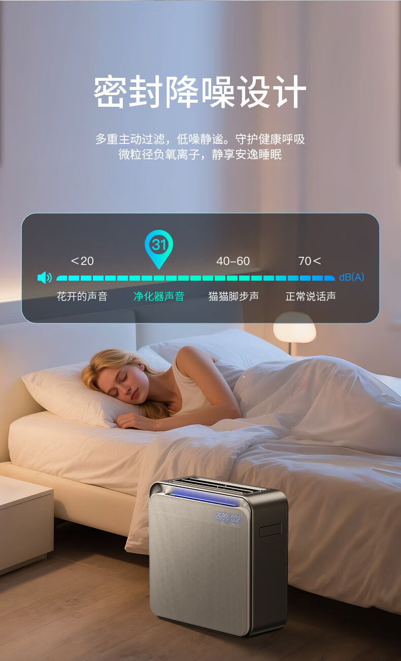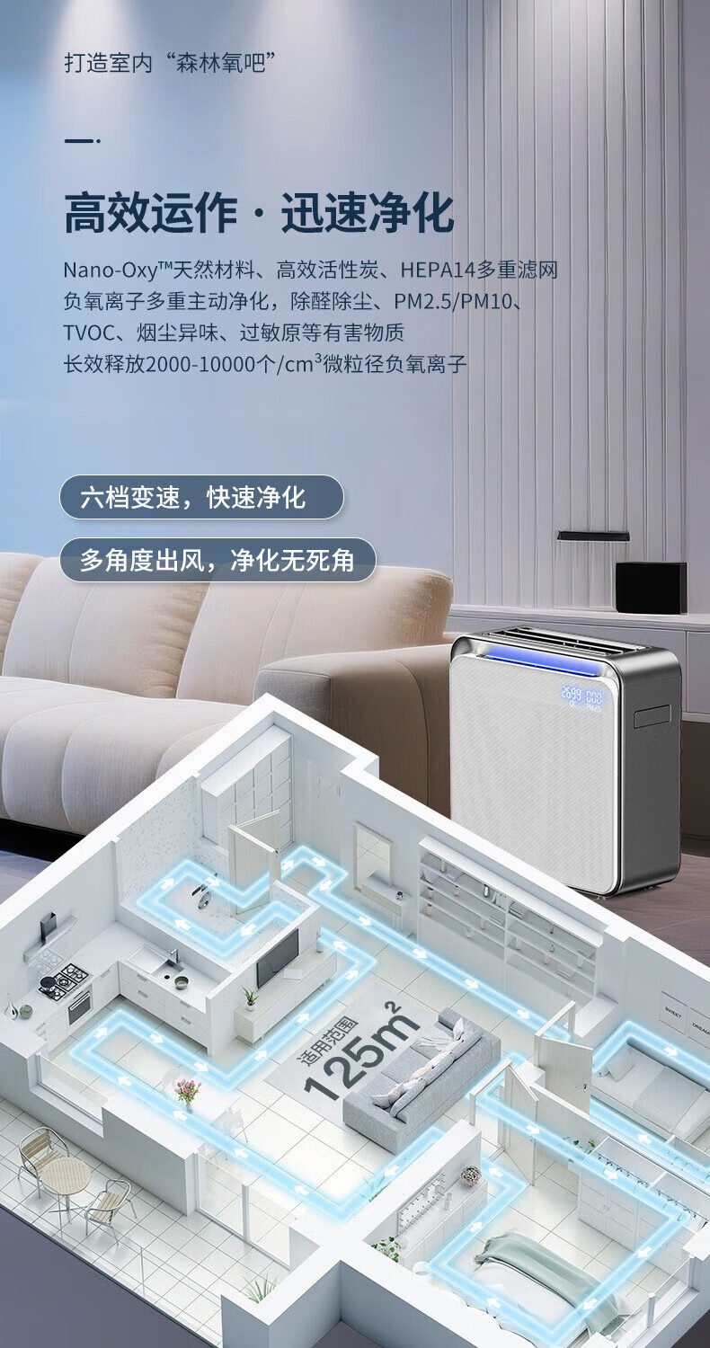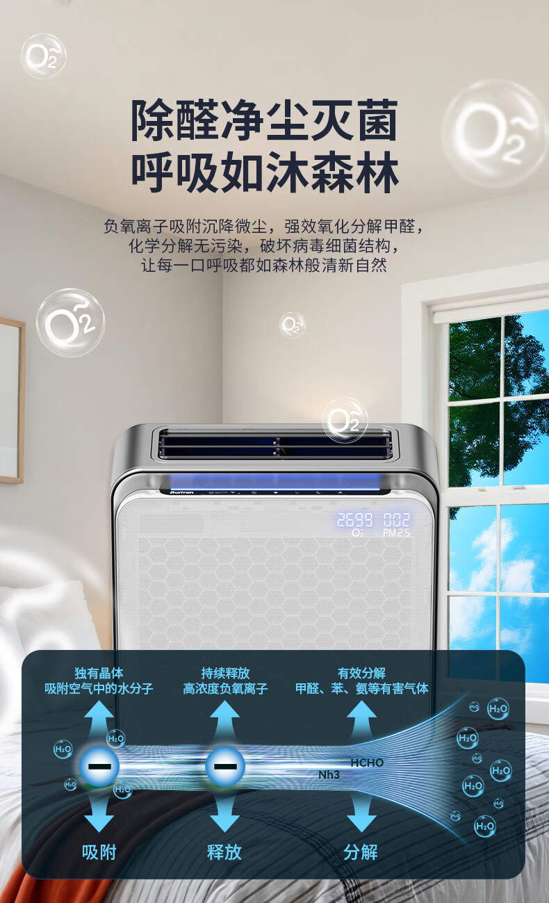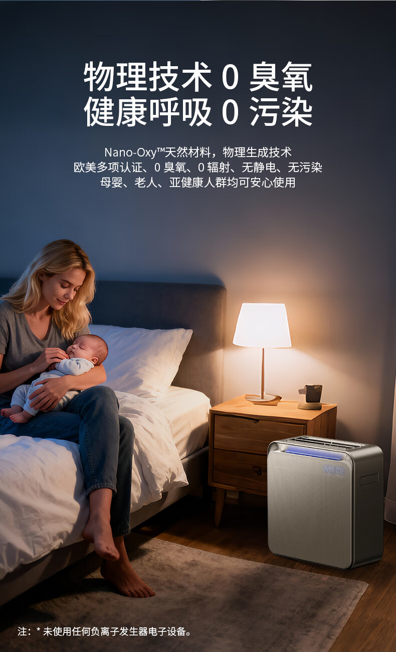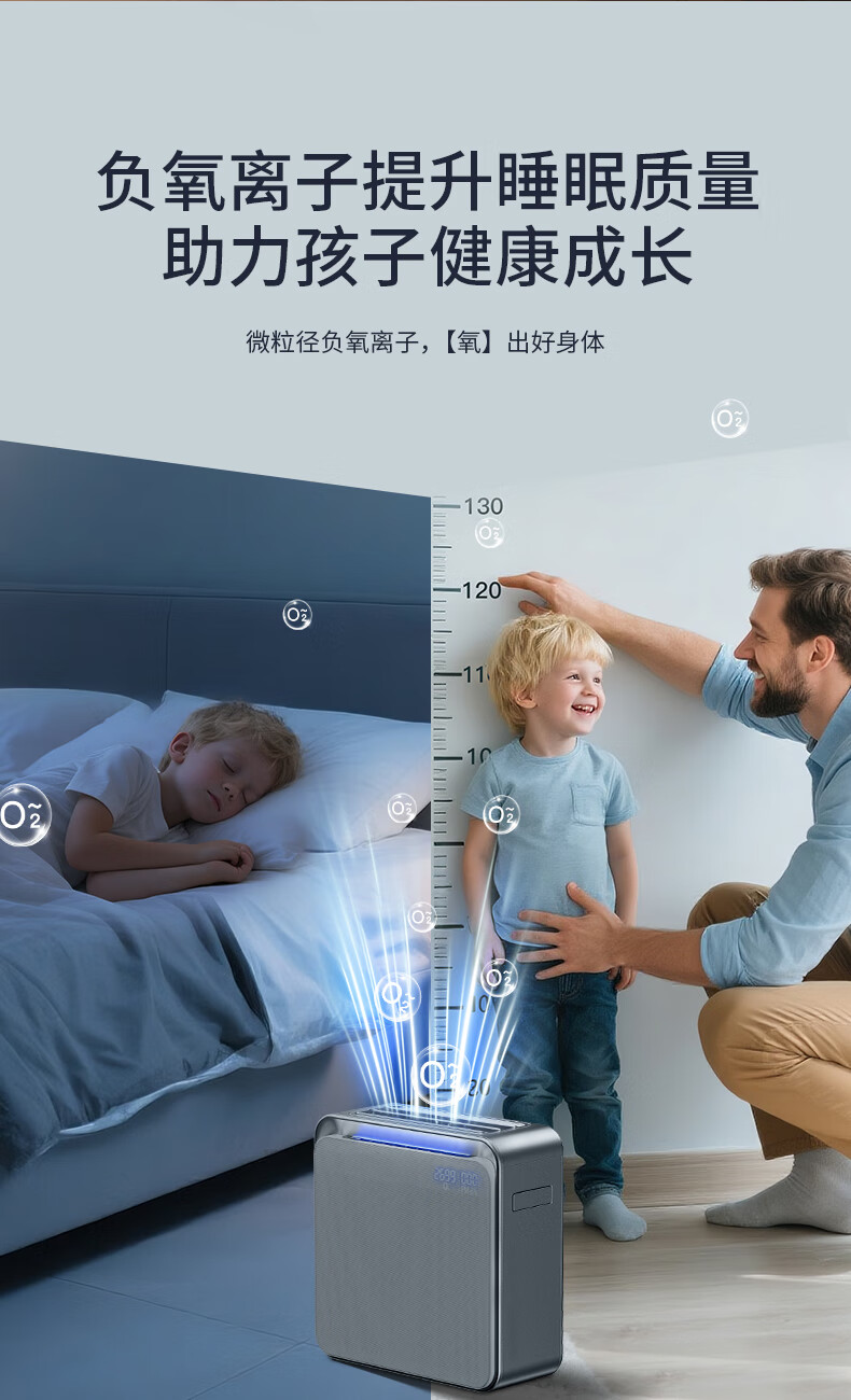 oaksBurtran美国千橡百川负氧离子空气净化器除甲醛PM2.5除异味消毒杀菌宠物毛屑 母婴家用0臭氧负氧离子A32