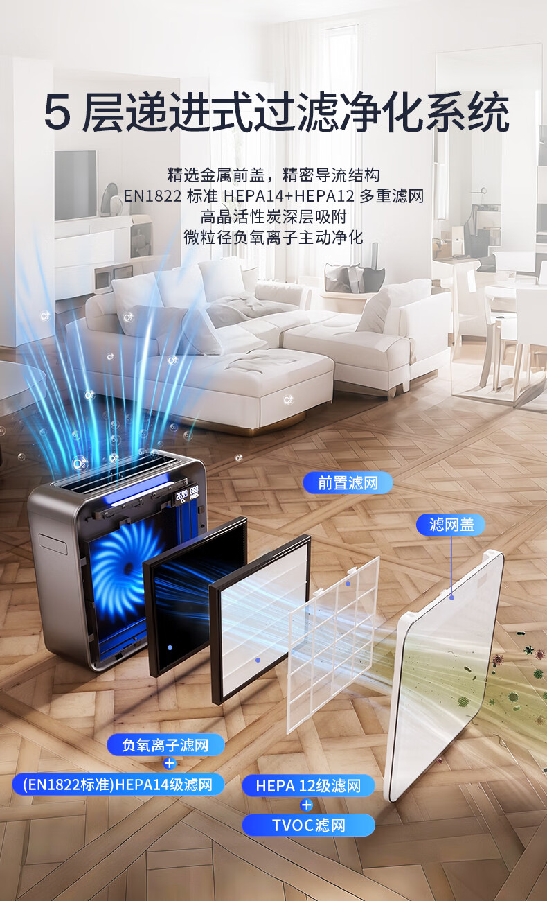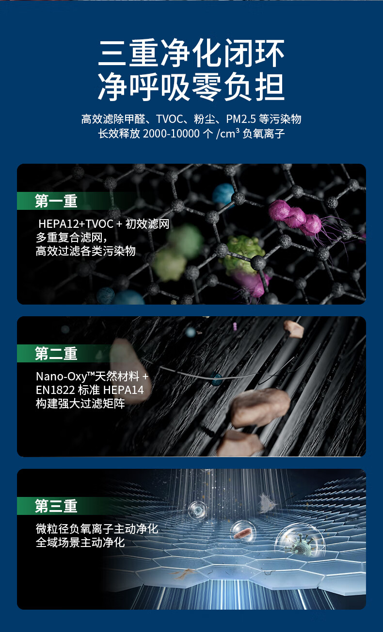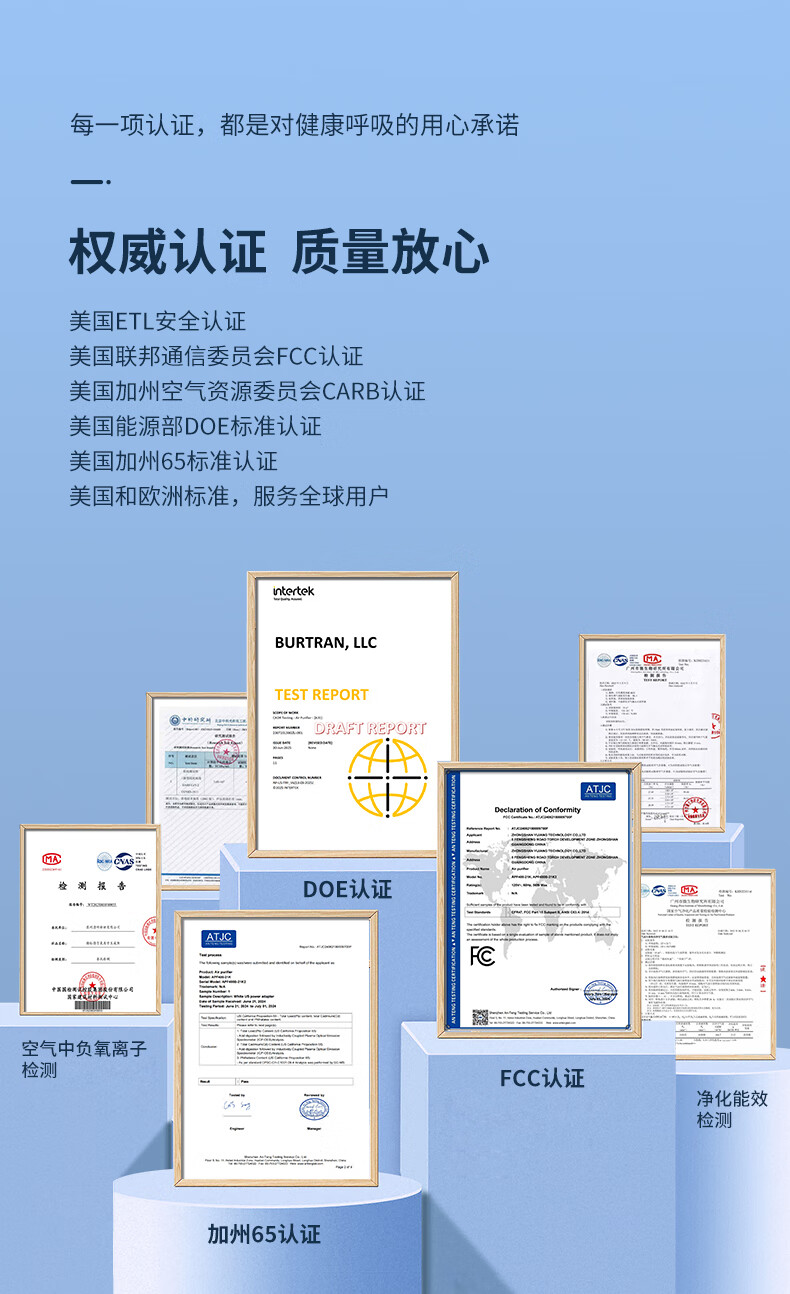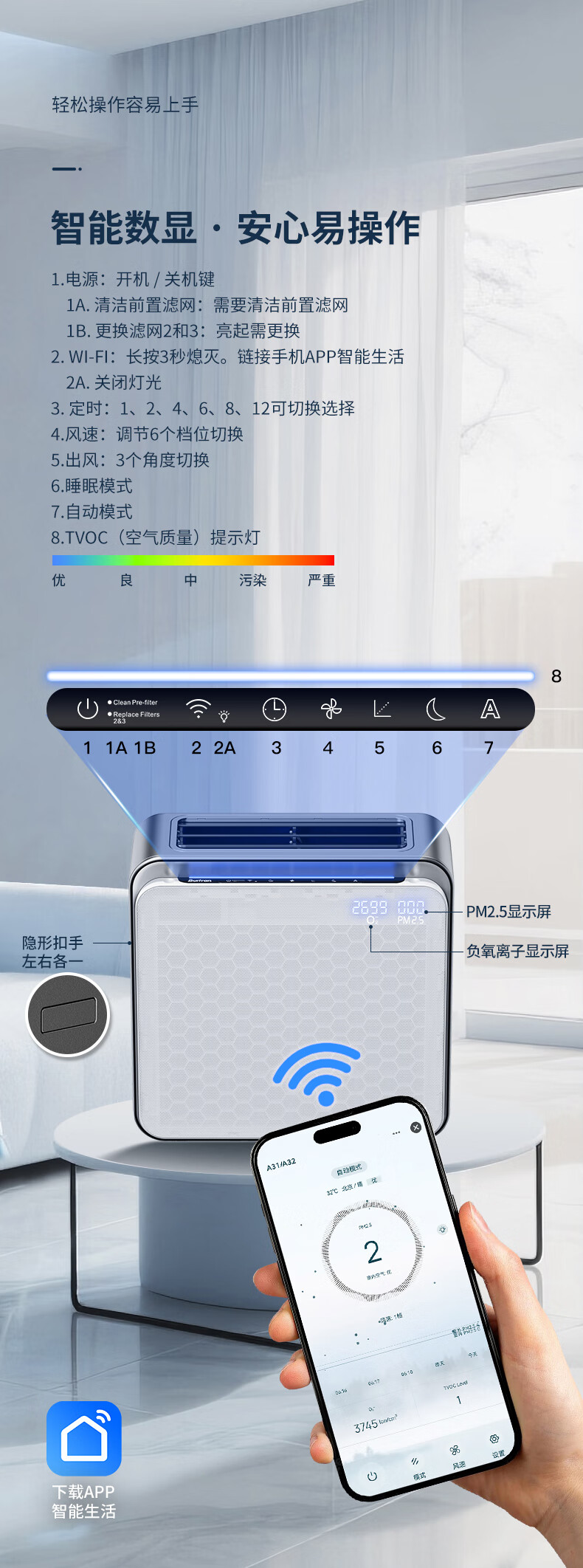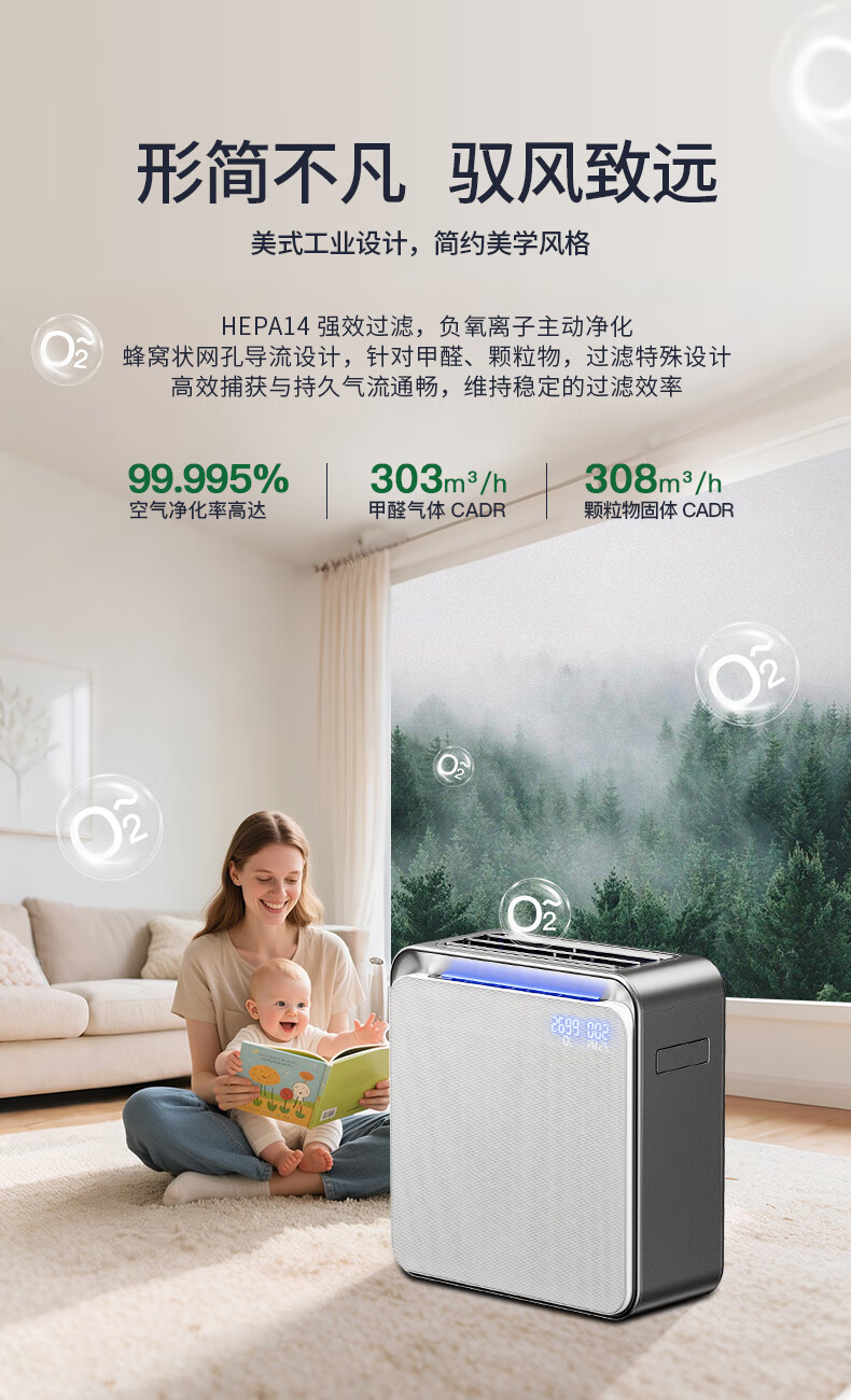 oaksBurtran美国千橡百川负氧离子空气净化器除甲醛PM2.5除异味消毒杀菌宠物毛屑 母婴家用0臭氧负氧离子A32
