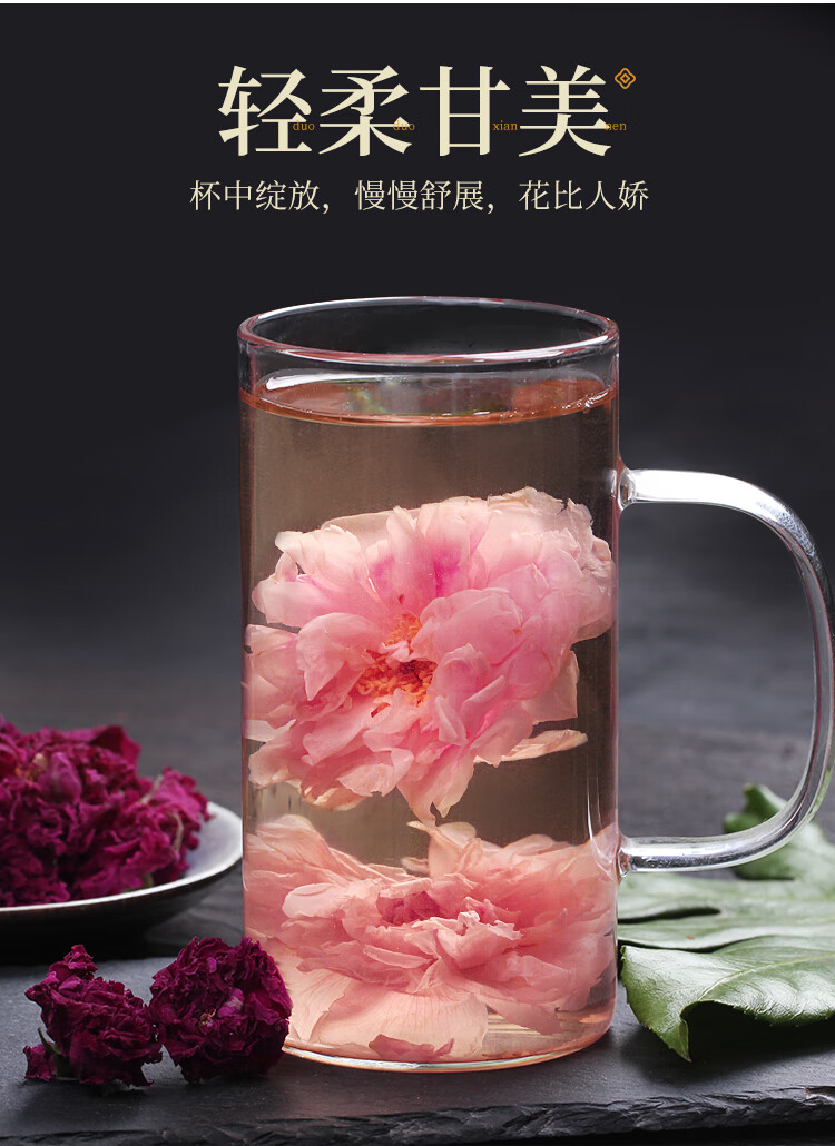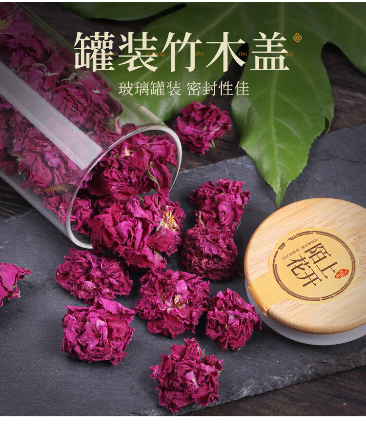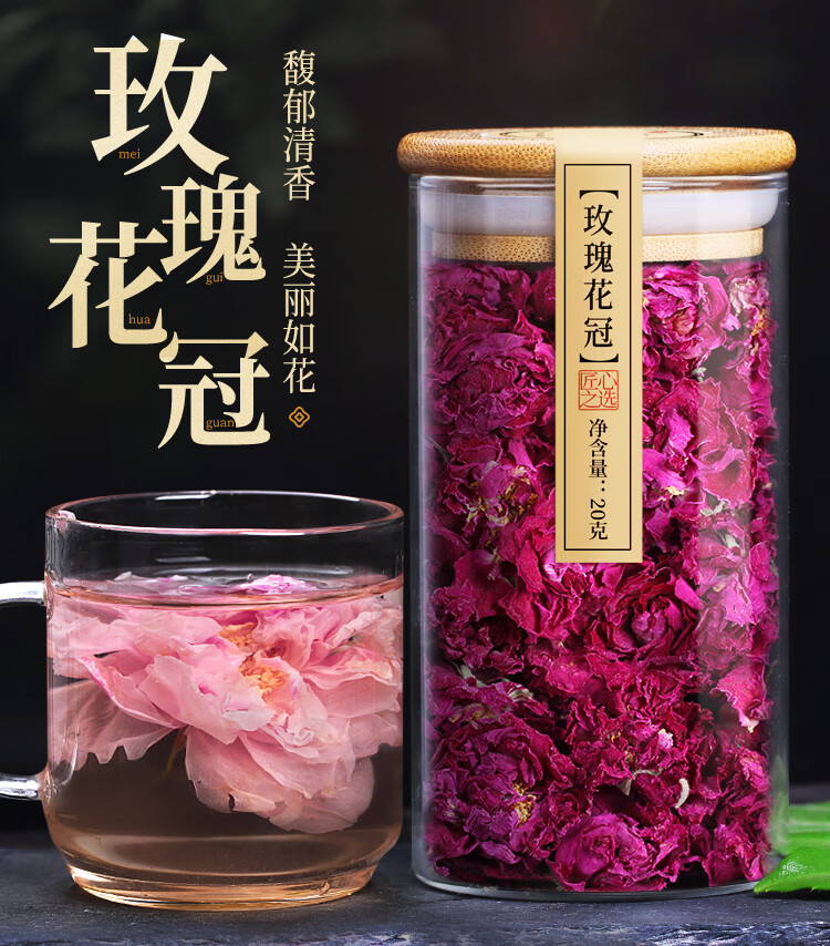 陌上花开玫瑰花茶大朵烘干花冠玫瑰茶泡水花茶可搭配茉莉精美玻璃花茶包装