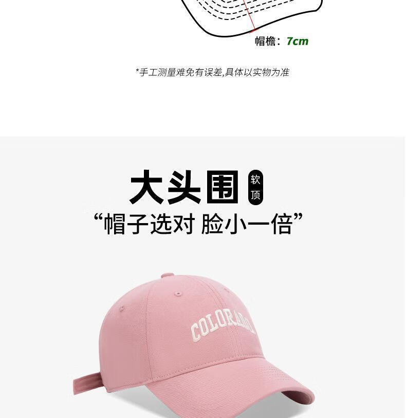 笛米酷大头围棒球帽子女2025新款显脸小韩版加深加大帽檐防晒遮阳鸭舌帽 酒红色【加大加深】 M 头围【54c-59cm】