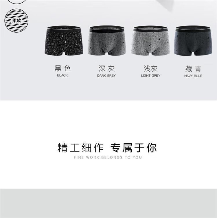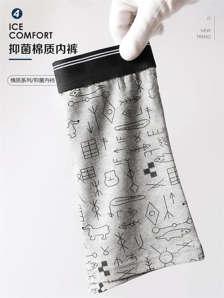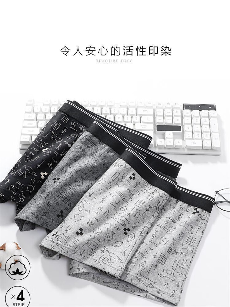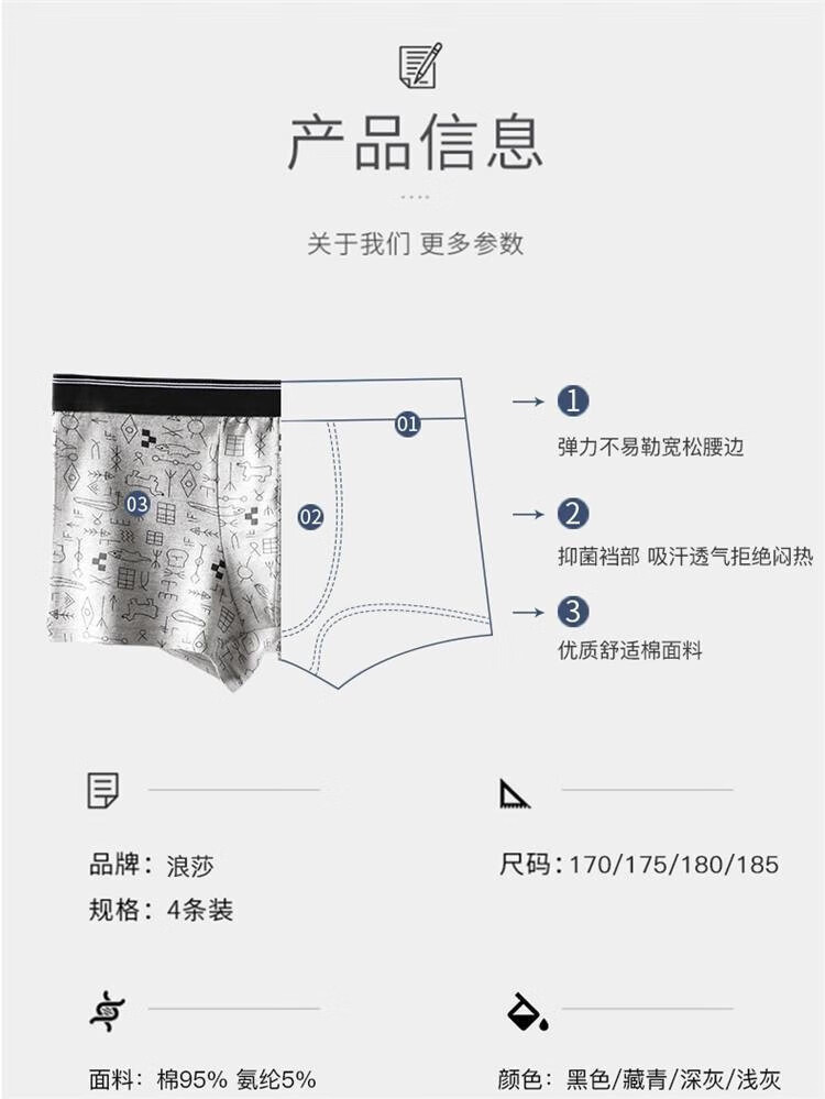 浪莎(LangSha)4条装男士内裤纯棉透气抗菌高档成人印花舒适四角短裤男平角裤 4色混搭 L-170