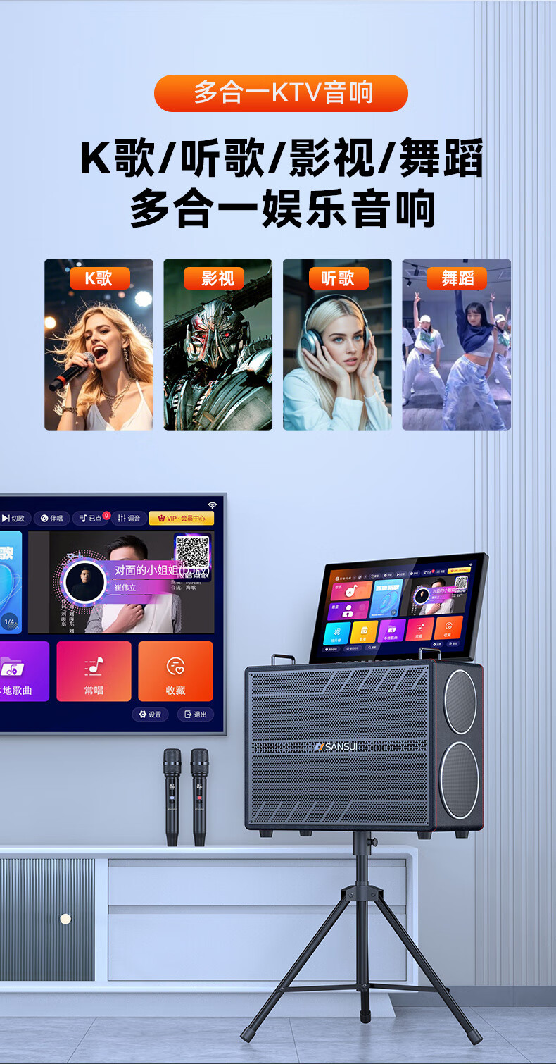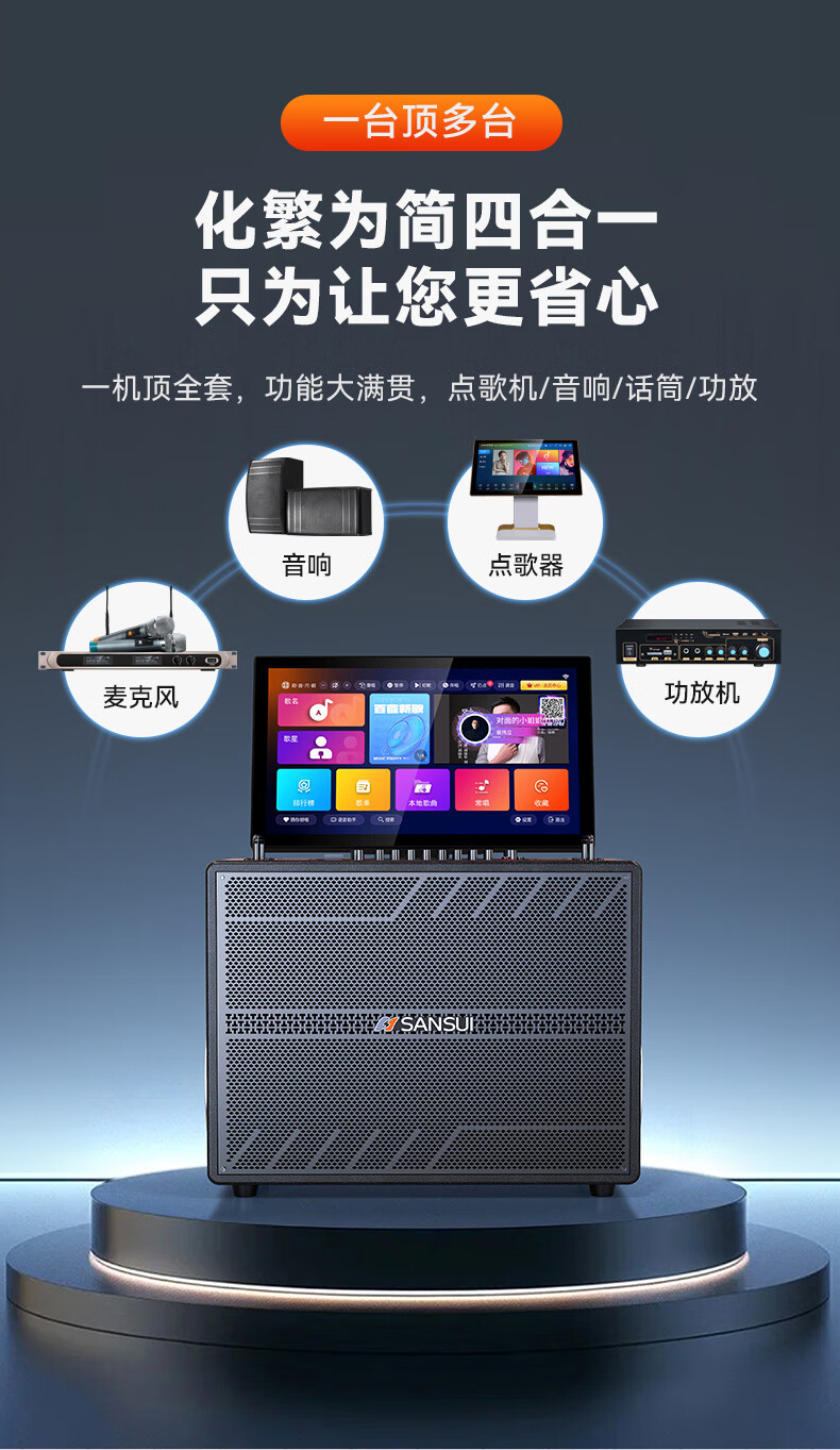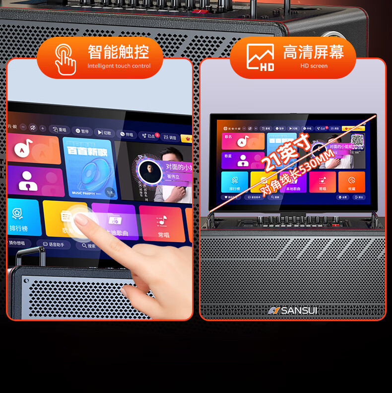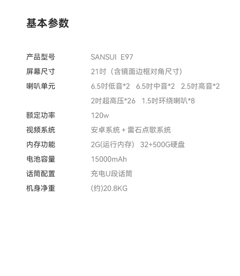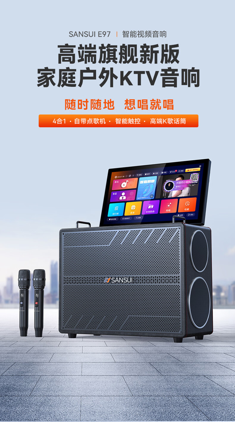 山水(SANSUI)家庭KTV音响套装点歌机唱歌户外广场舞专用卡拉OK一体机低音炮音箱带功放显示屏 E97 21吋屏40喇叭+免三年会员费+6.5吋喇叭