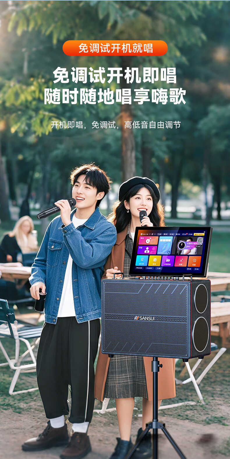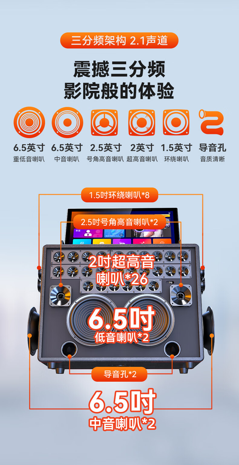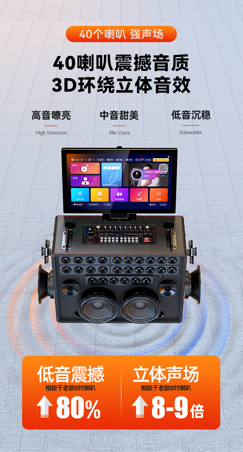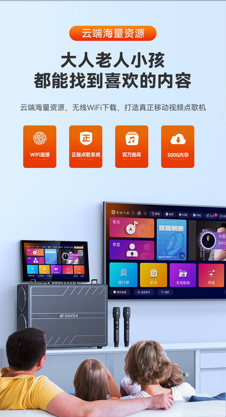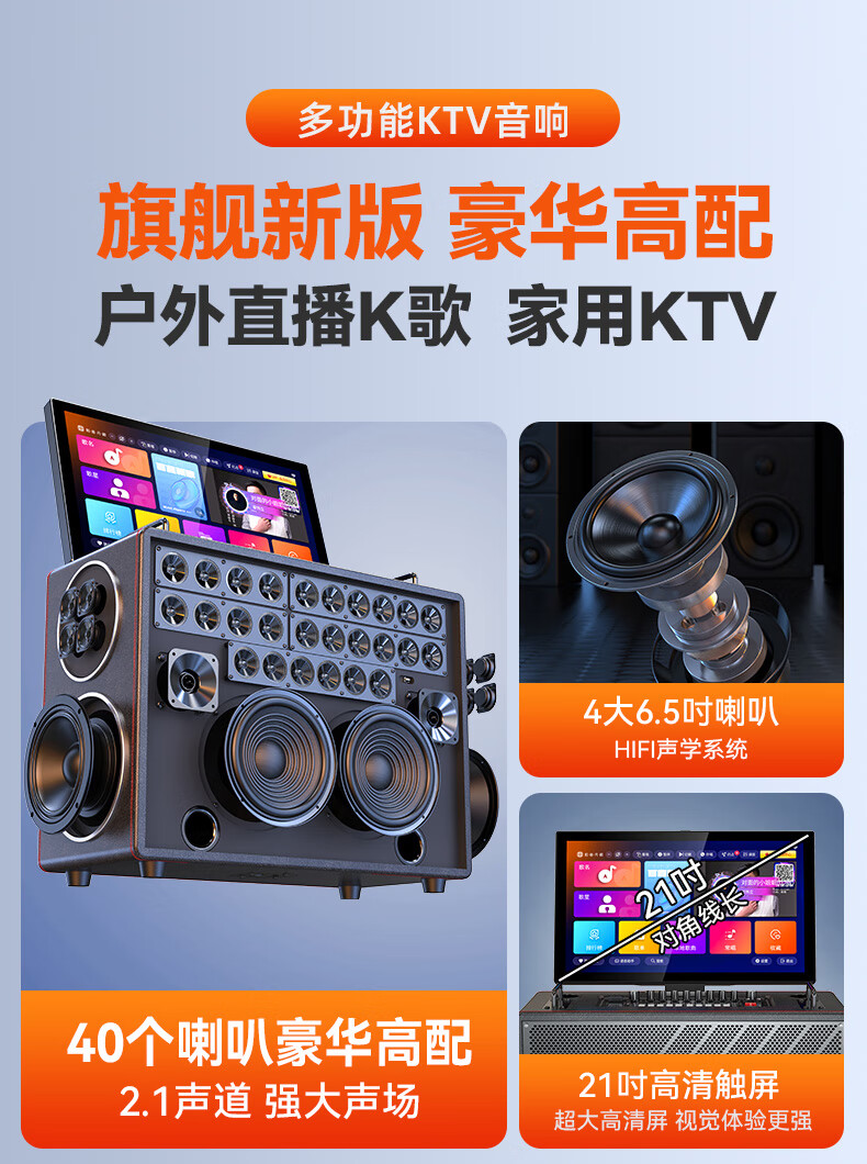 山水(SANSUI)家庭KTV音响套装点歌机唱歌户外广场舞专用卡拉OK一体机低音炮音箱带功放显示屏 E97 21吋屏40喇叭+免三年会员费+6.5吋喇叭