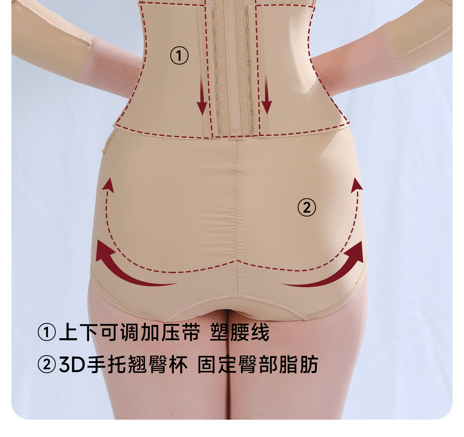 倩美腰腹环吸吸脂术后塑身衣手臂抽脂术后一期富贵包束腰强力重压塑形 34142黑色【腹背+富贵包+手臂】 S