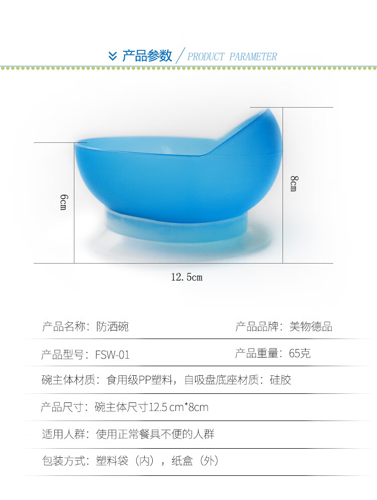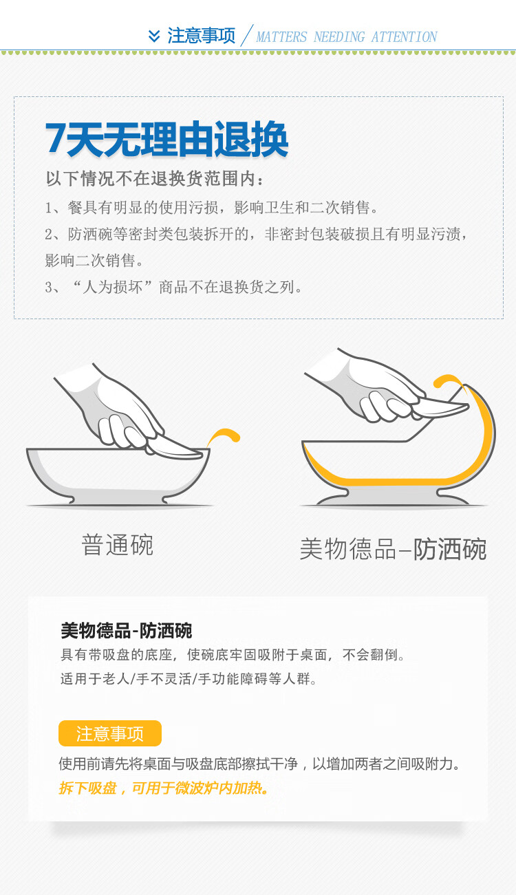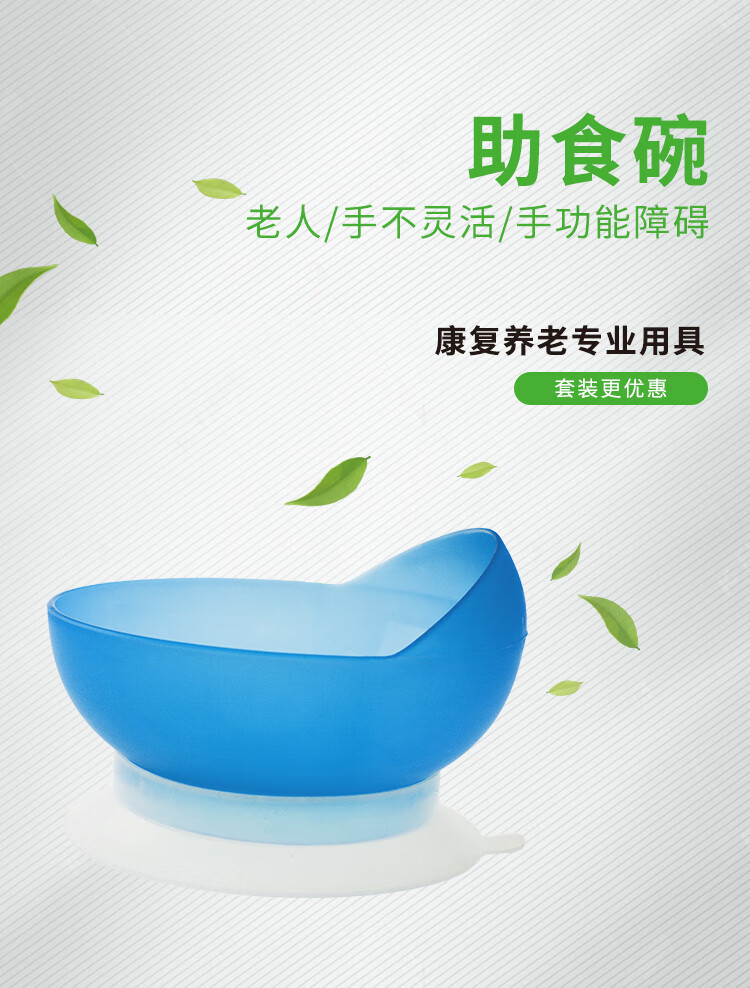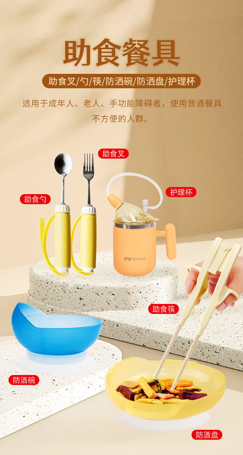美物德品老人宝宝专用辅助食防洒碗残疾人手抖老年人吃饭防摔防滑碗吸盘碗 筷+勺+叉+碗+盘(礼盒装)