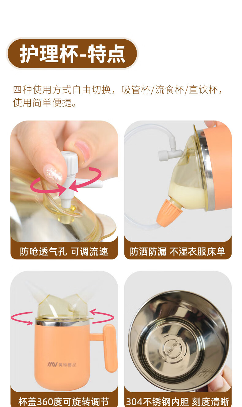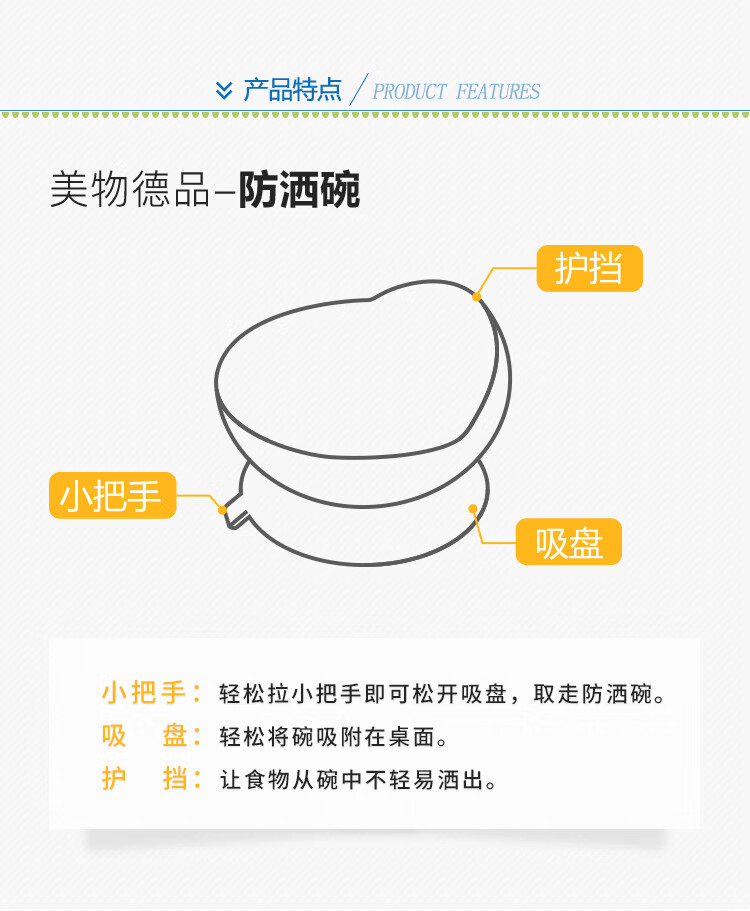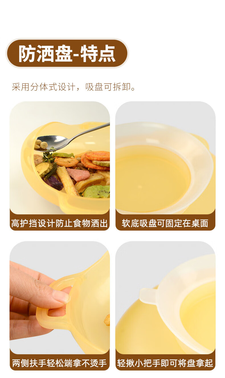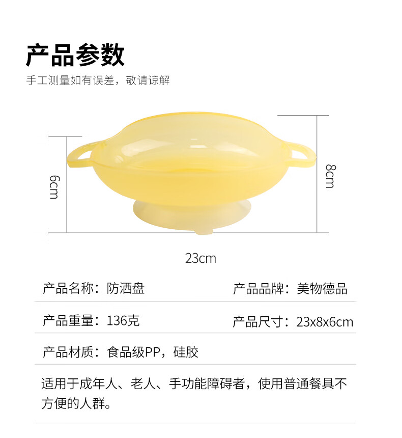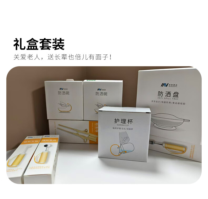 美物德品老人宝宝专用辅助食防洒碗残疾人手抖老年人吃饭防摔防滑碗吸盘碗 筷+勺+叉+碗+盘(礼盒装)