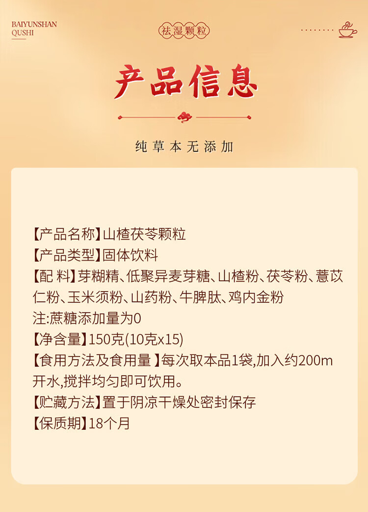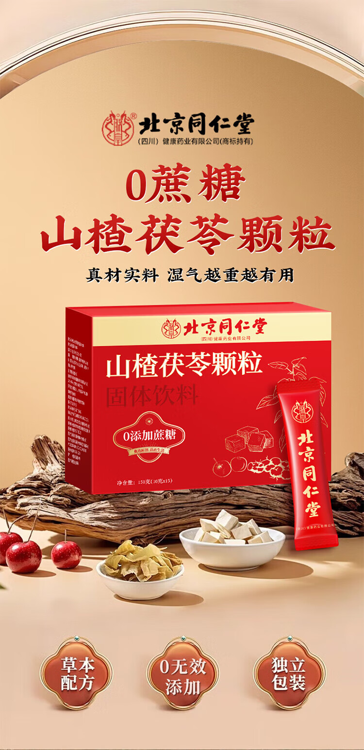 朕皇 同仁堂山楂茯苓颗粒纯草本无添加0蔗糖祛湿茶健脾养胃调理湿气重 体验装【1盒装】